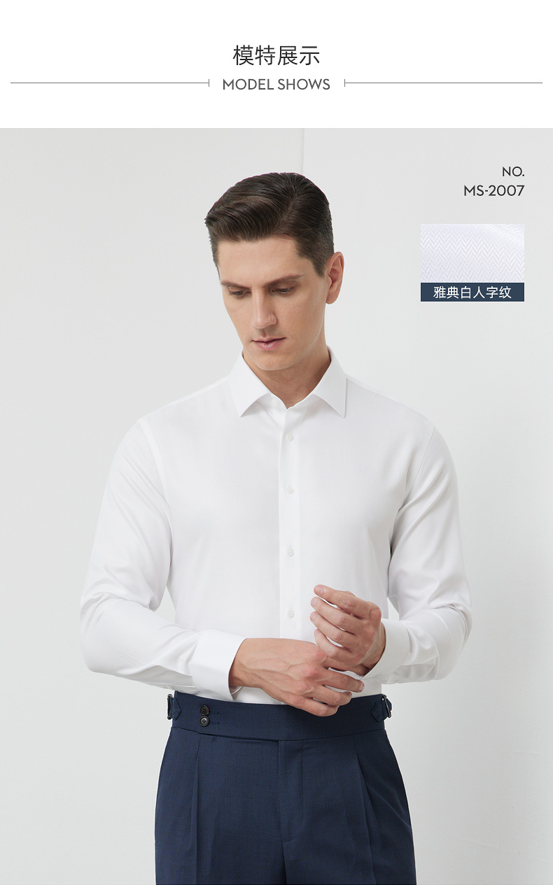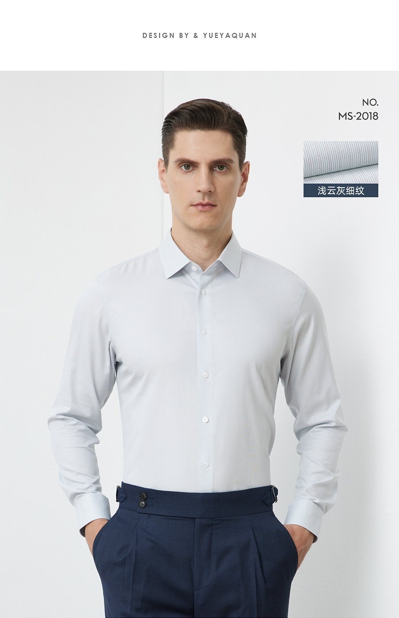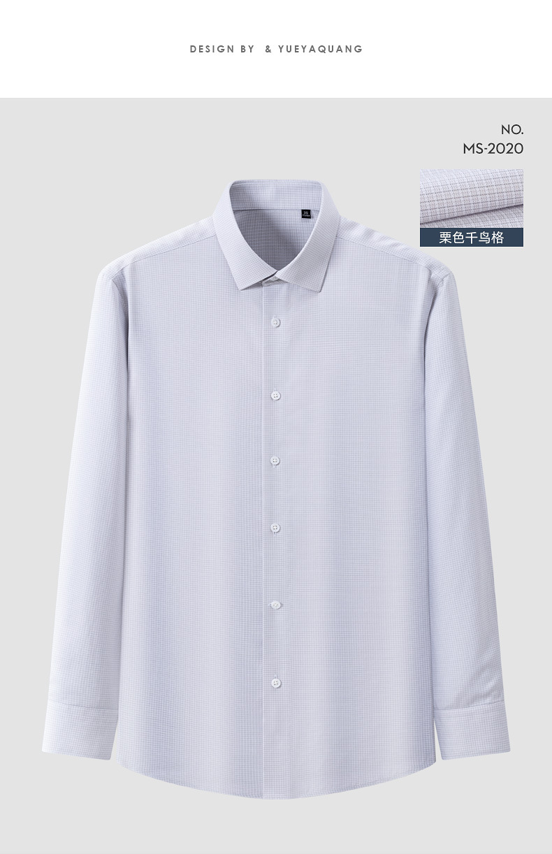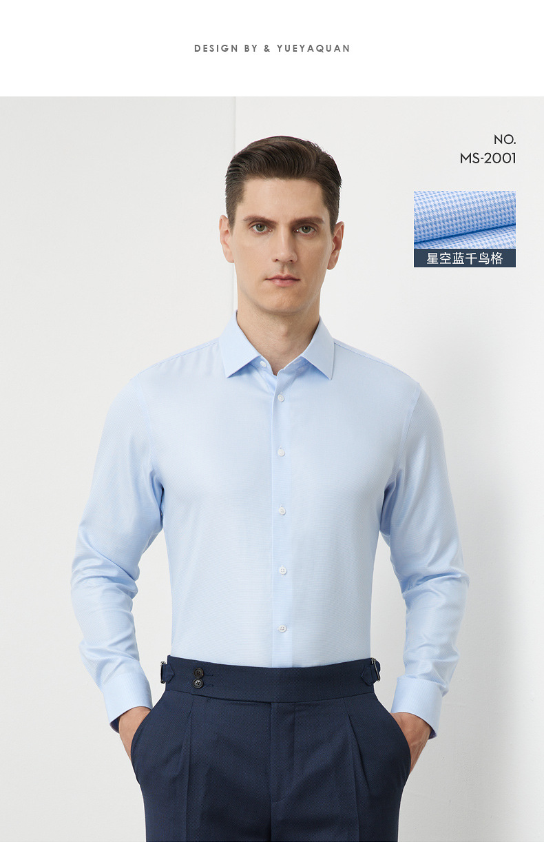 200S 면 실크 남성 긴팔 셔츠 신상 고급 비즈니스 남성복 기성복 다림질 필요 없는 체크무늬 정장 셔츠스토어 가기