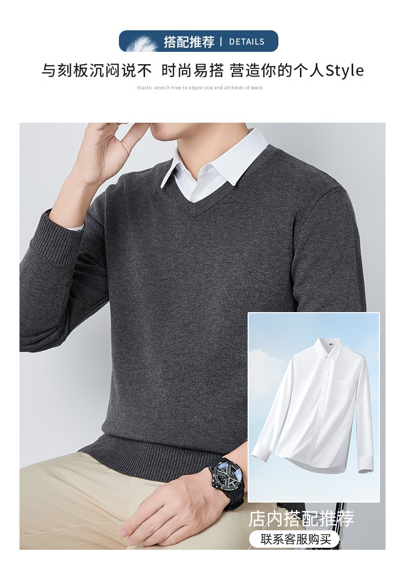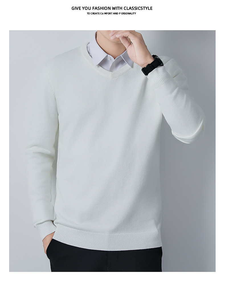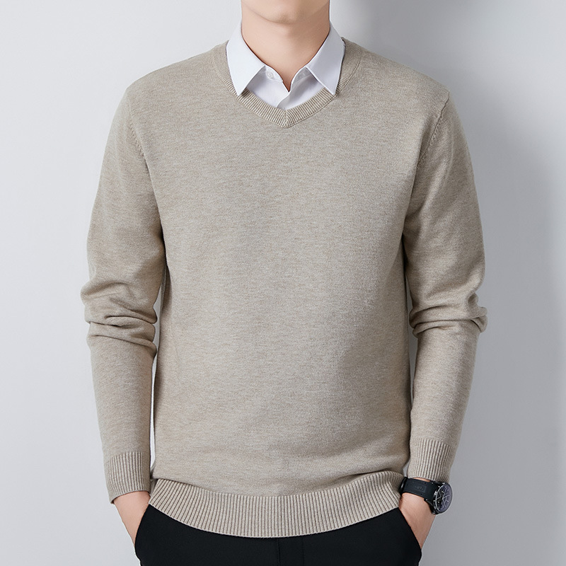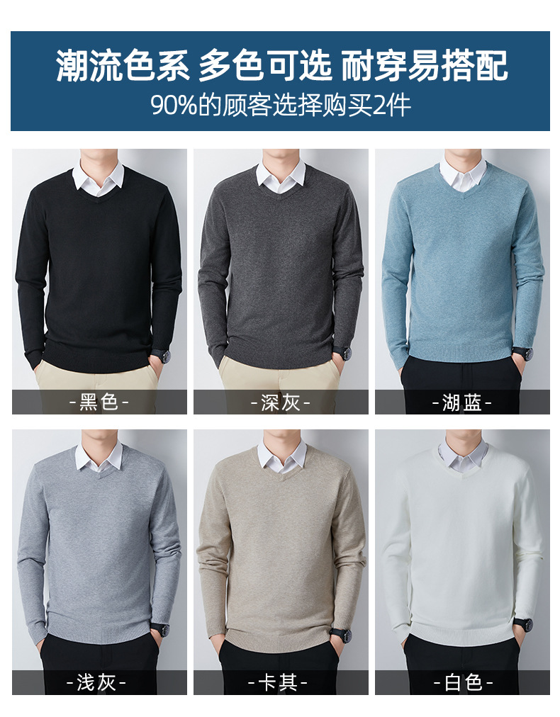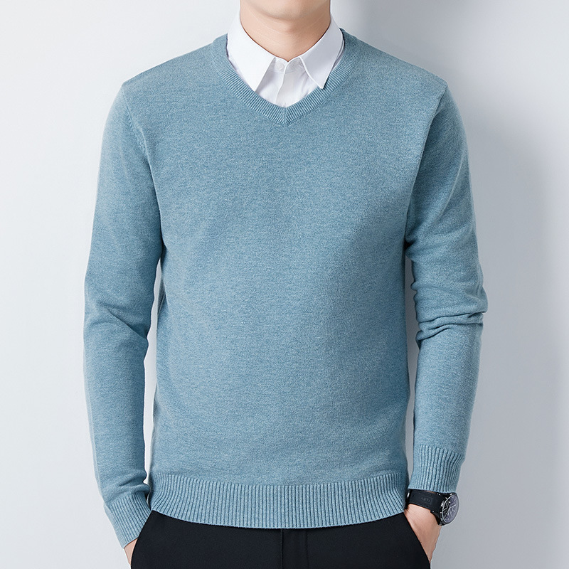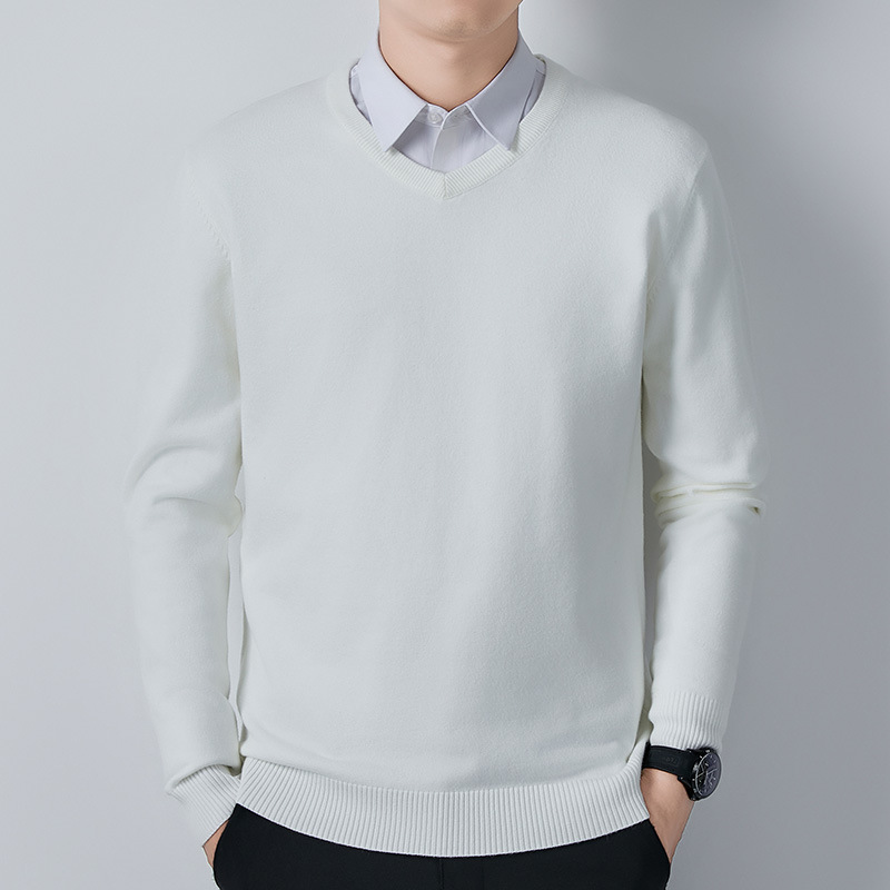 V-Neck 스웨터 남성용 긴팔 두꺼운 따뜻한 베이스 니트 스웨터 2024 가을 및 겨울 새로운 내부 울 옷스토어 가기