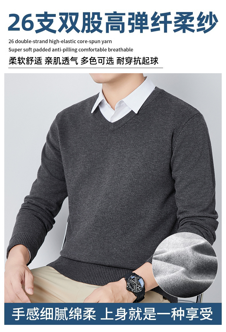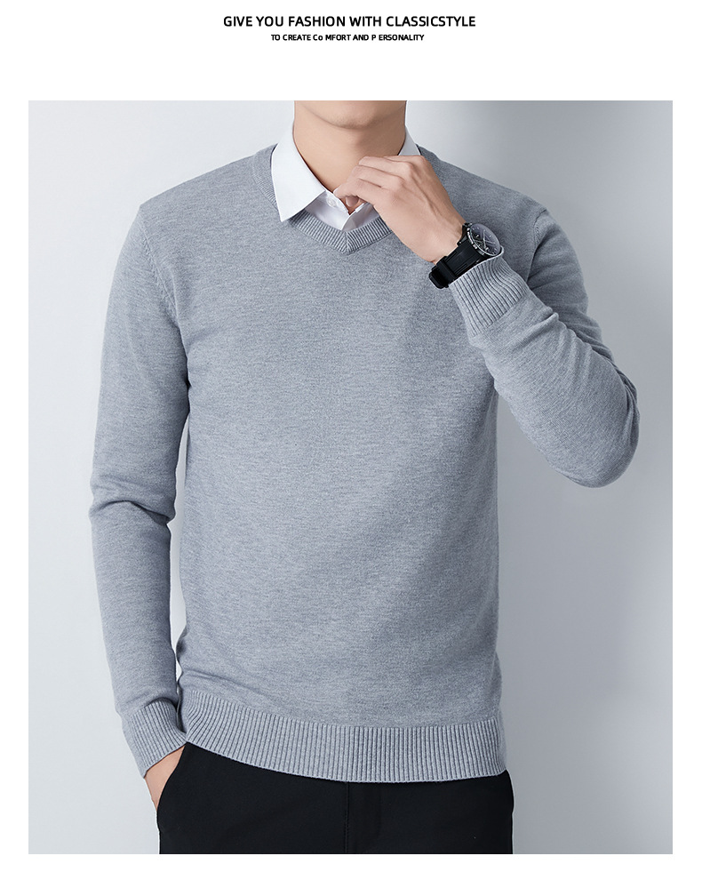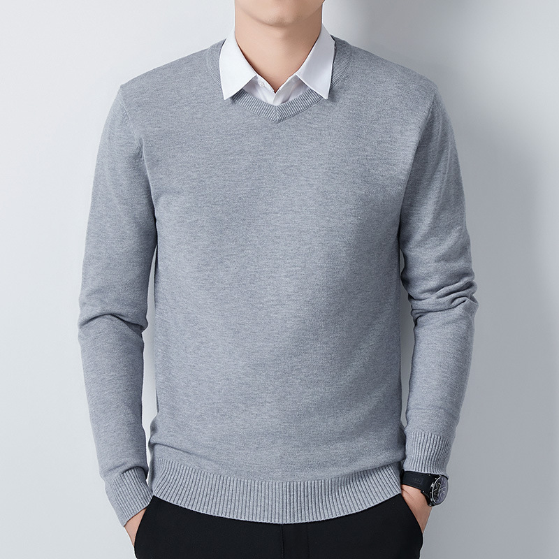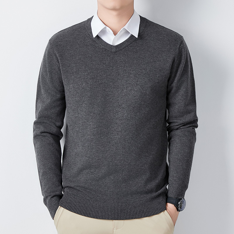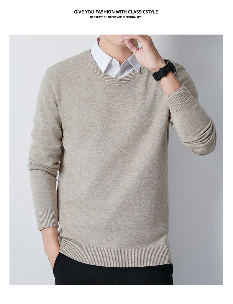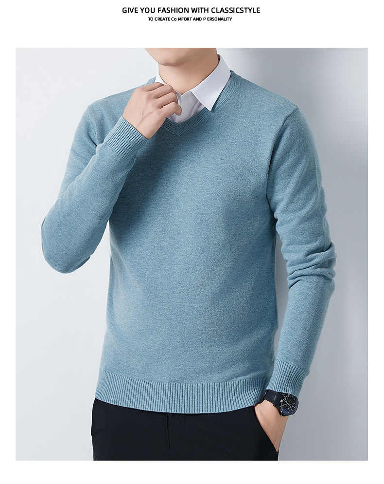 V-Neck 스웨터 남성용 긴팔 두꺼운 따뜻한 베이스 니트 스웨터 2024 가을 및 겨울 새로운 내부 울 옷