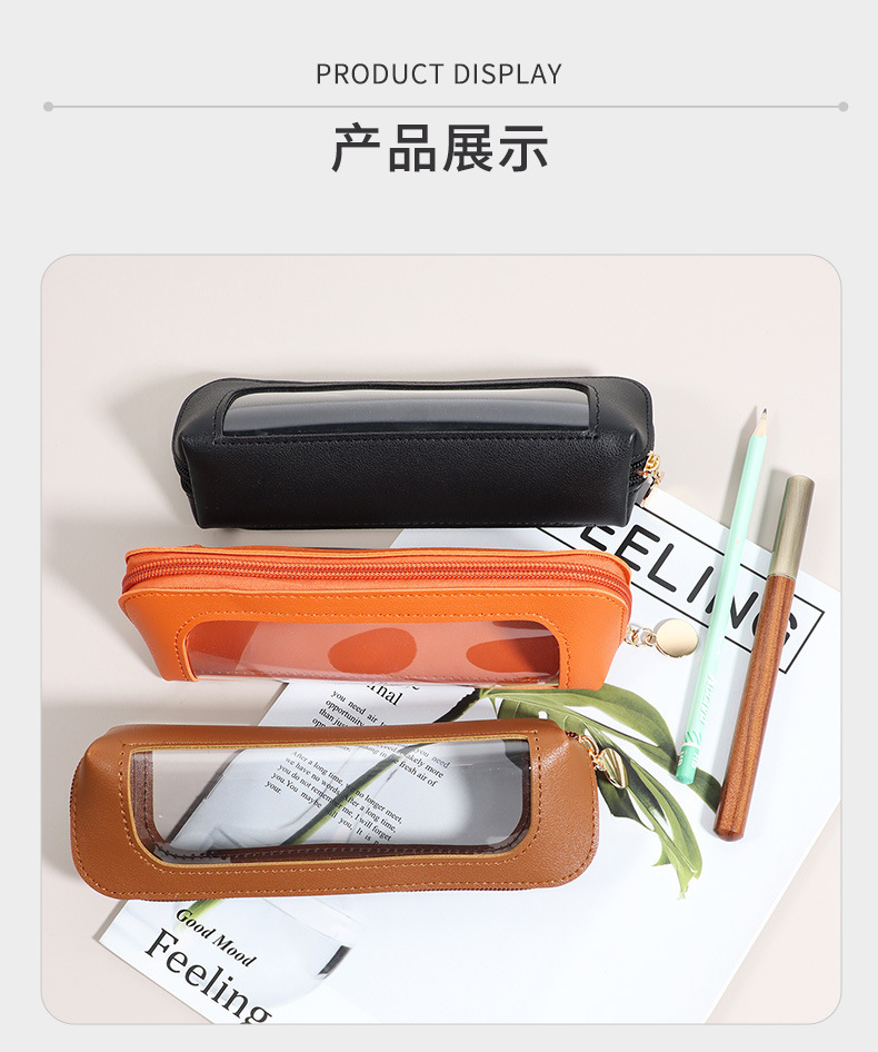 멀티 팩 대용량 가죽 연필 케이스 지퍼 오프닝 학생 시각화 가방 스타일 간단한 솔리드 컬러 연필 케이스스토어 가기