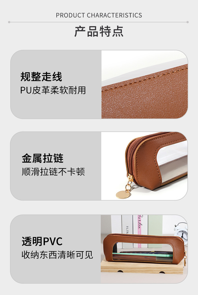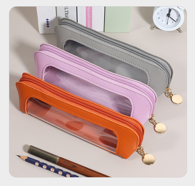 멀티 팩 대용량 가죽 연필 케이스 지퍼 오프닝 학생 시각화 가방 스타일 간단한 솔리드 컬러 연필 케이스