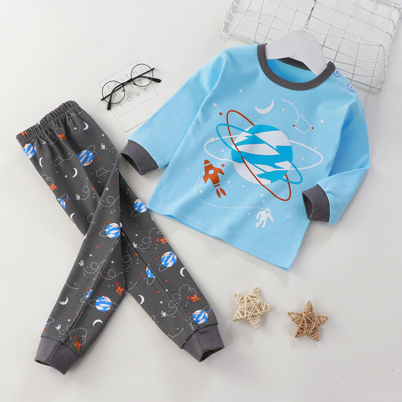 2024 년 새 봄 가을 어린이 면화 속옷 세트 홈 보이즈 가을 바지 소녀 잠옷 투피스 세트스토어 가기