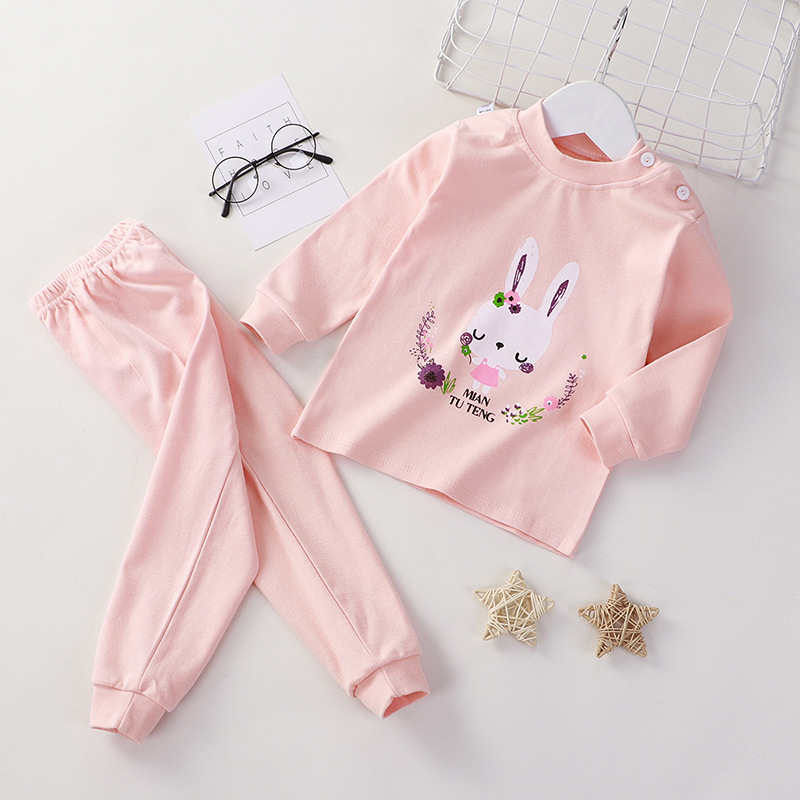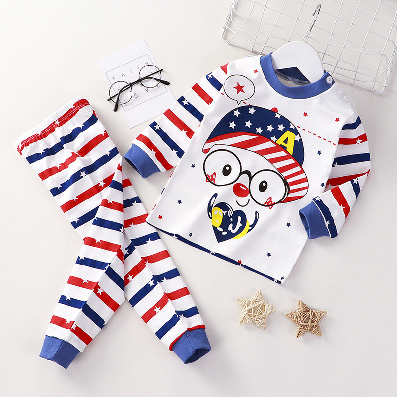 2024 년 새 봄 가을 어린이 면화 속옷 세트 홈 보이즈 가을 바지 소녀 잠옷 투피스 세트