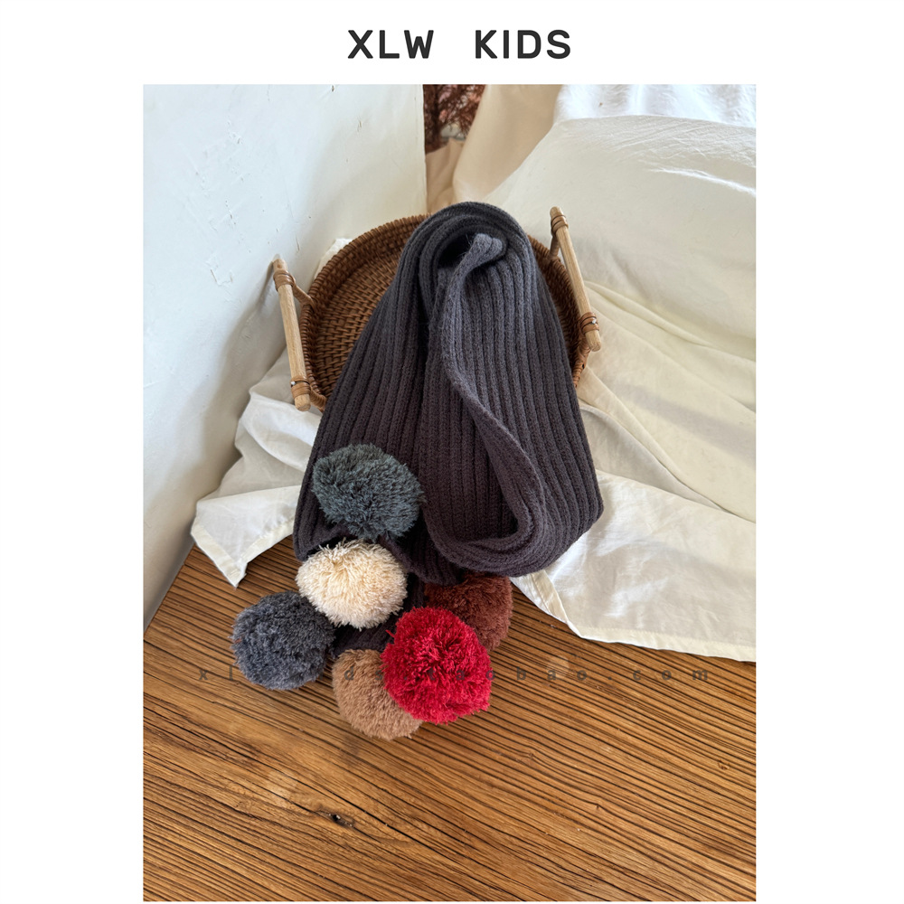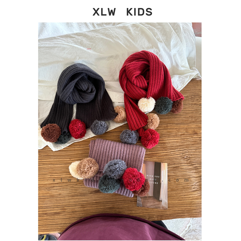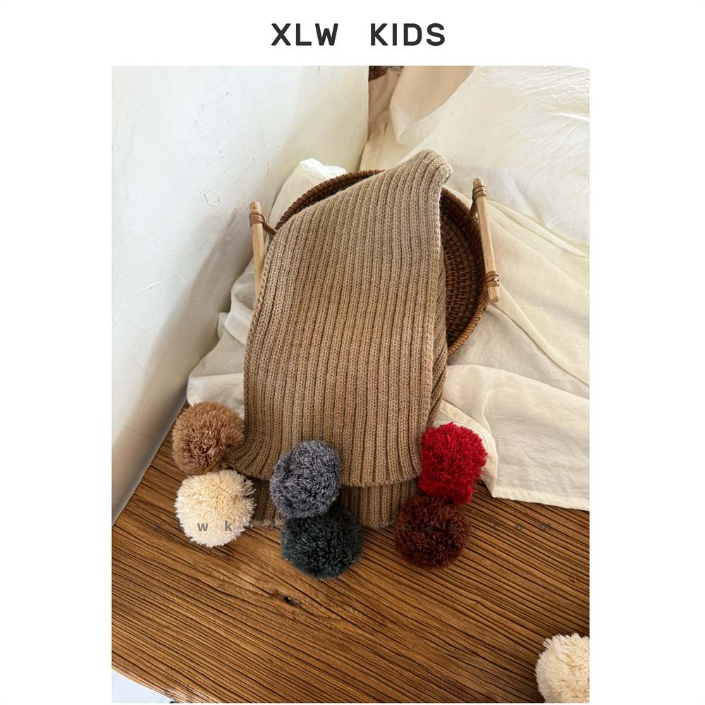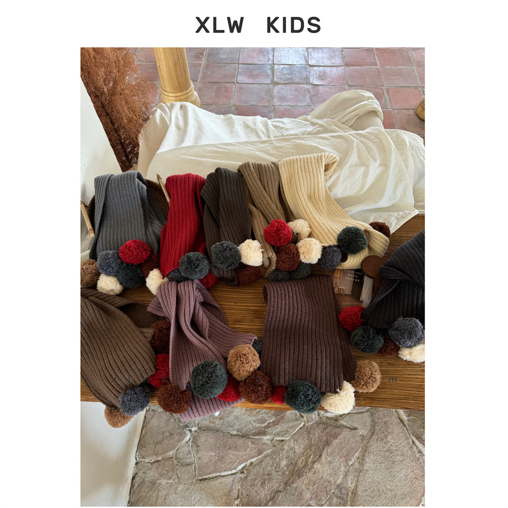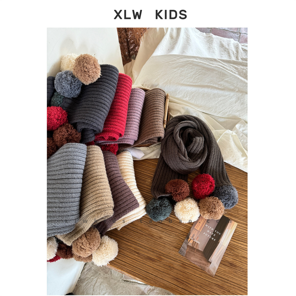 Ins 컬러 볼 한국어 버전 남성과 여성을위한 어린이 스카프 가을, 겨울 따뜻한 단색 니트 방한 목 보호대