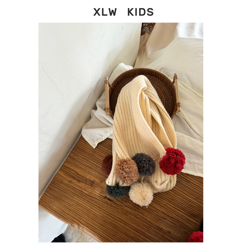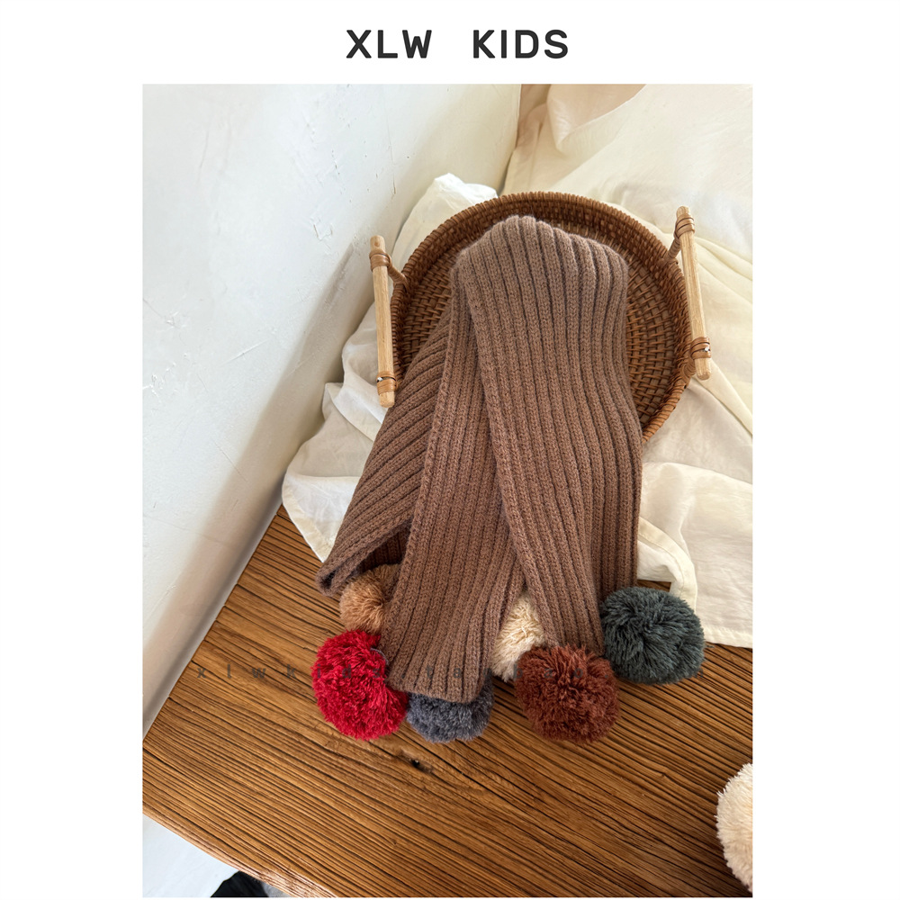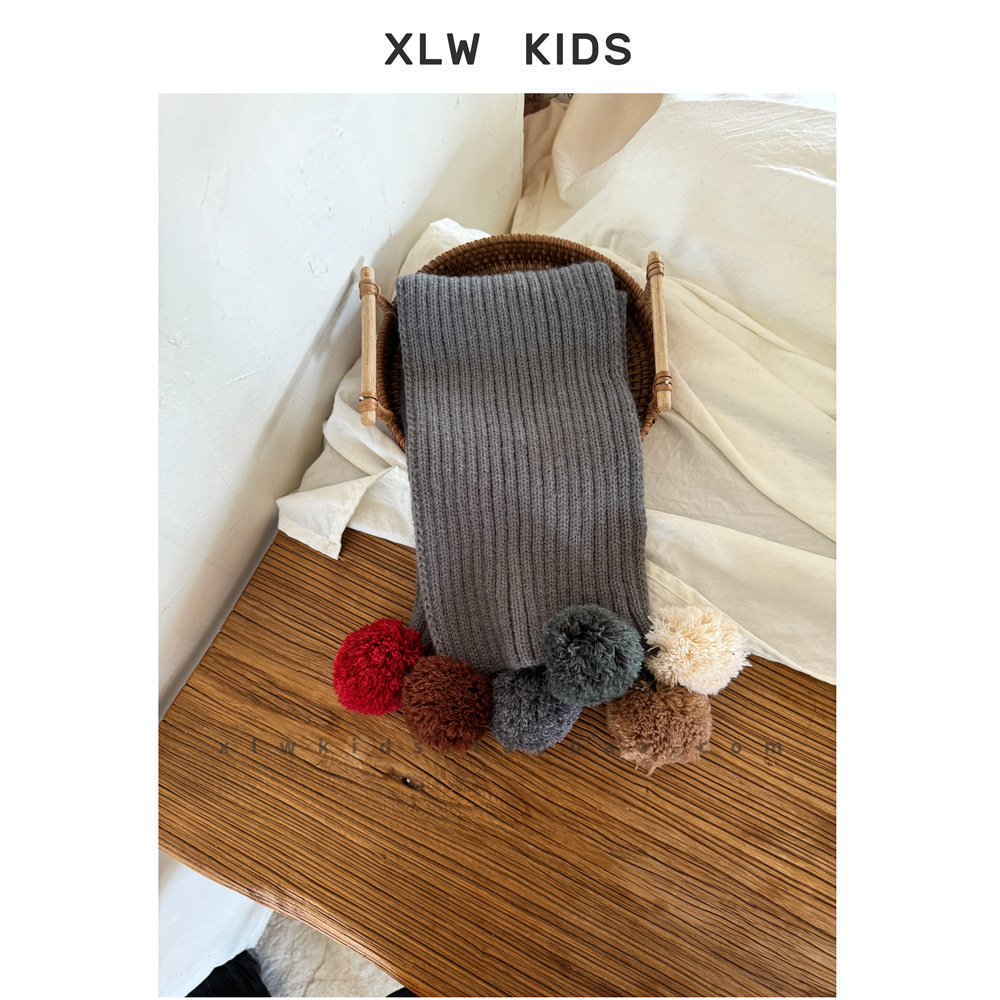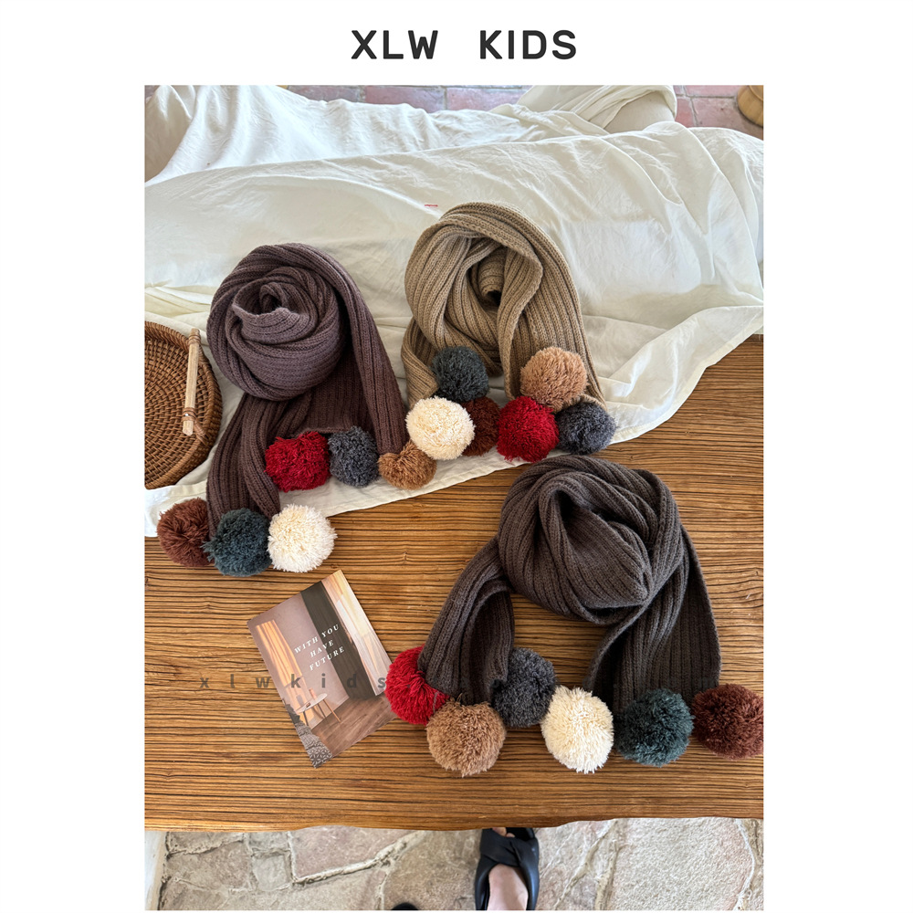 Ins 컬러 볼 한국어 버전 남성과 여성을위한 어린이 스카프 가을, 겨울 따뜻한 단색 니트 방한 목 보호대