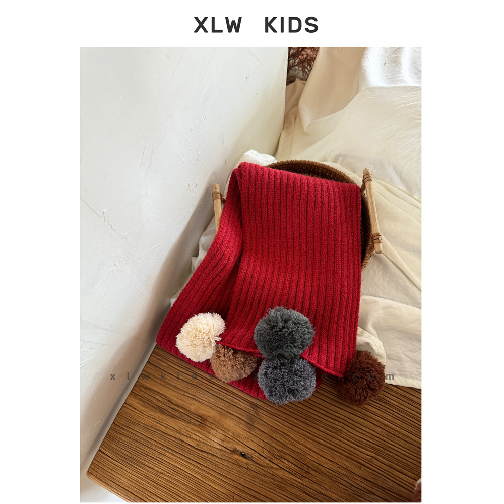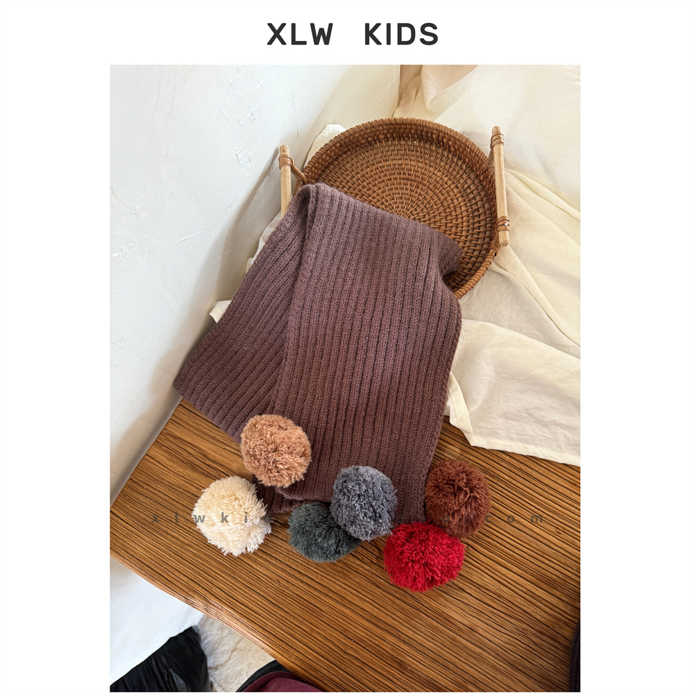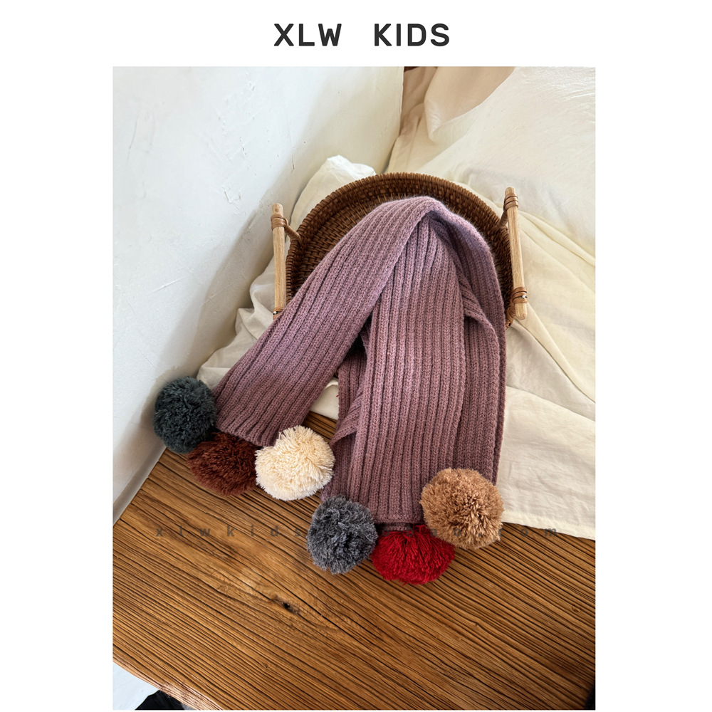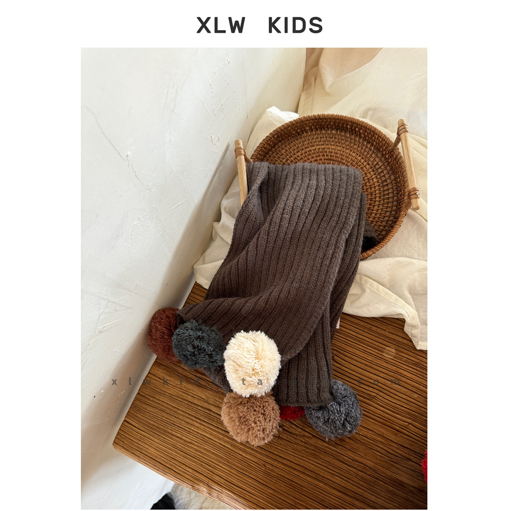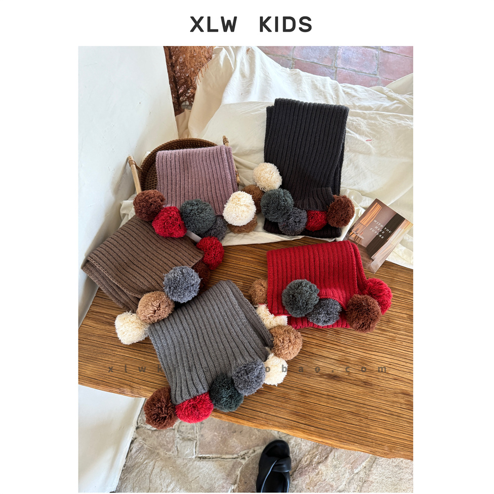 Ins 컬러 볼 한국어 버전 남성과 여성을위한 어린이 스카프 가을, 겨울 따뜻한 단색 니트 방한 목 보호대