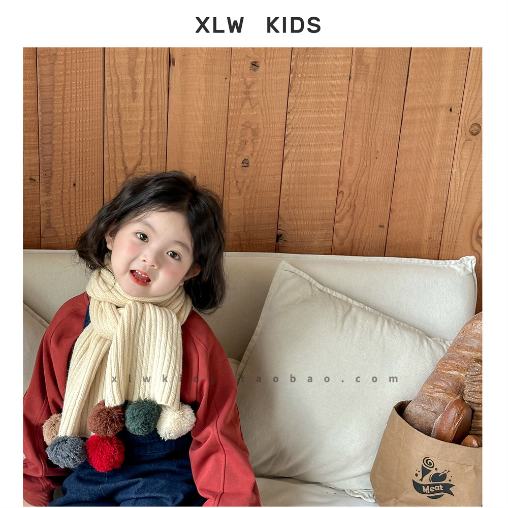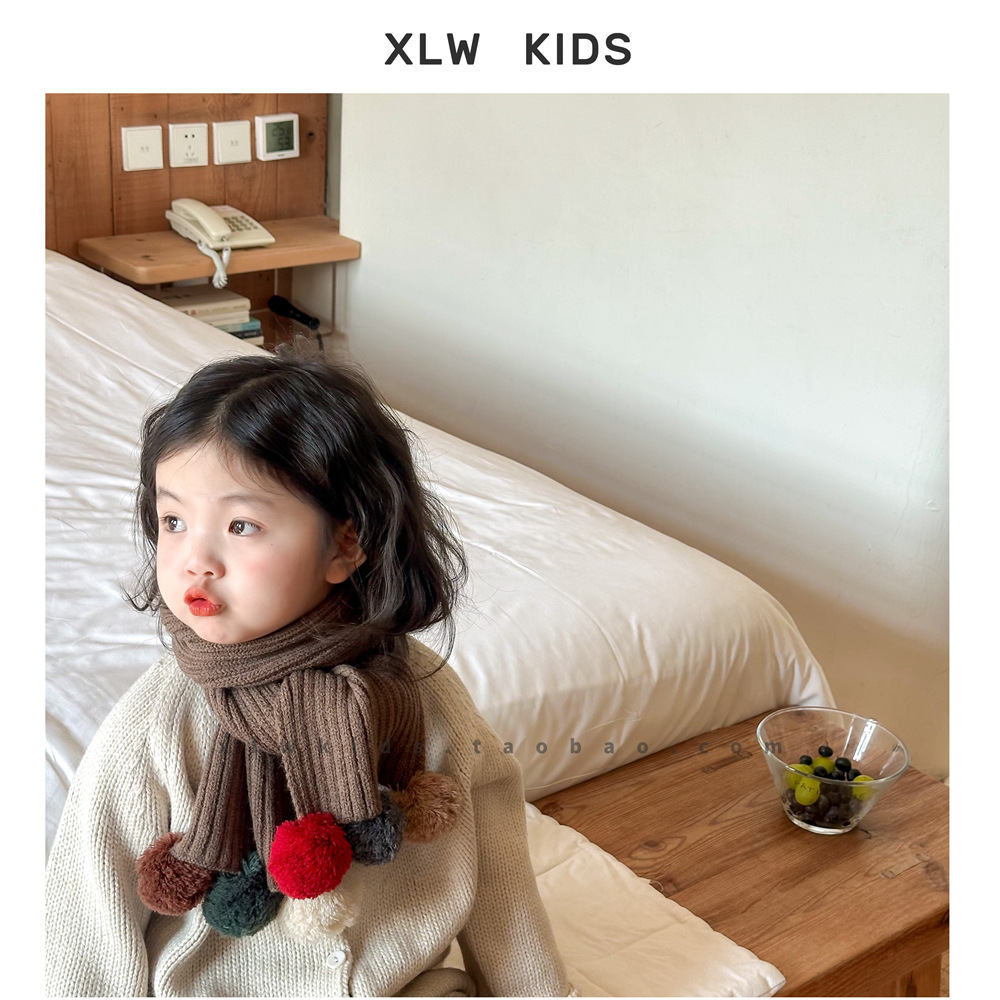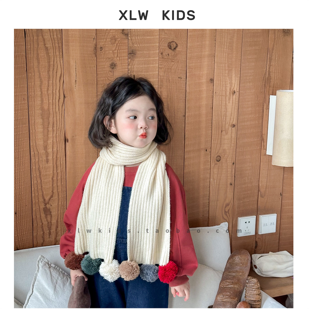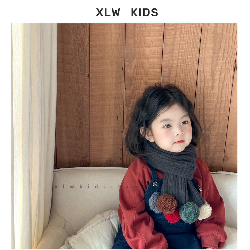 Ins 컬러 볼 한국어 버전 남성과 여성을위한 어린이 스카프 가을, 겨울 따뜻한 단색 니트 방한 목 보호대스토어 가기