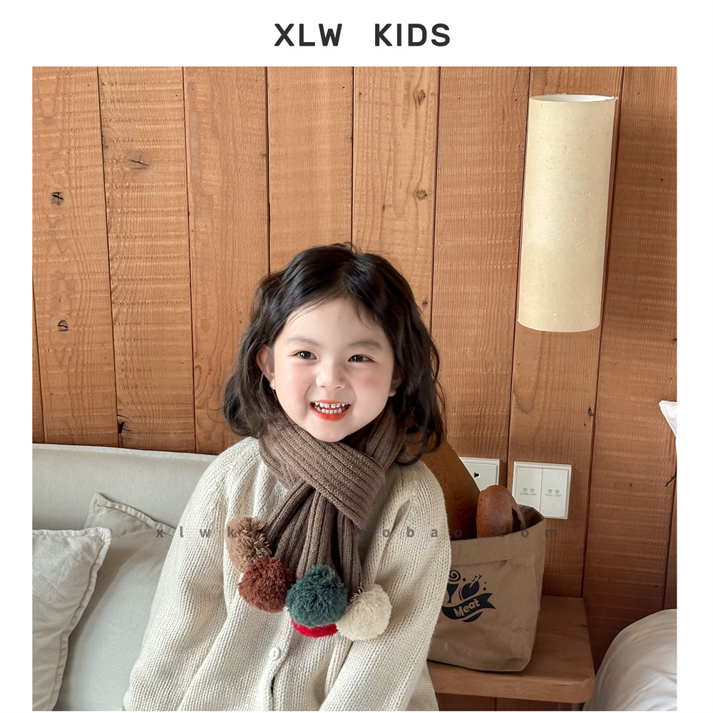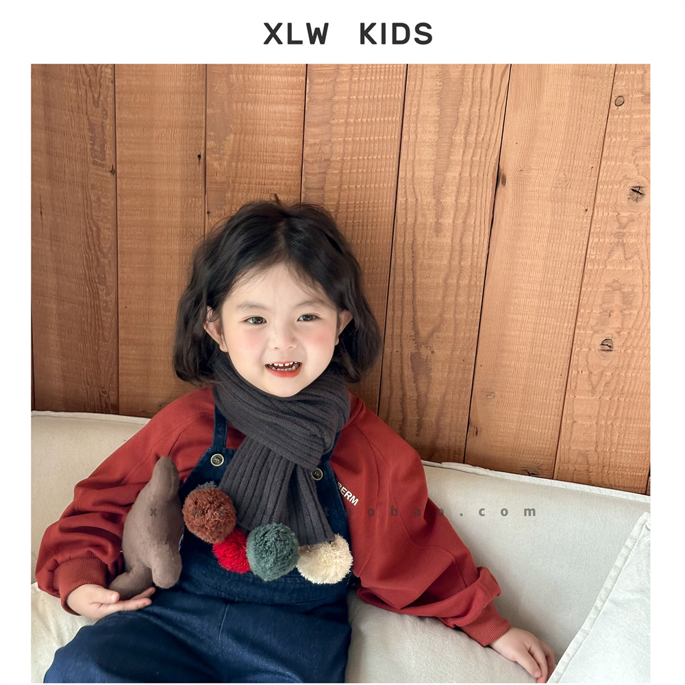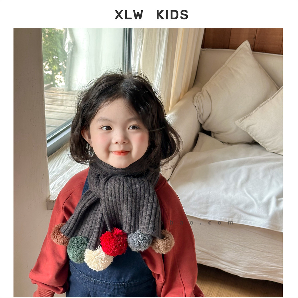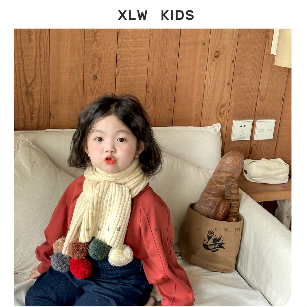 Ins 컬러 볼 한국어 버전 남성과 여성을위한 어린이 스카프 가을, 겨울 따뜻한 단색 니트 방한 목 보호대스토어 가기