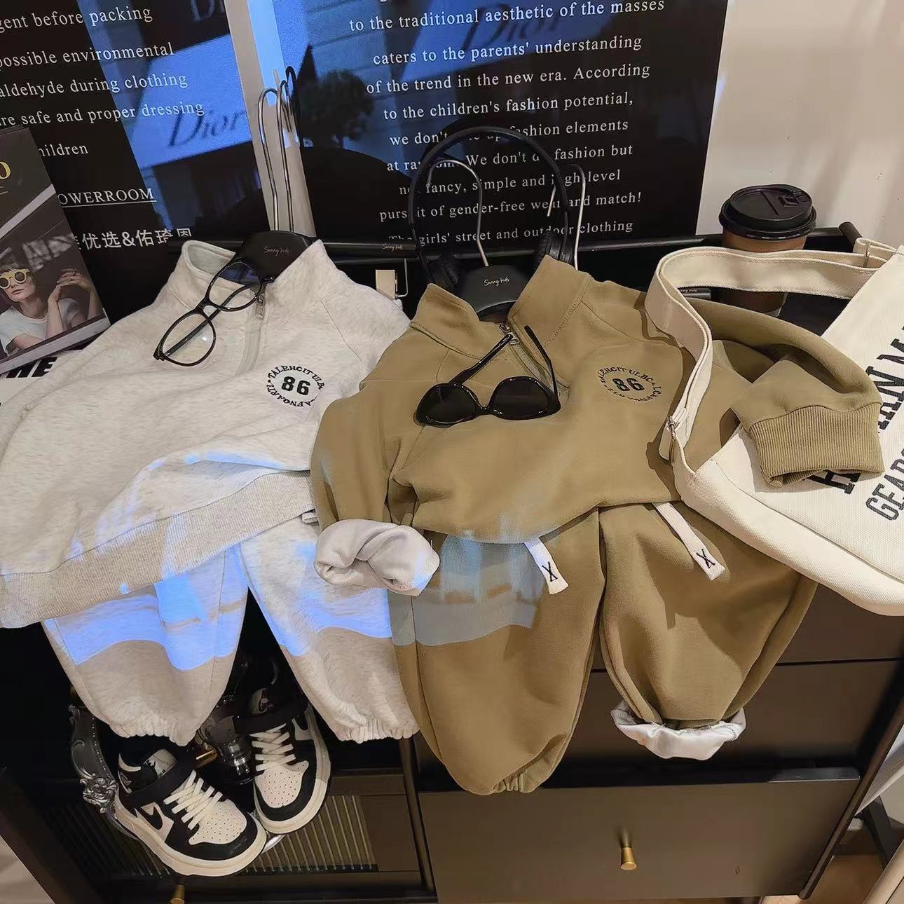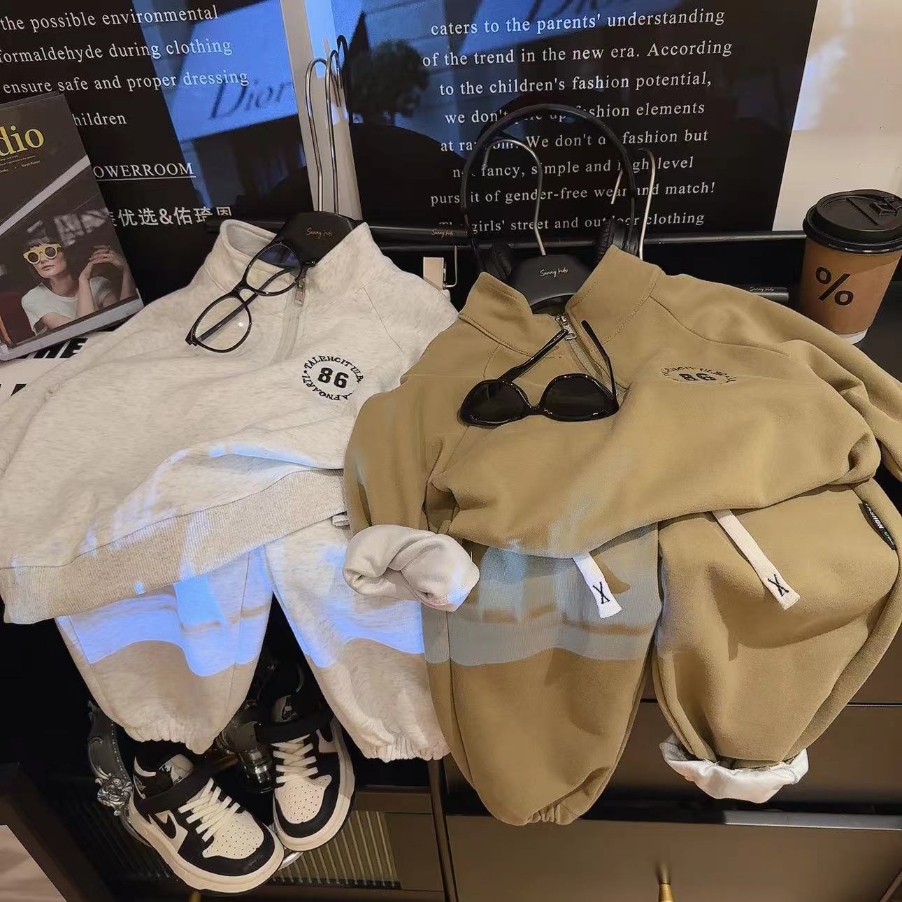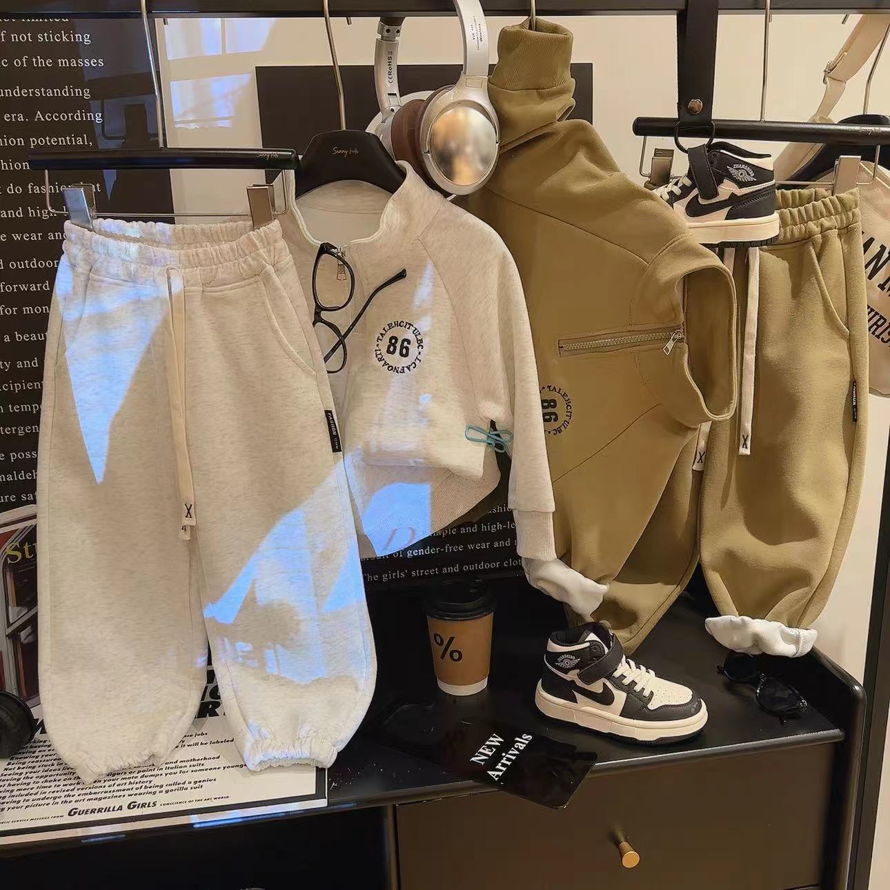어린이 스웨터 세트 가을 소년 면 긴팔 카디건 운동복 아기 소녀의 지퍼가 달린 한국식 투피스 세트스토어 가기
