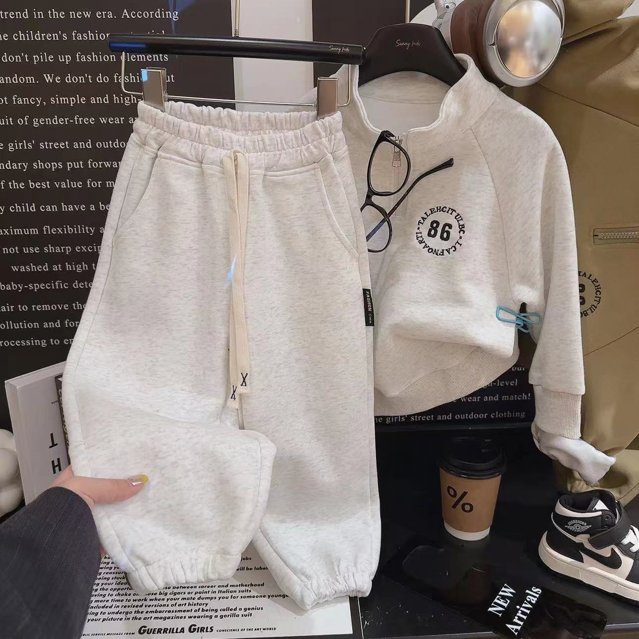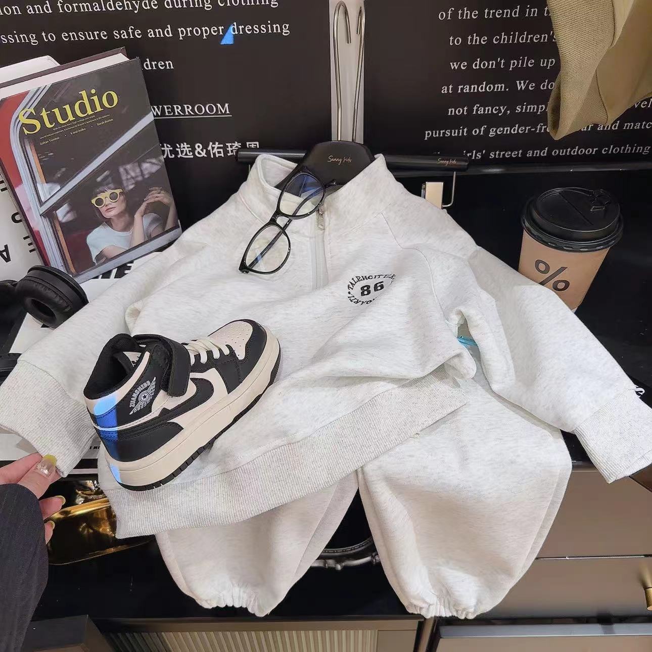 어린이 스웨터 세트 가을 소년 면 긴팔 카디건 운동복 아기 소녀의 지퍼가 달린 한국식 투피스 세트