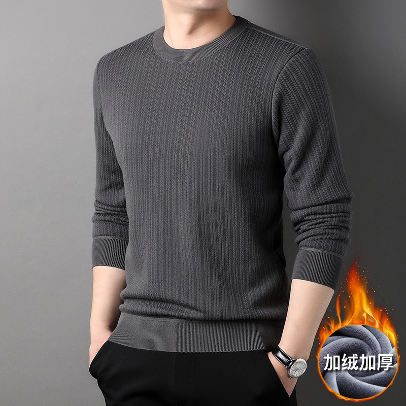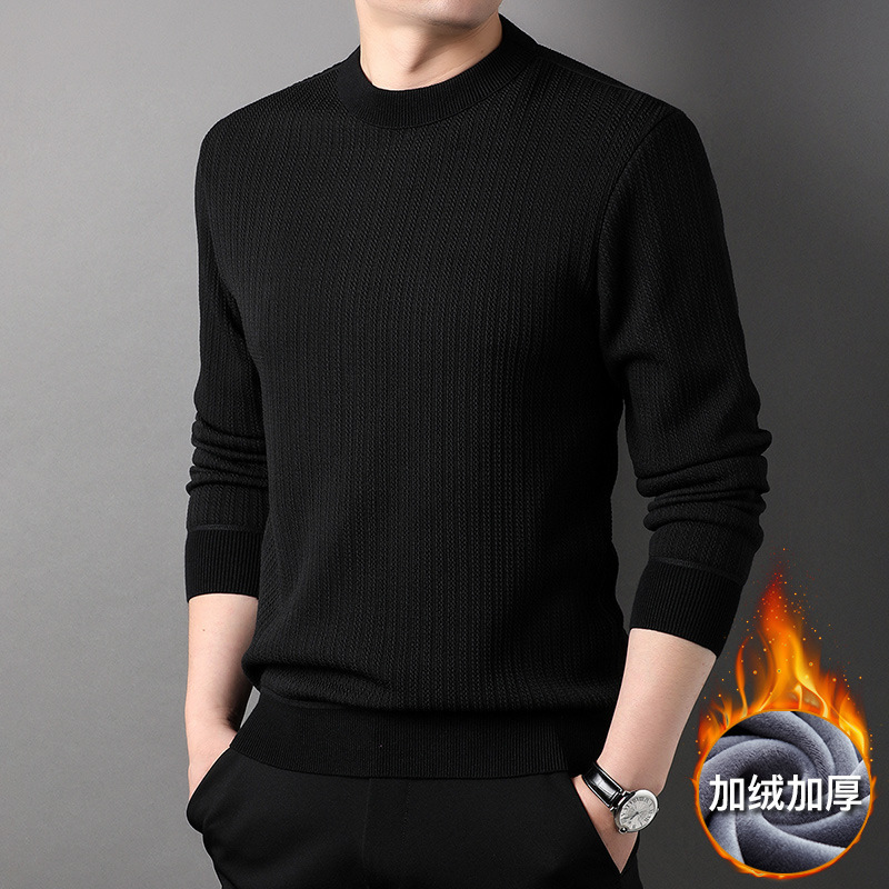 겨울 뉴 기모 라운드 넥 자카드 스웨터 남자 풀오버 두꺼운 따뜻한 원피스 벨벳베이스 남자 스웨터