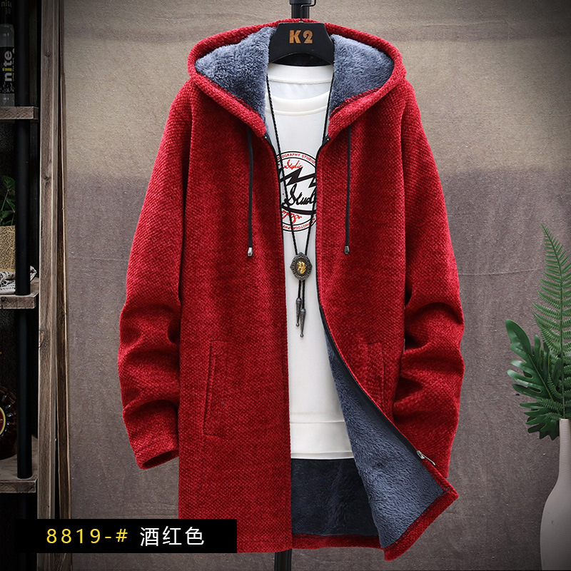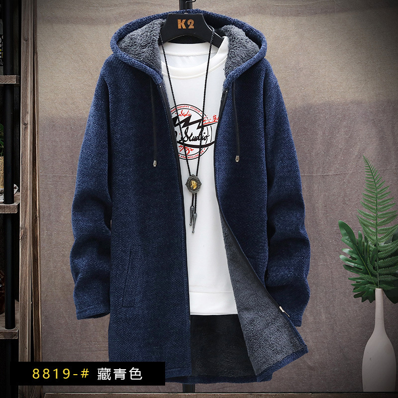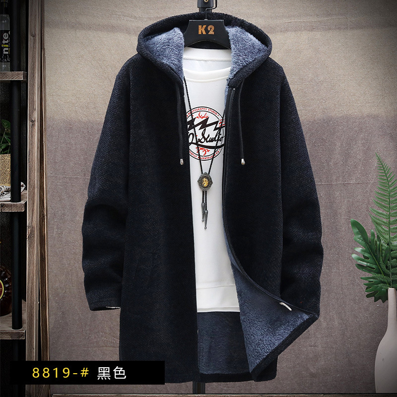 좋은 품질의 가을과 겨울 새로운 남성 캐주얼 중간 길이 코트 조커 기모 윈드 브레이커 재킷-스토어 가기