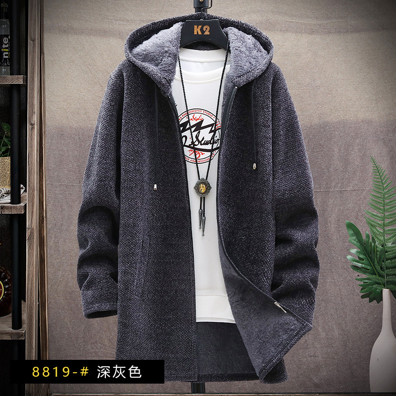 좋은 품질의 가을과 겨울 새로운 남성 캐주얼 중간 길이 코트 조커 기모 윈드 브레이커 재킷-
