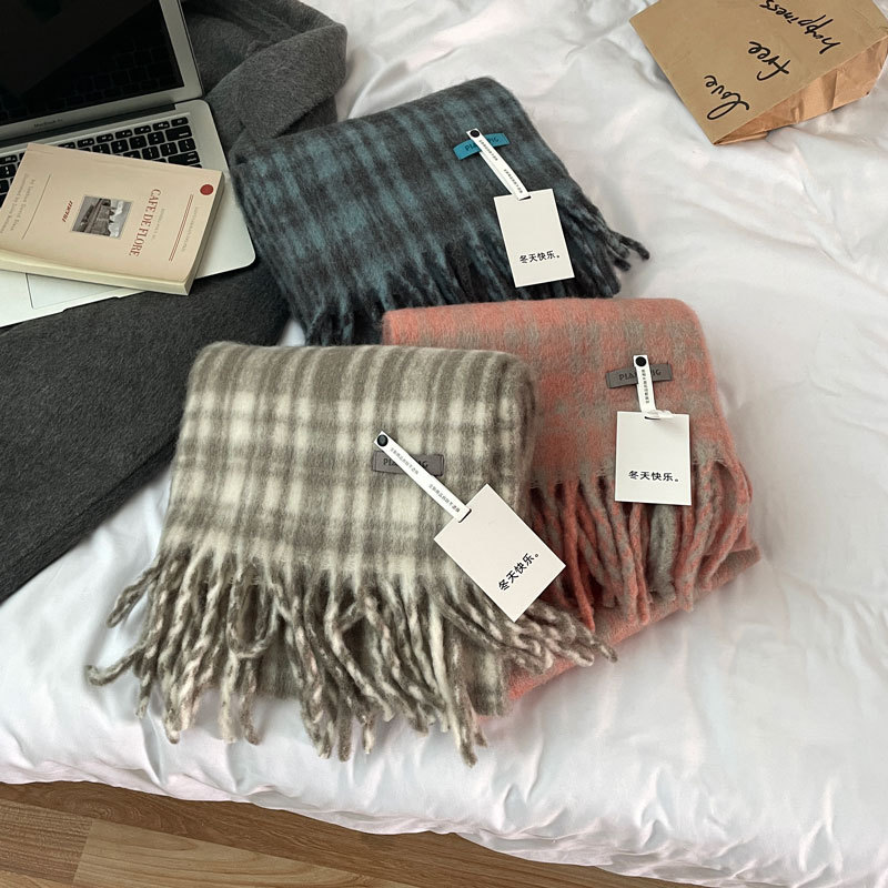 고정 회전 20% 양모 앙고라 레드/아이슬란드 블루 화이트 우아한 단색 스카프 캐시미어 커플의 목도리스토어 가기