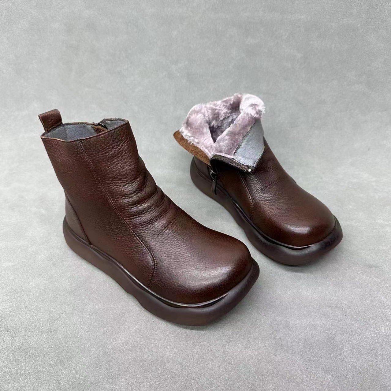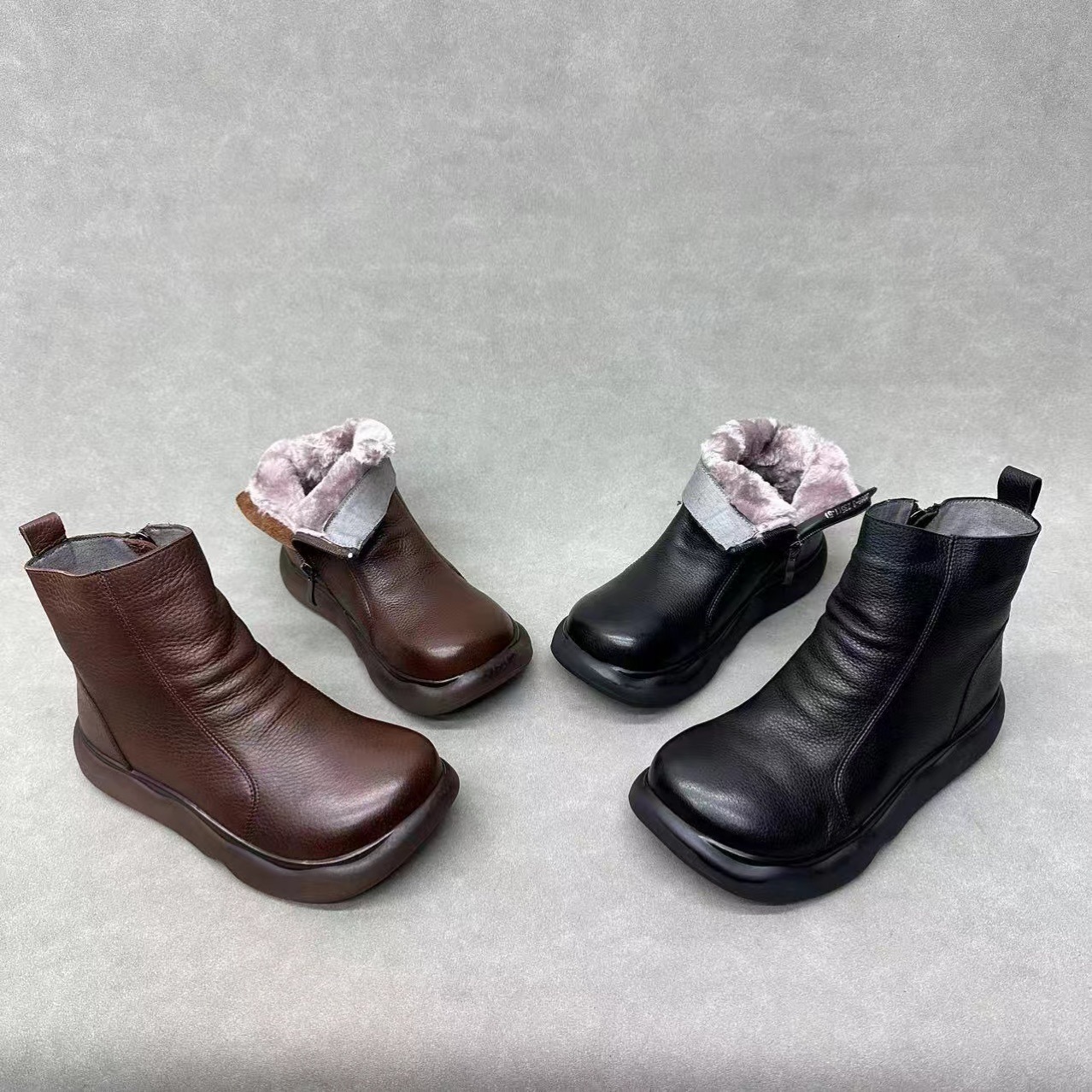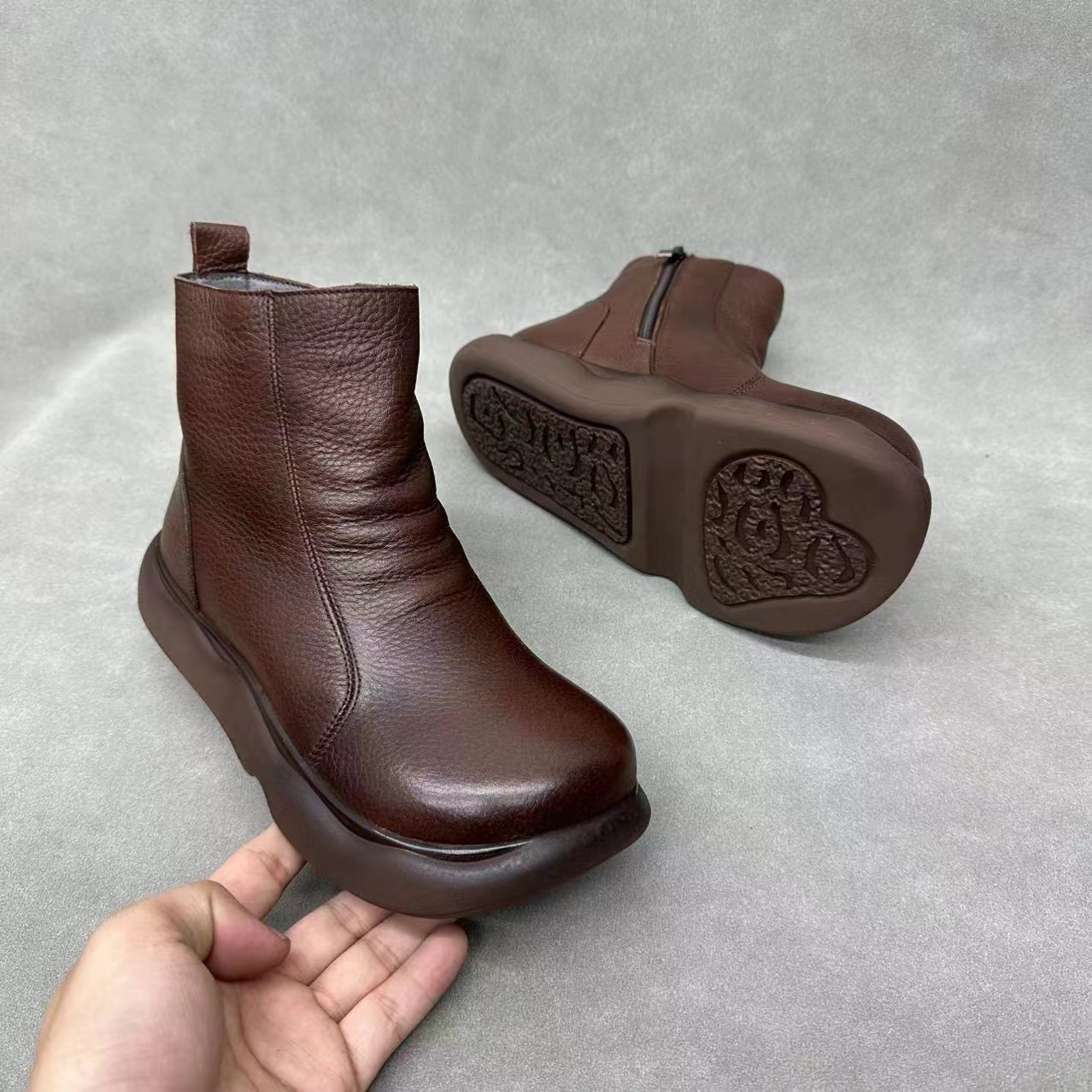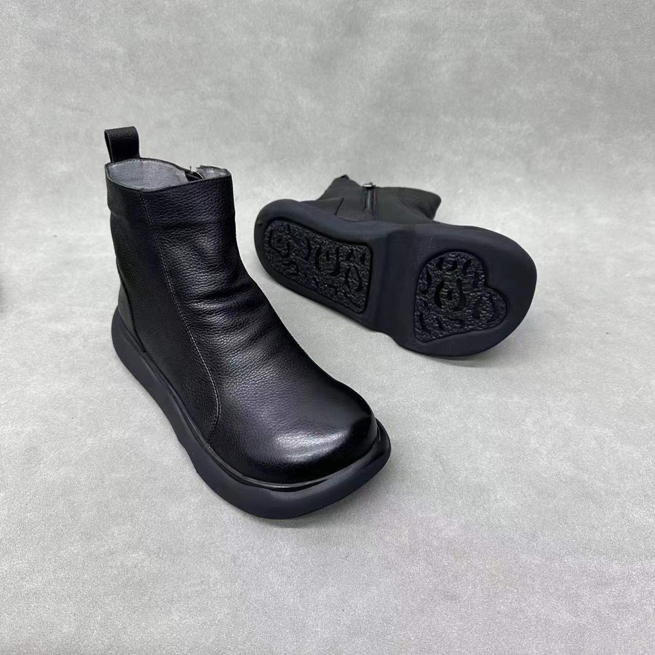 그리고 파크 마틴 부츠 여성 두꺼운 바닥 2024 가을 정품 가죽 레트로 캐주얼 사이드 지퍼 발목 부츠 영국 스타일 소프트 하단 코튼 부츠스토어 가기