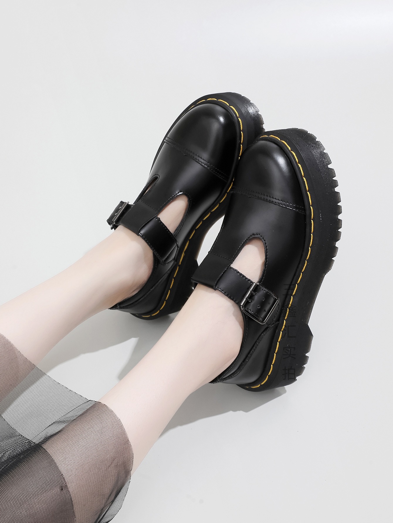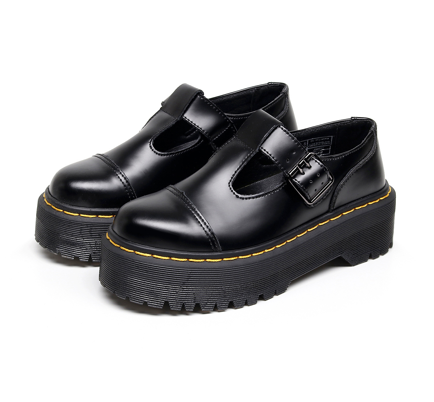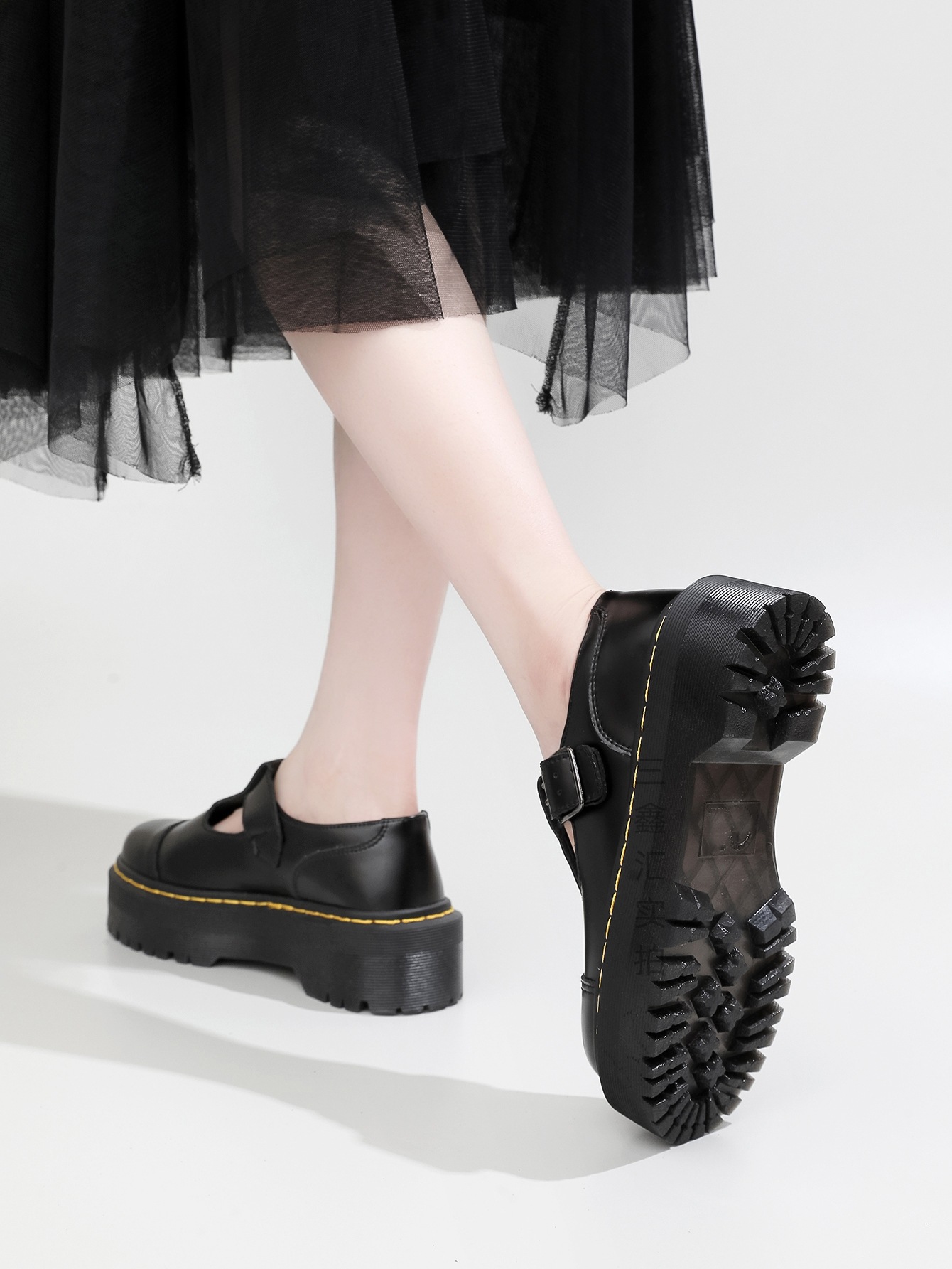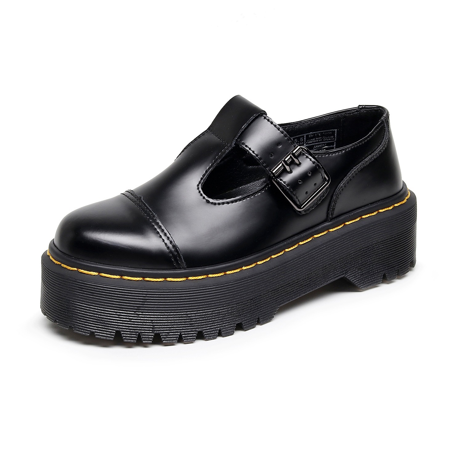 Sanxinhui 두꺼운 밑창 T 스트랩 Mary Jane 여성 신발 정품 가죽 로우 탑 영국 스타일 높은 플랫폼 신발 영국 작은 가죽 신발스토어 가기