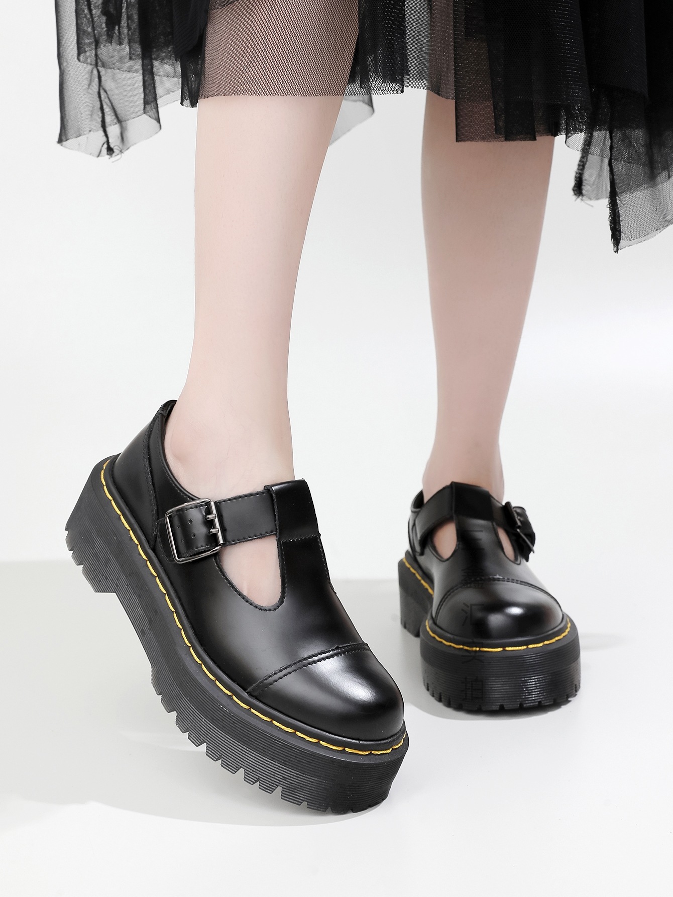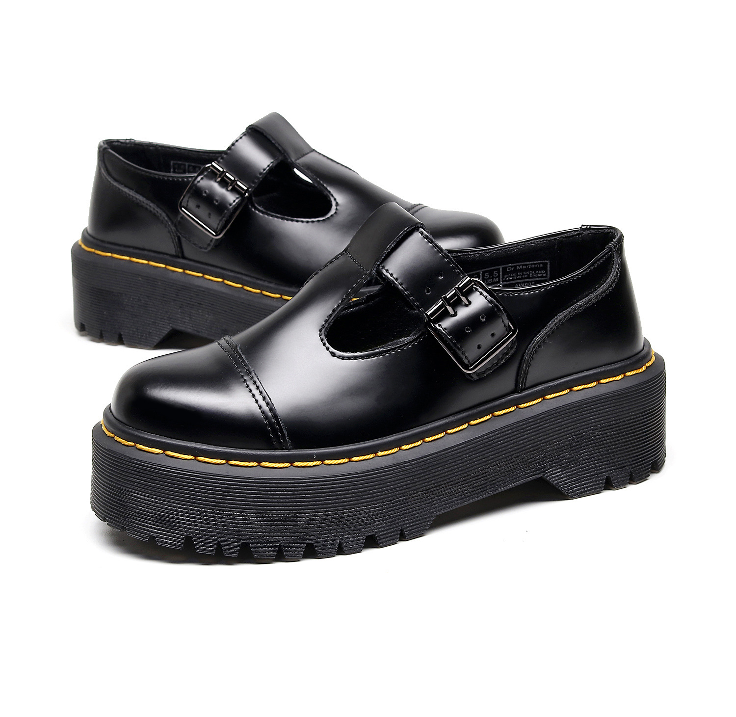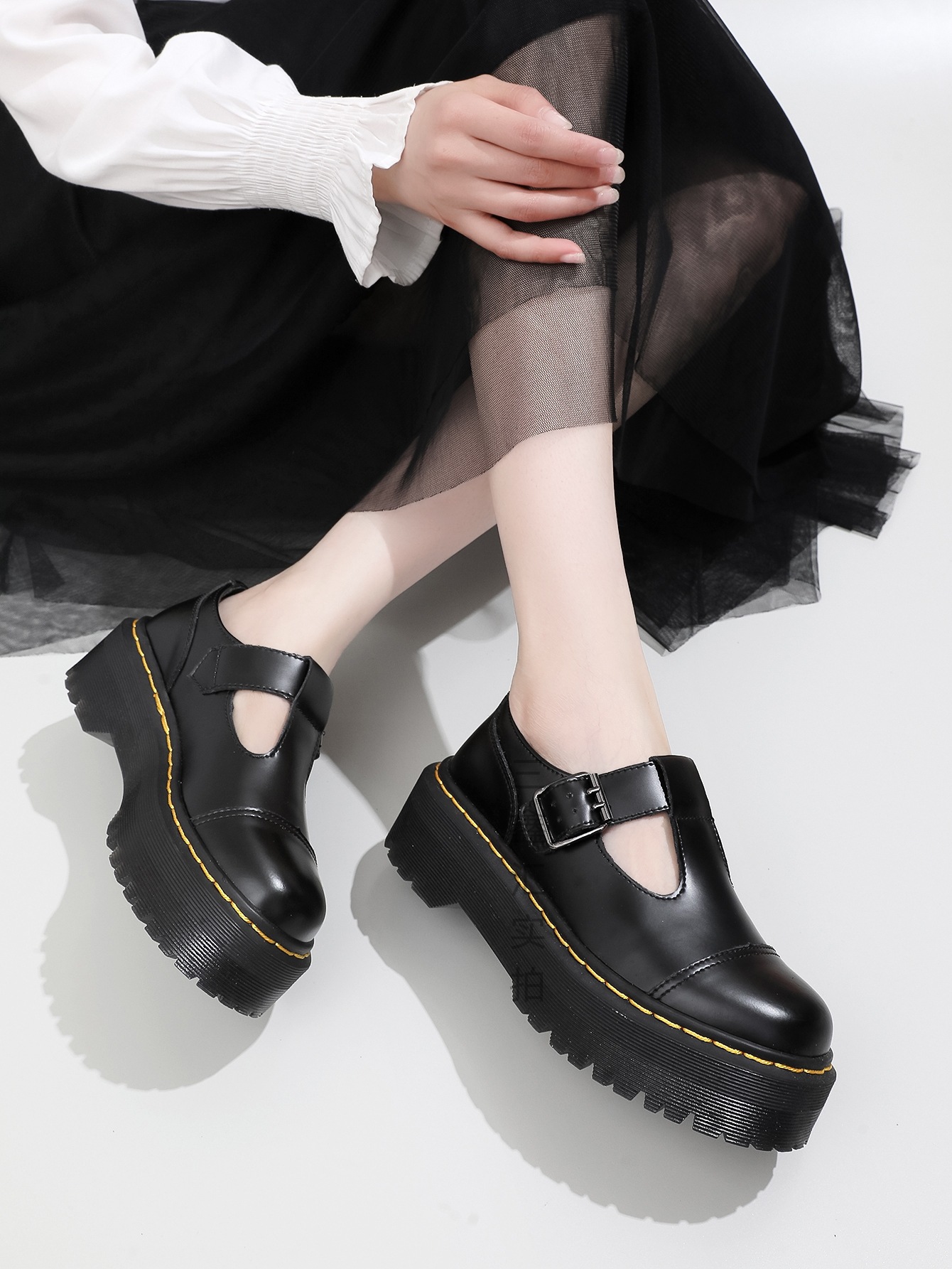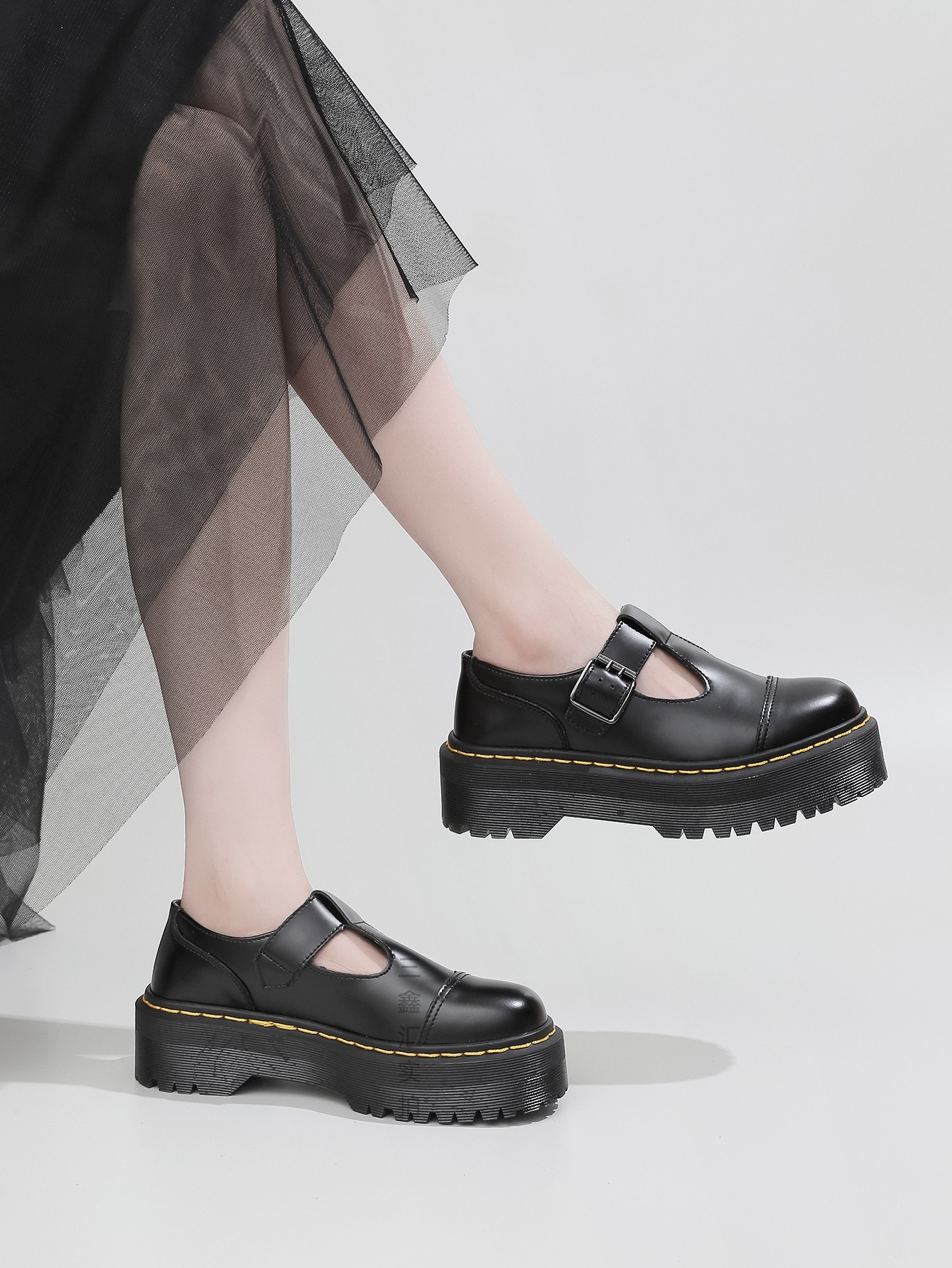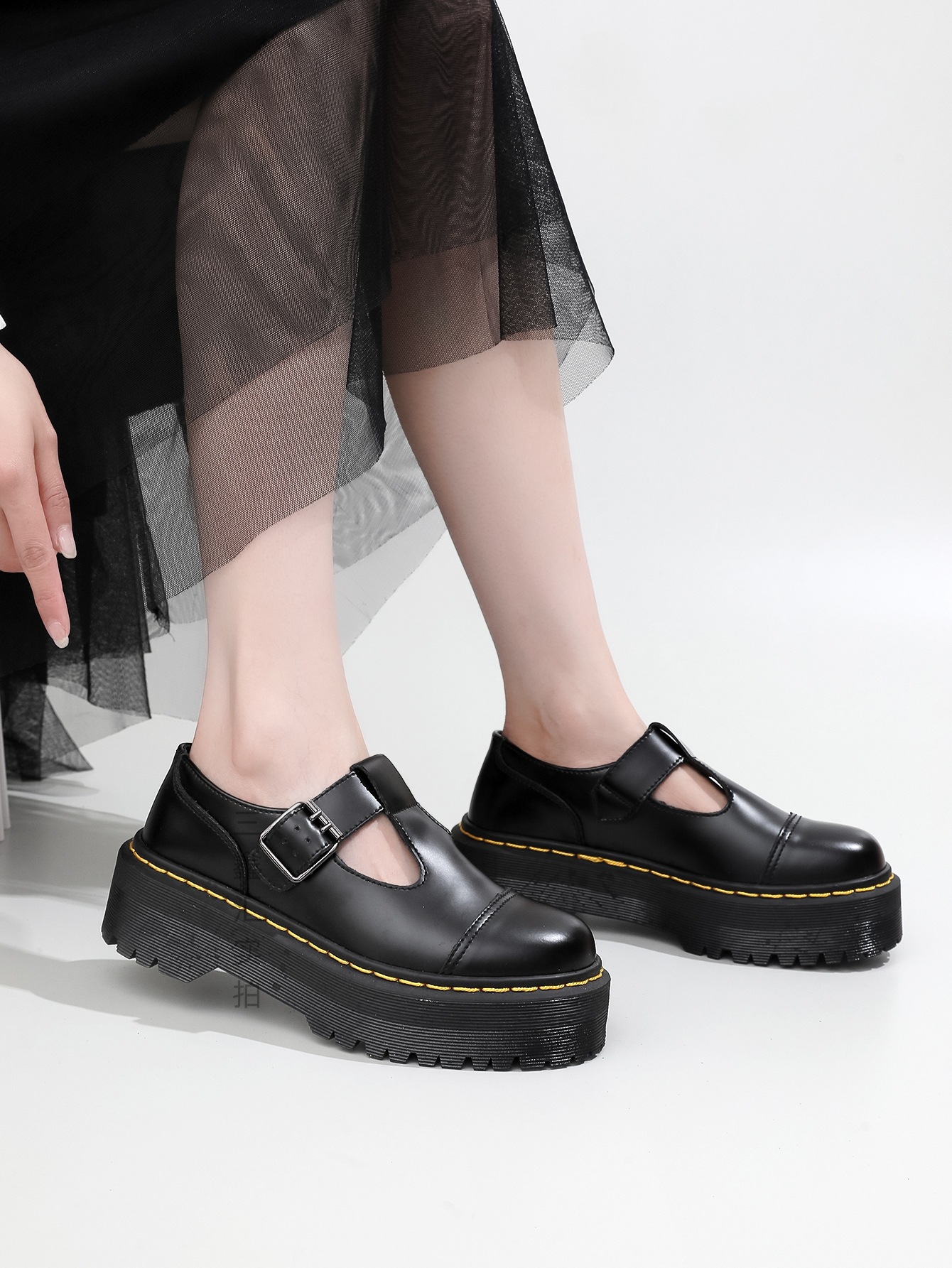 Sanxinhui 두꺼운 밑창 T 스트랩 Mary Jane 여성 신발 정품 가죽 로우 탑 영국 스타일 높은 플랫폼 신발 영국 작은 가죽 신발스토어 가기
