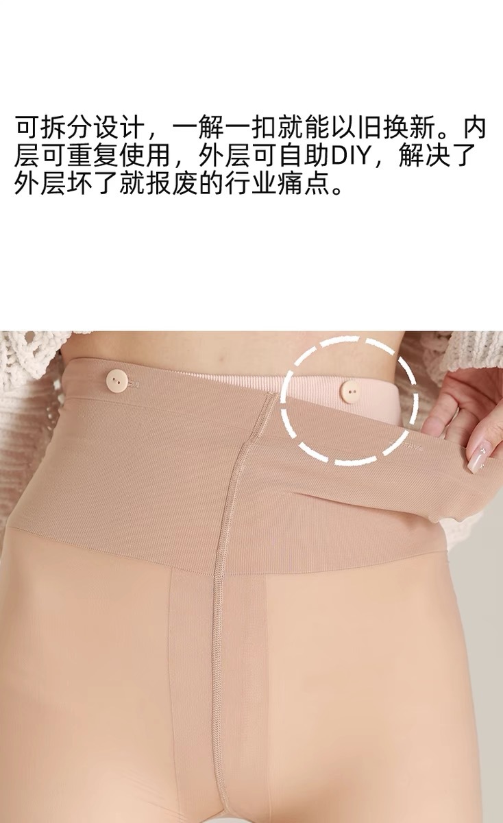 优势2:丝袜外层原料升级日本原料升级为780针,更细腻丝滑密度高不易勾丝 穿过能复原。市场普遍都国产材质400到480针。因为细腻所以没有螺旋纹。且质感柔软!