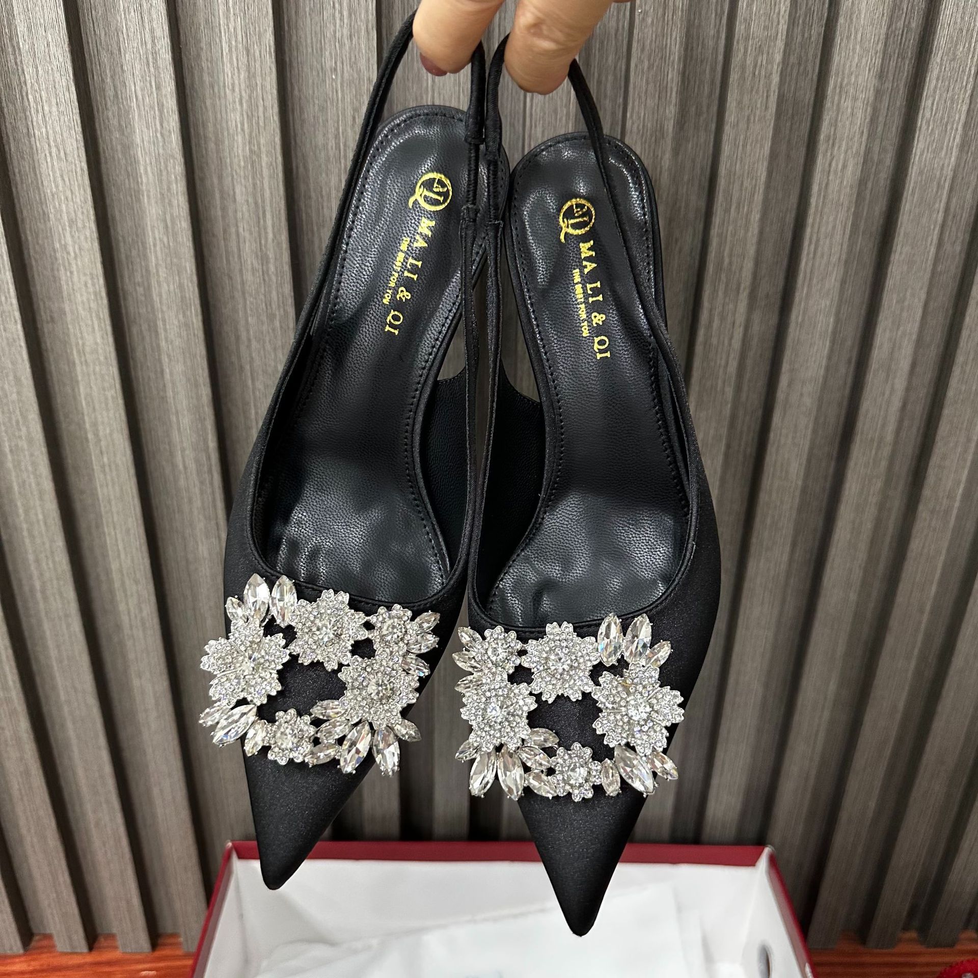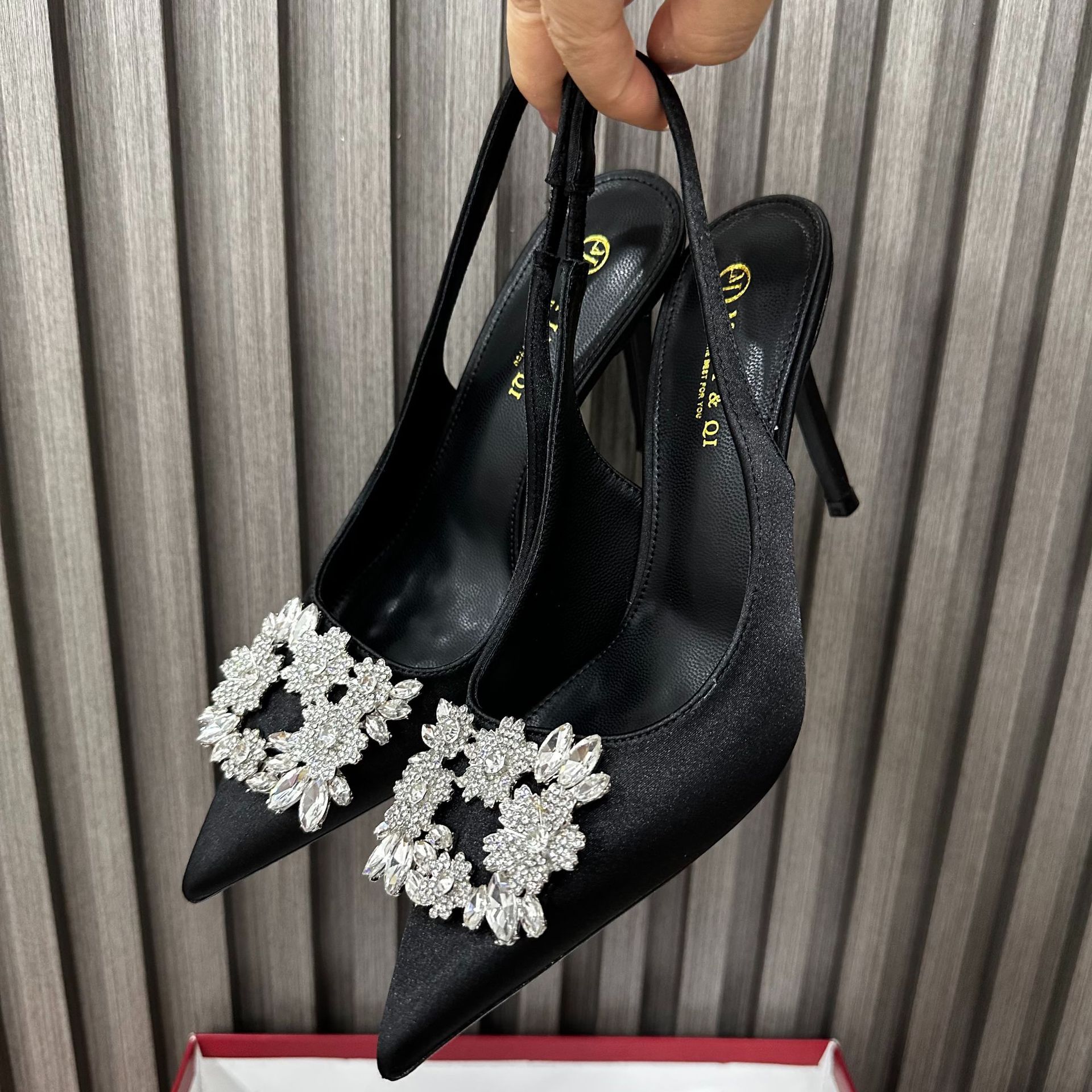 • 검정색 실크 새틴 백리스 8cm 힐