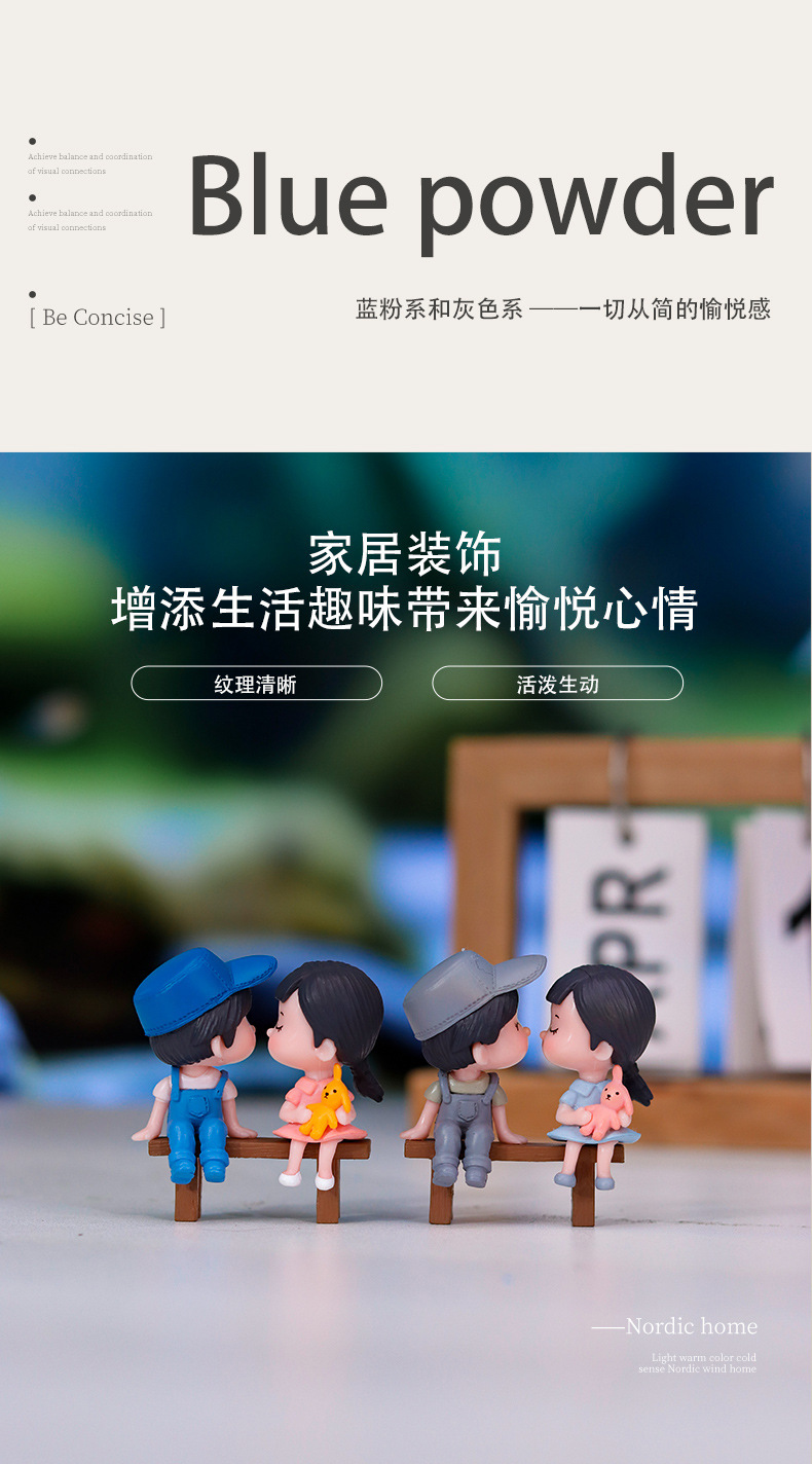 마이크로 풍경 창조적 인 홈 작은 장식품 달콤한 커플 데스크탑 작은 장식품 도매 수지 장식품 의자 커플스토어 가기