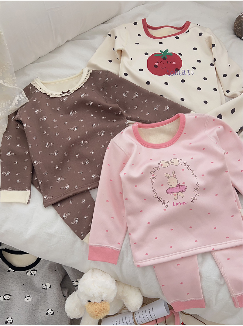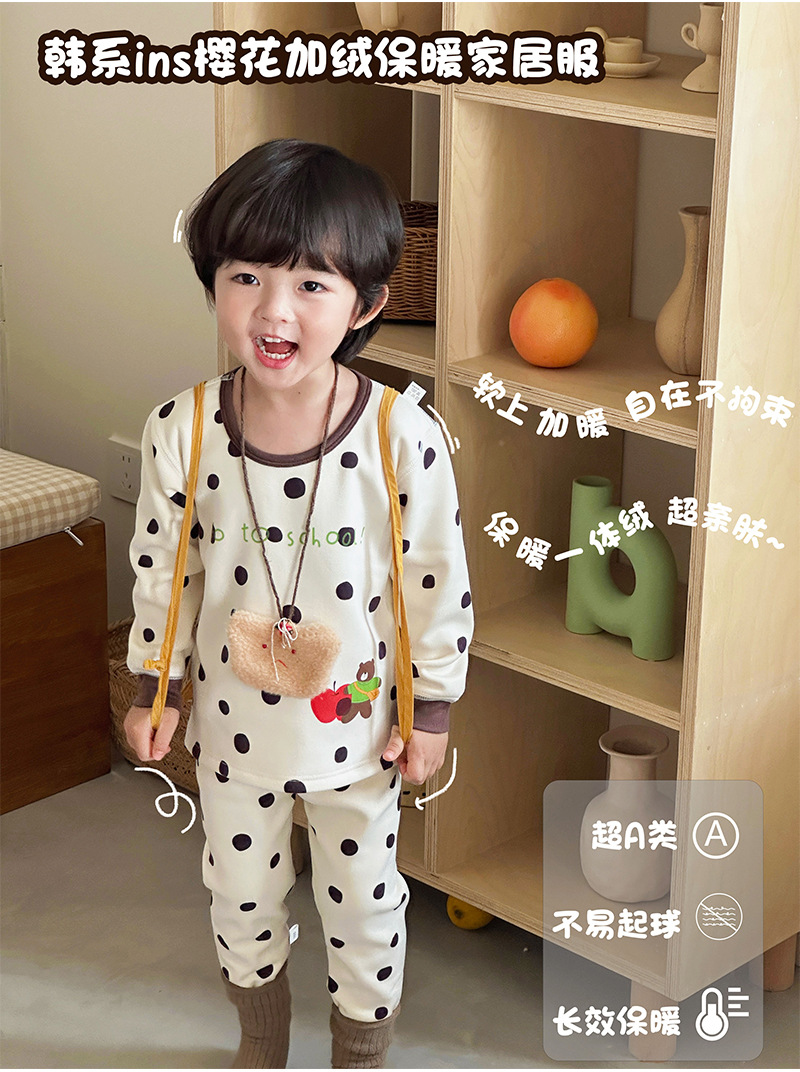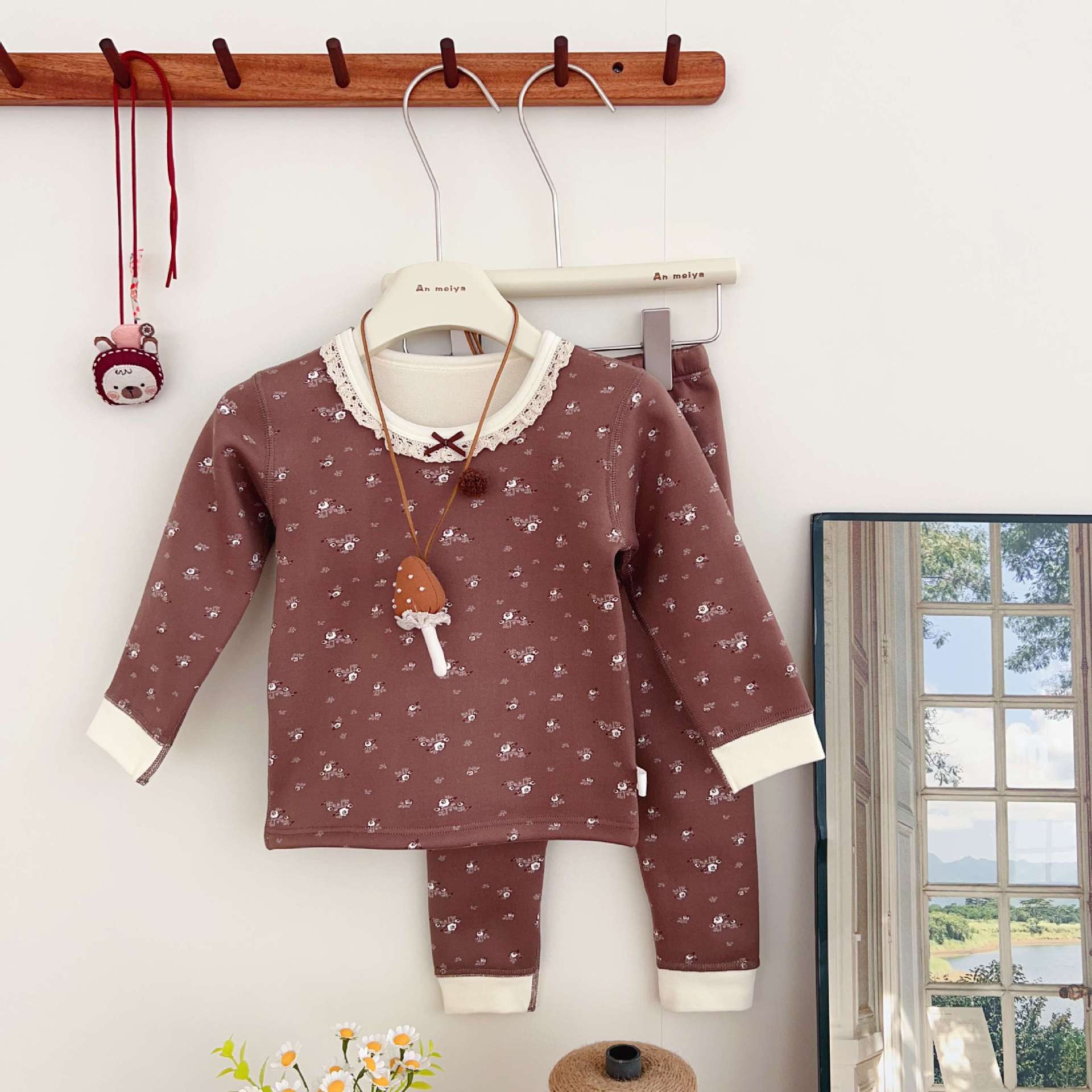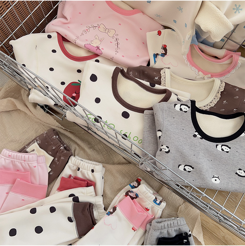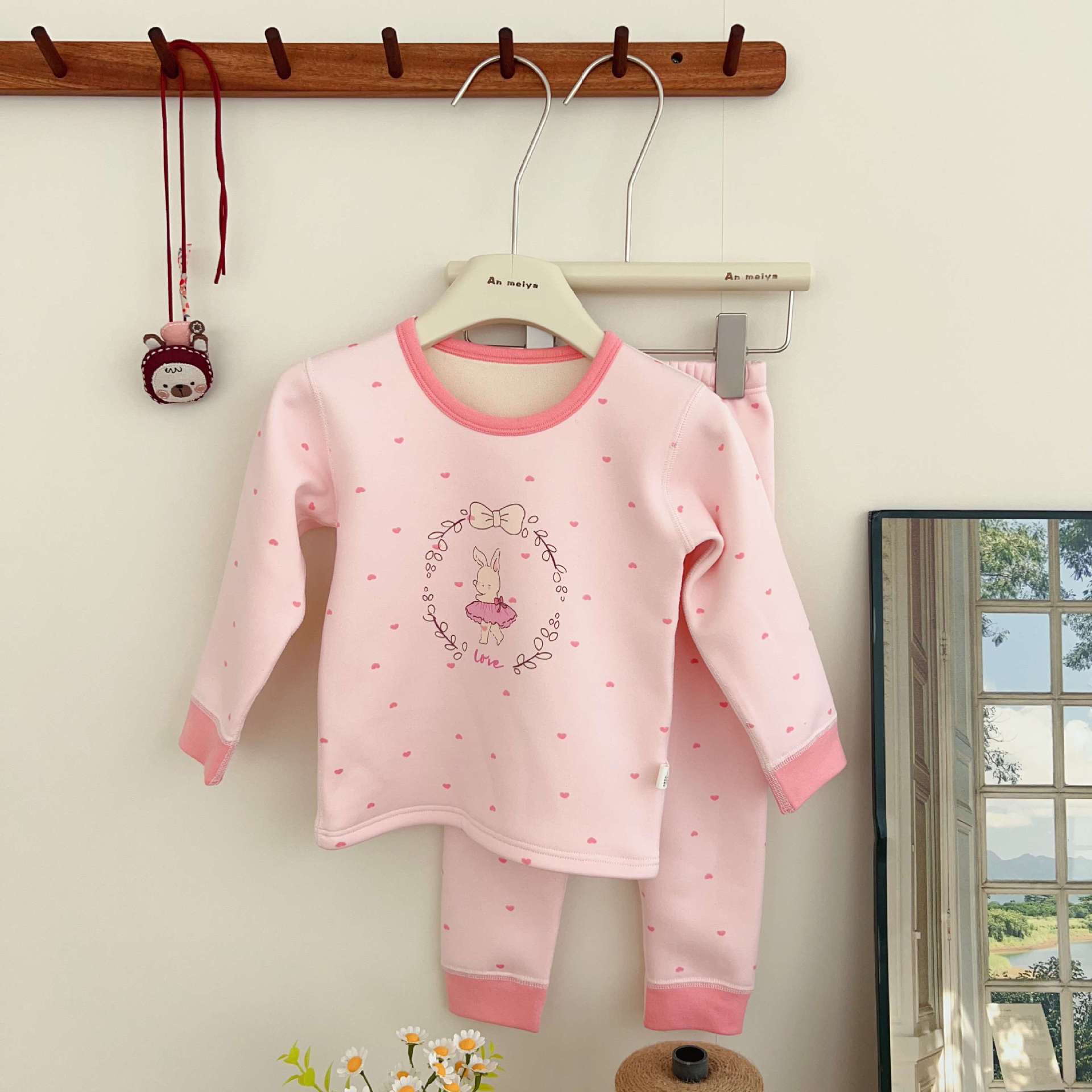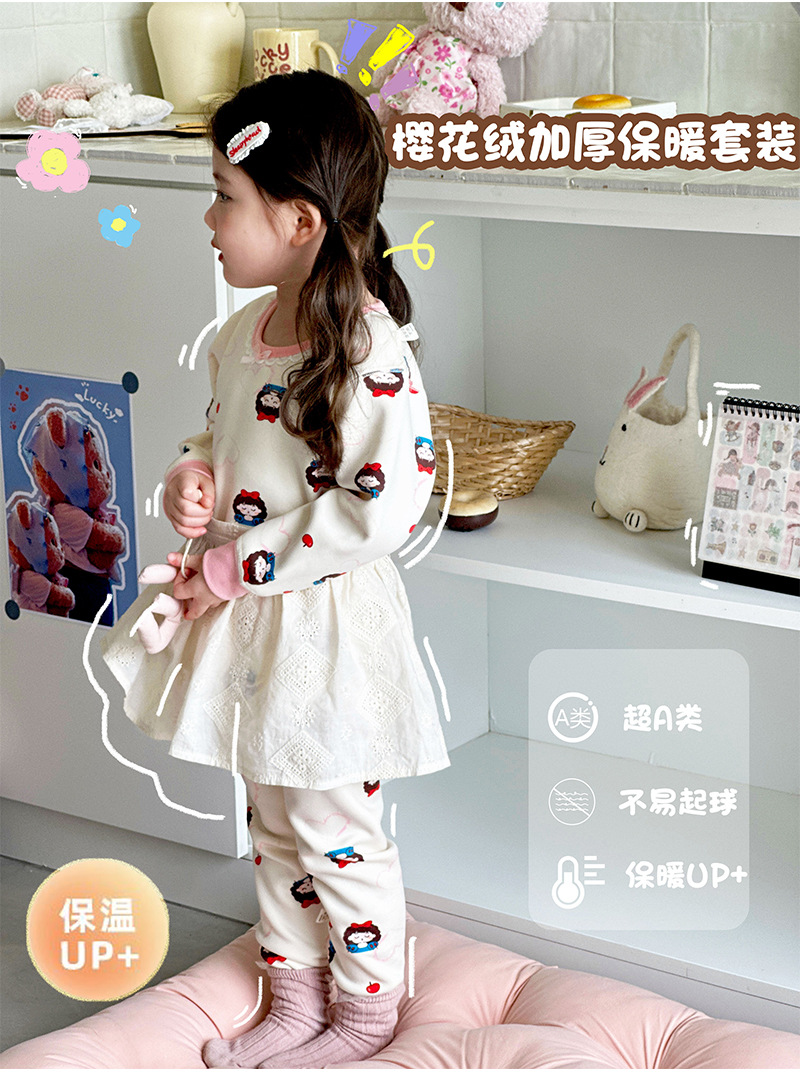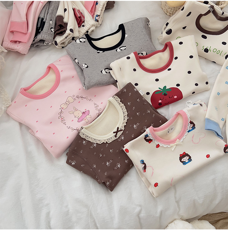 AnMeiya 열 속옷 어린이 파자마 벚꽃 벨벳 속옷 세트 어린이 홈 옷 기모 두꺼운 우유 실크