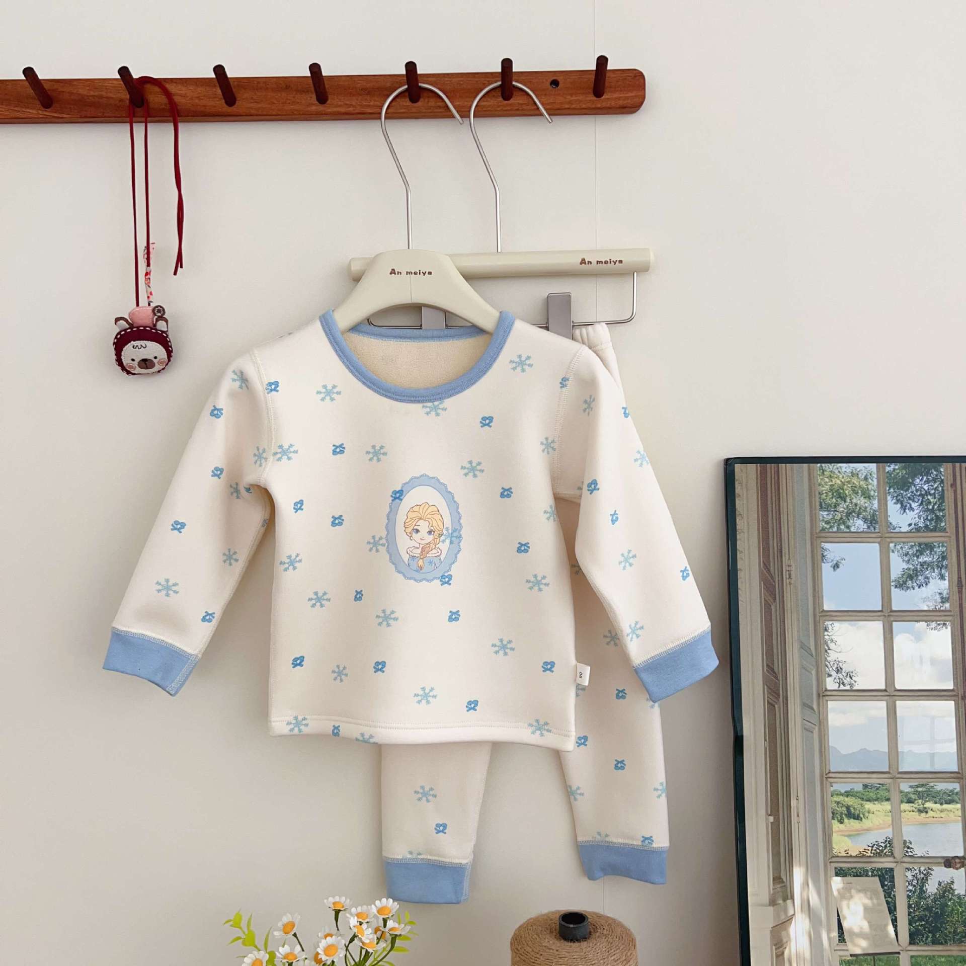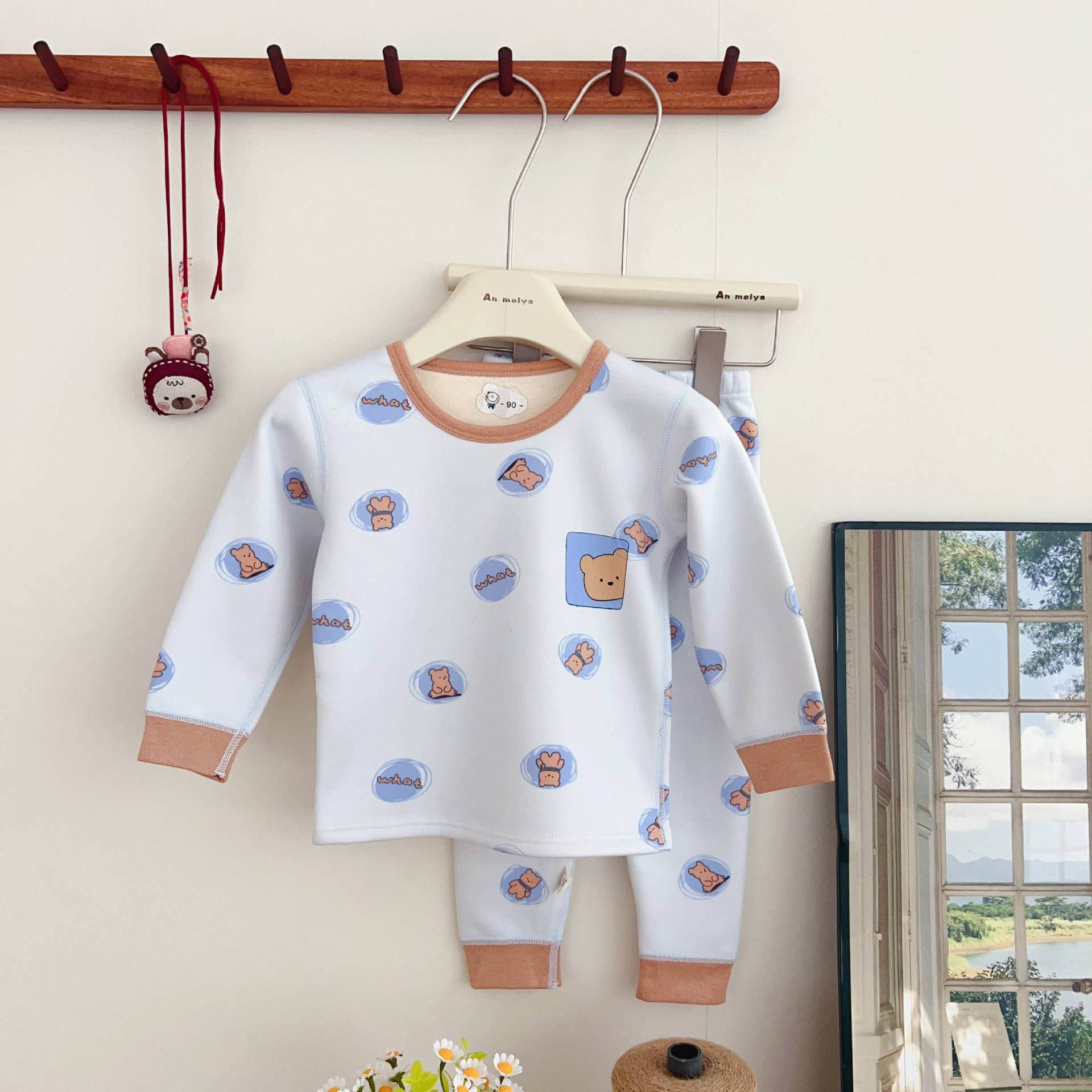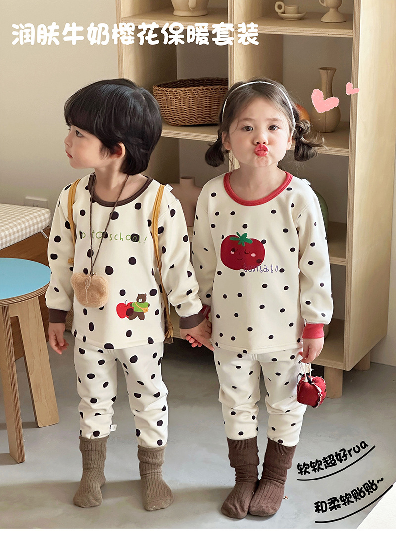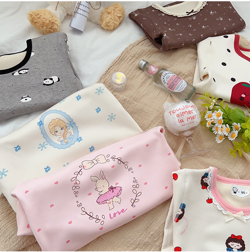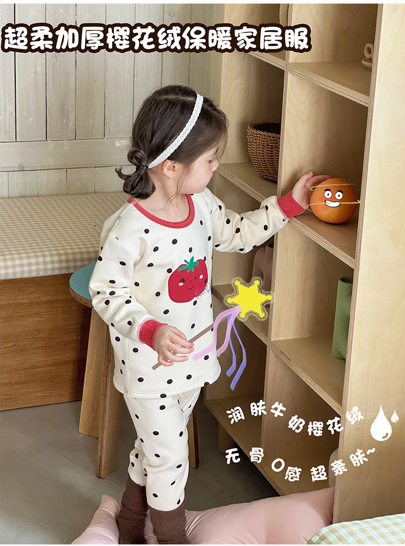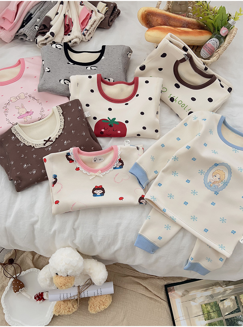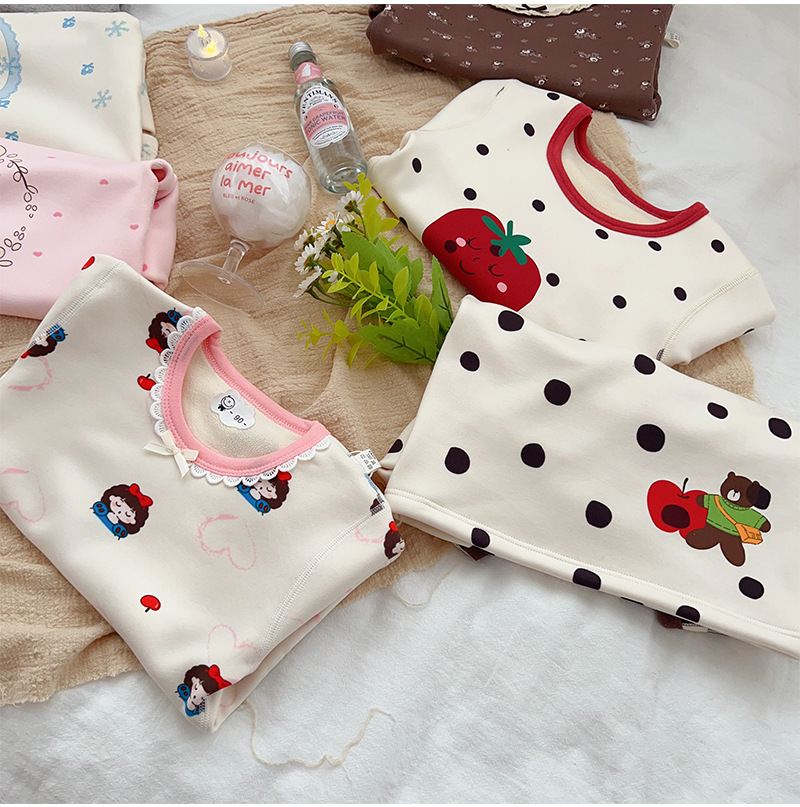 AnMeiya 열 속옷 어린이 파자마 벚꽃 벨벳 속옷 세트 어린이 홈 옷 기모 두꺼운 우유 실크