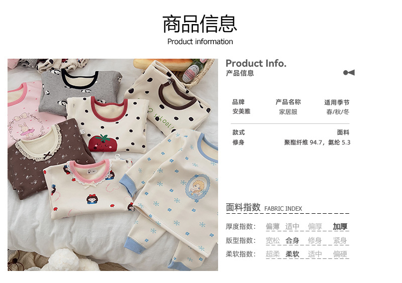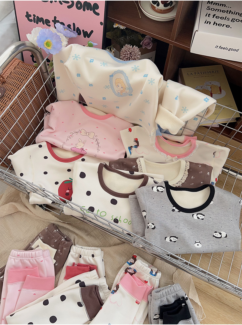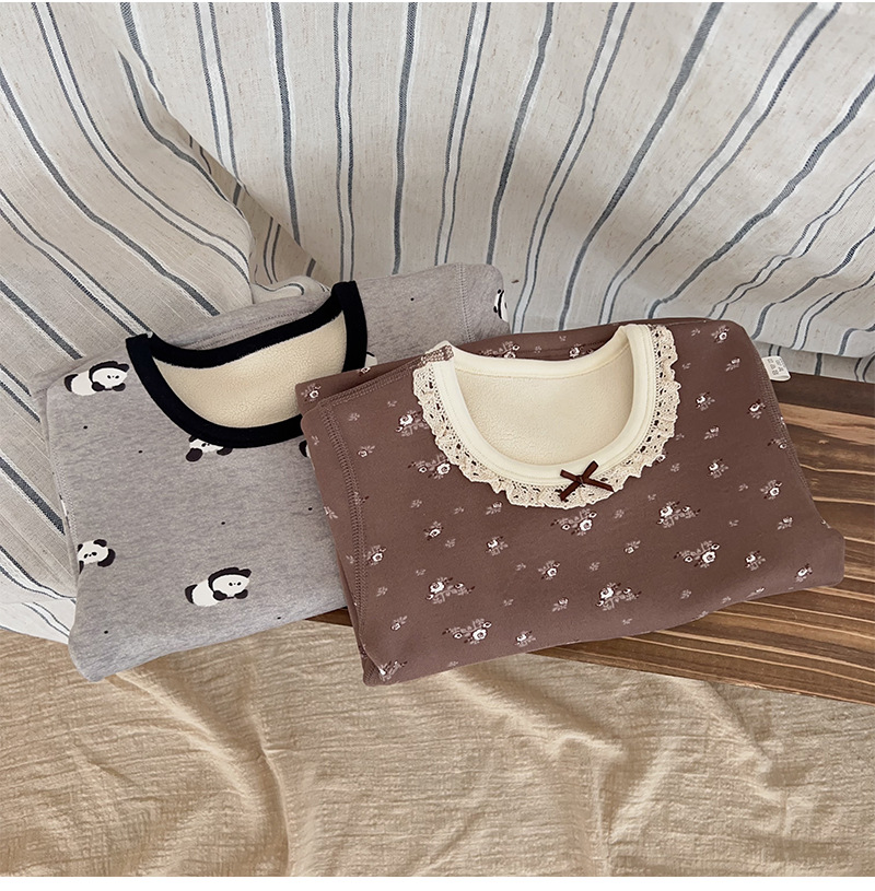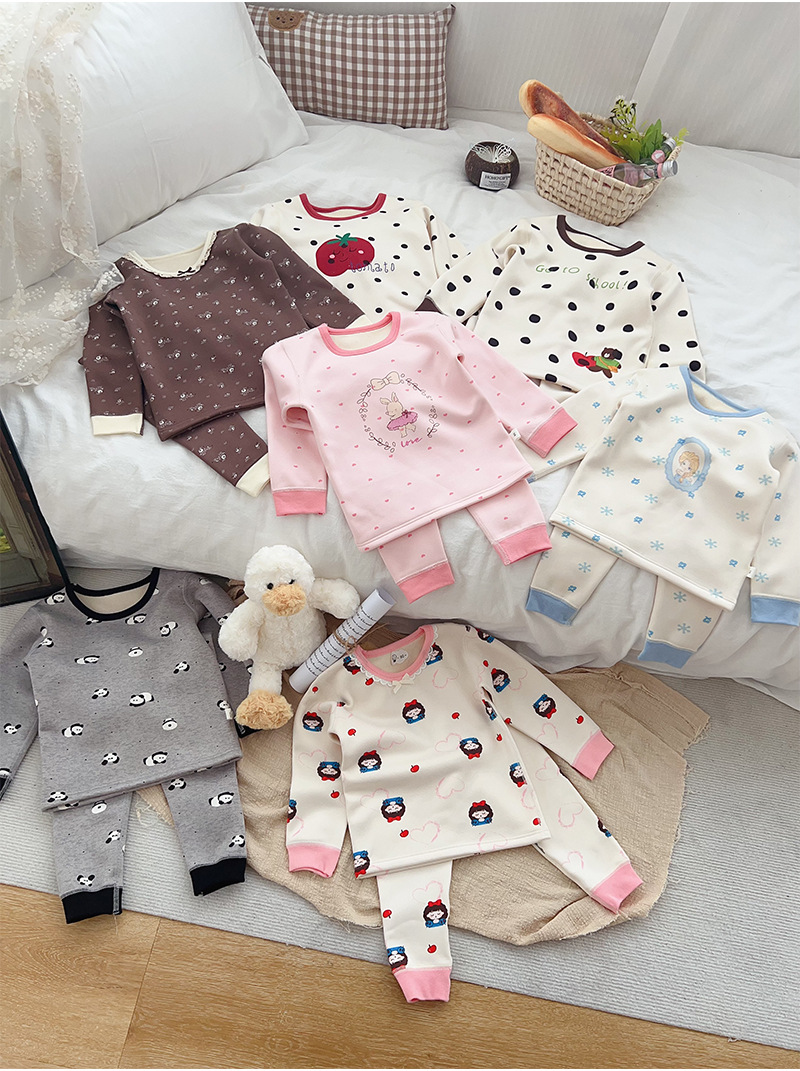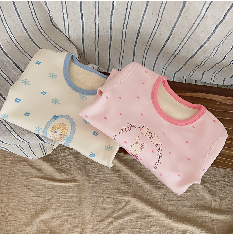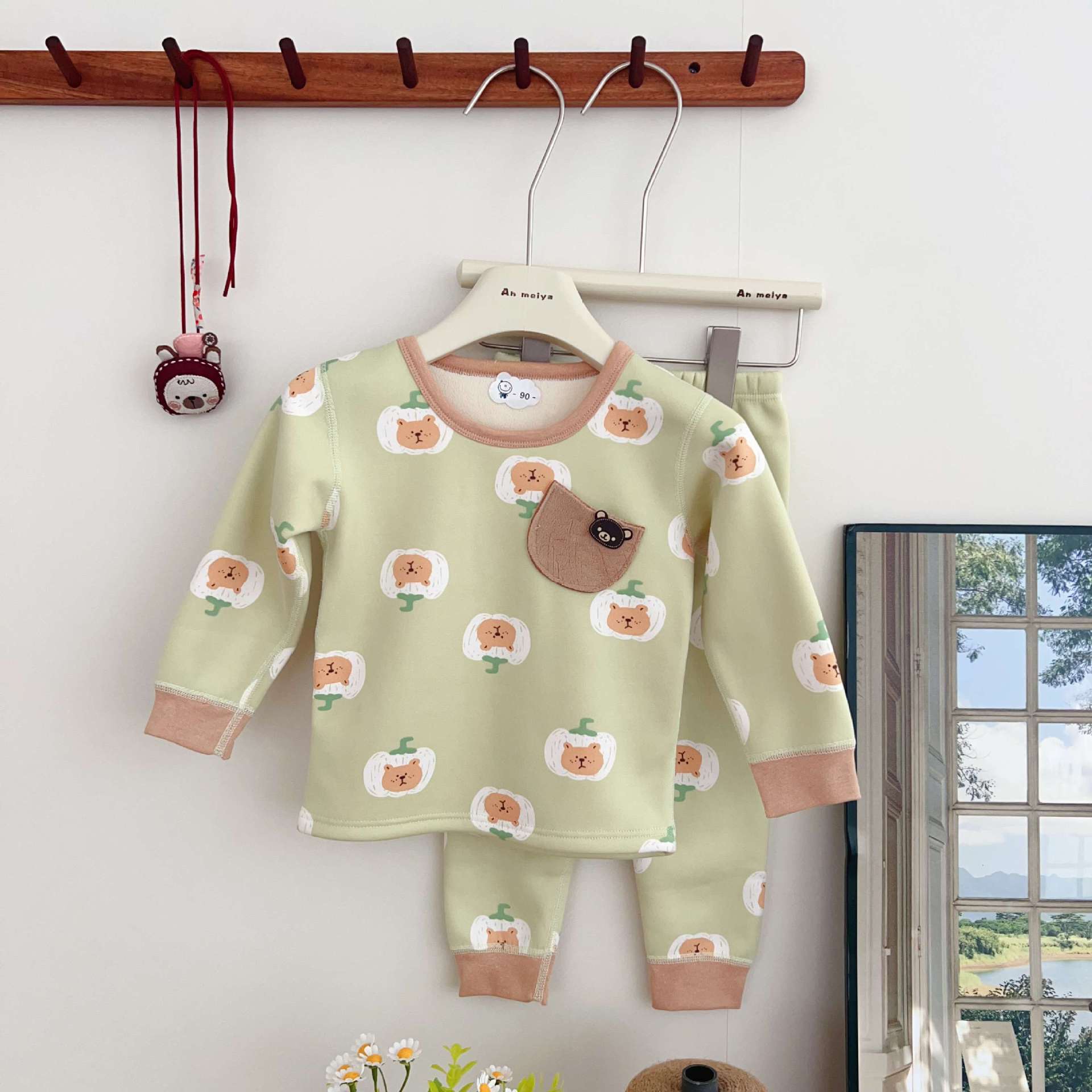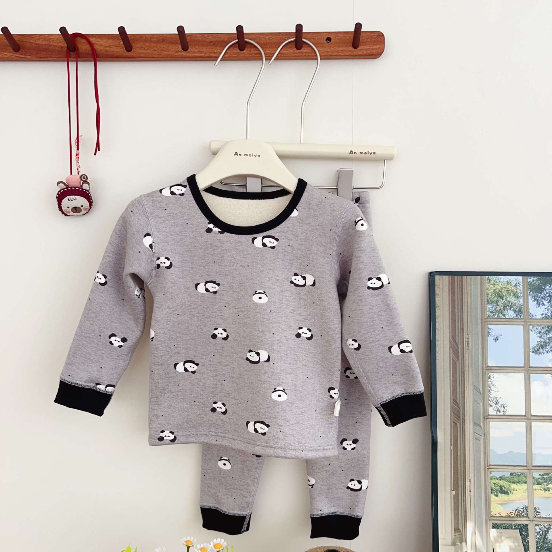 AnMeiya 열 속옷 어린이 파자마 벚꽃 벨벳 속옷 세트 어린이 홈 옷 기모 두꺼운 우유 실크