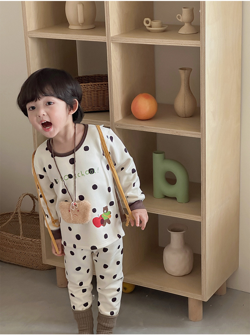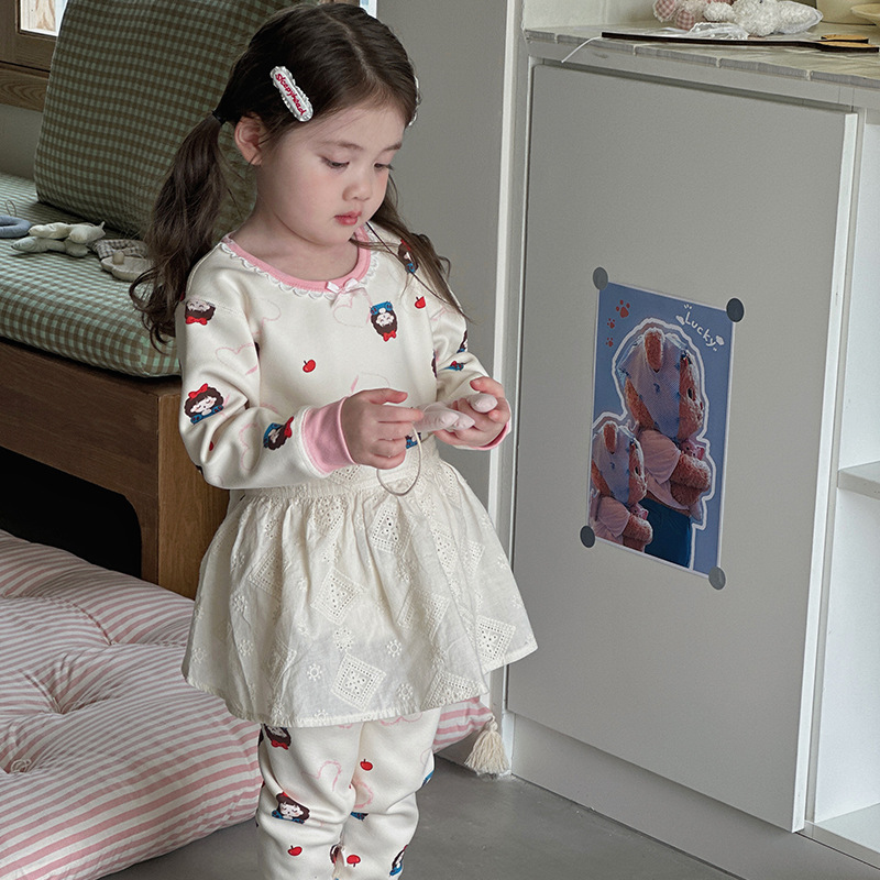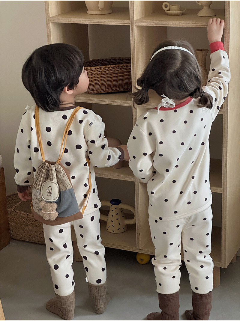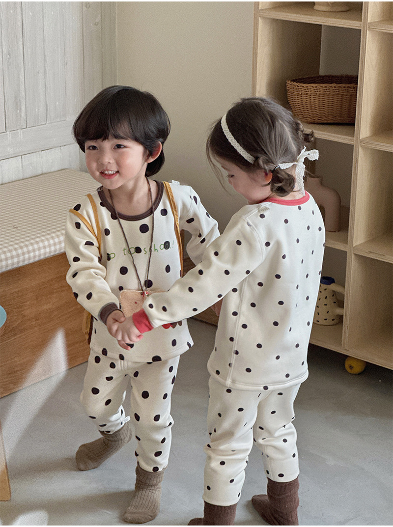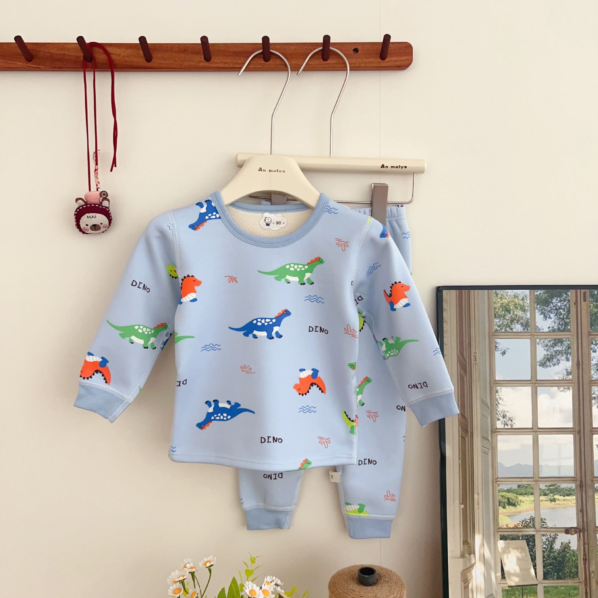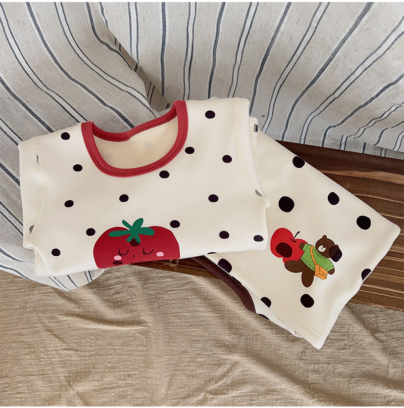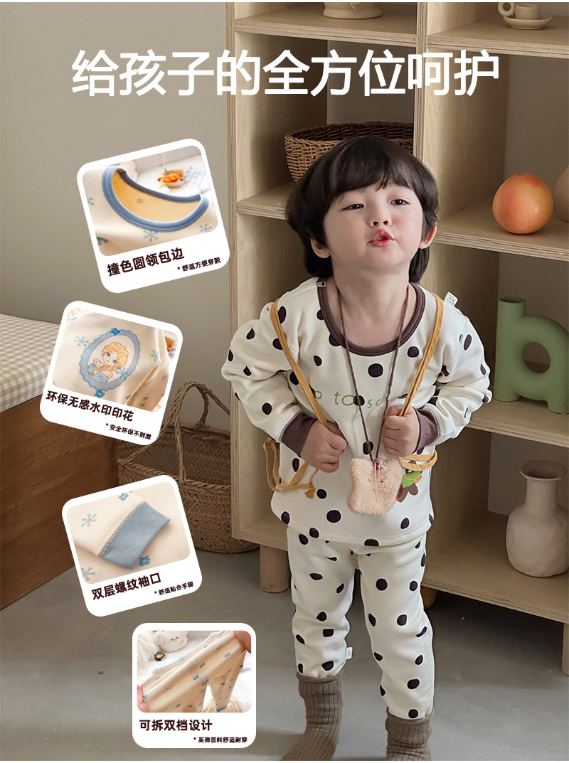 AnMeiya 열 속옷 어린이 파자마 벚꽃 벨벳 속옷 세트 어린이 홈 옷 기모 두꺼운 우유 실크