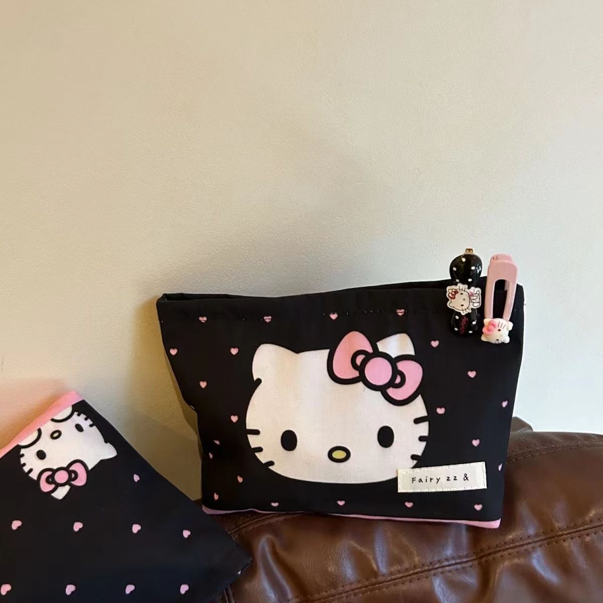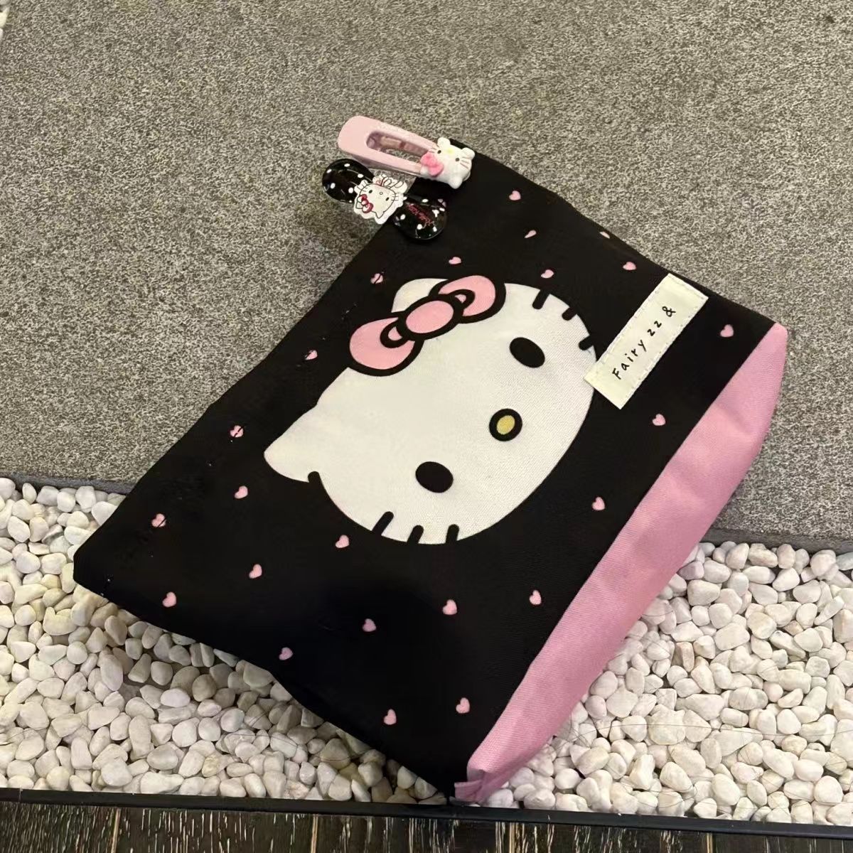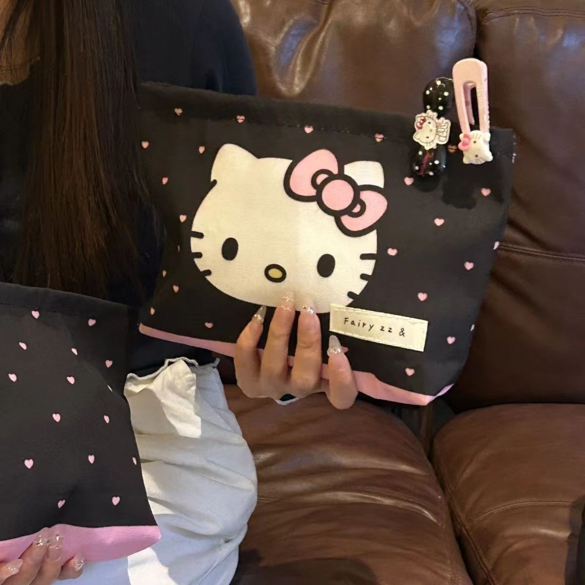 요정 & 오리지널 연인 헬로 키티 휴대용 대용량 화장실 및 화장품 가방 핸드 헬드 아웃 라이너 코인 지갑