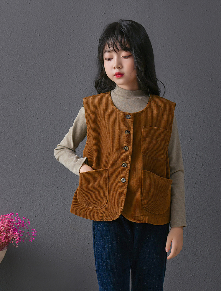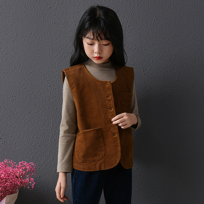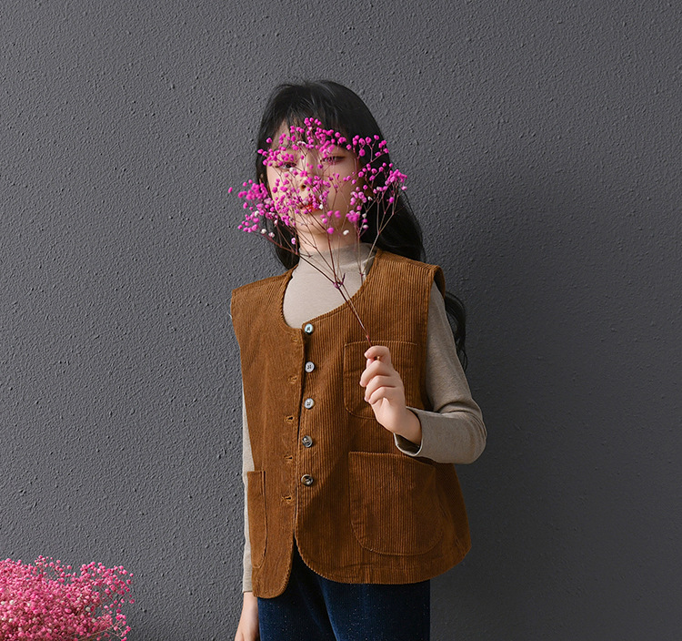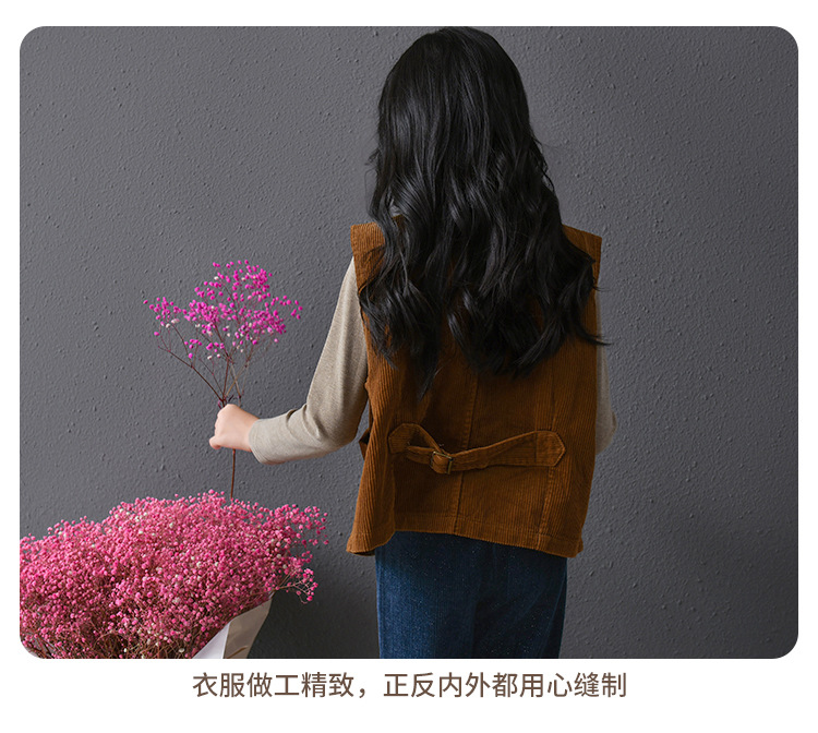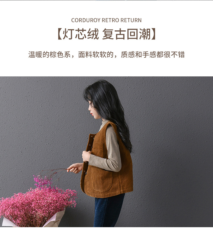 실제 샷 재고 클래식 싱글 브레스트 민소매 최고 문학 복고풍 기질 코듀로이 조끼 코트