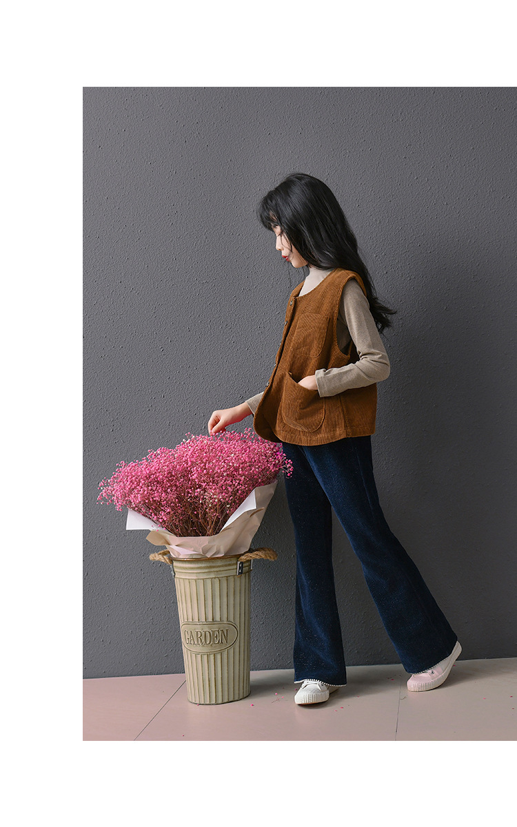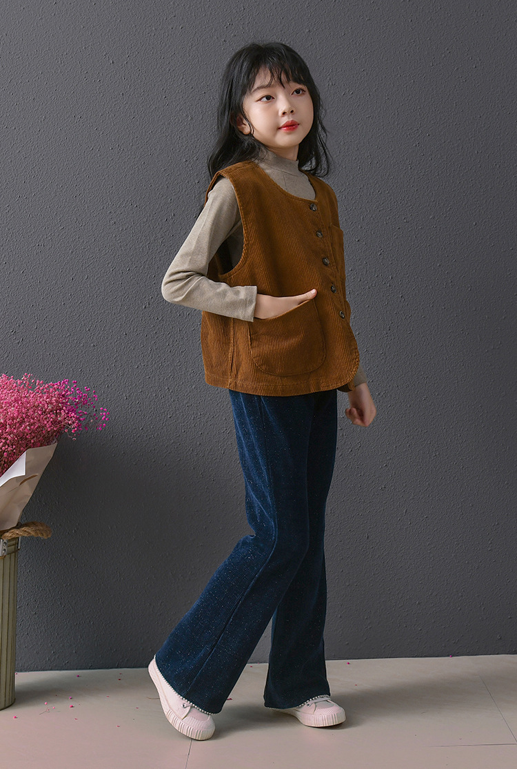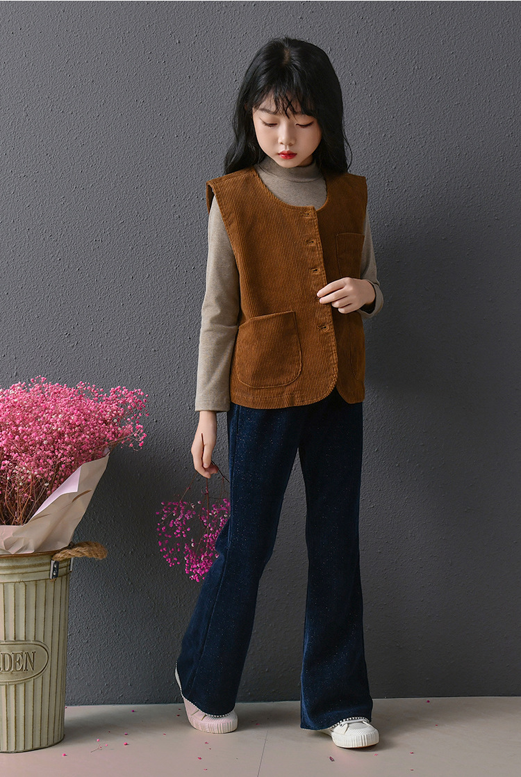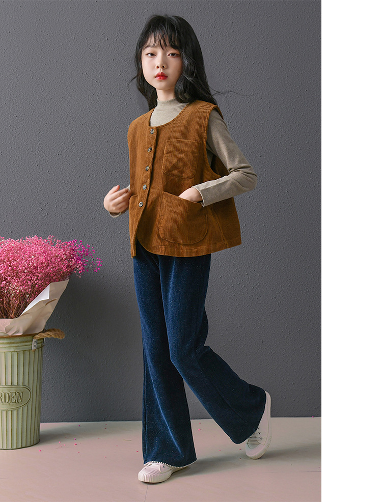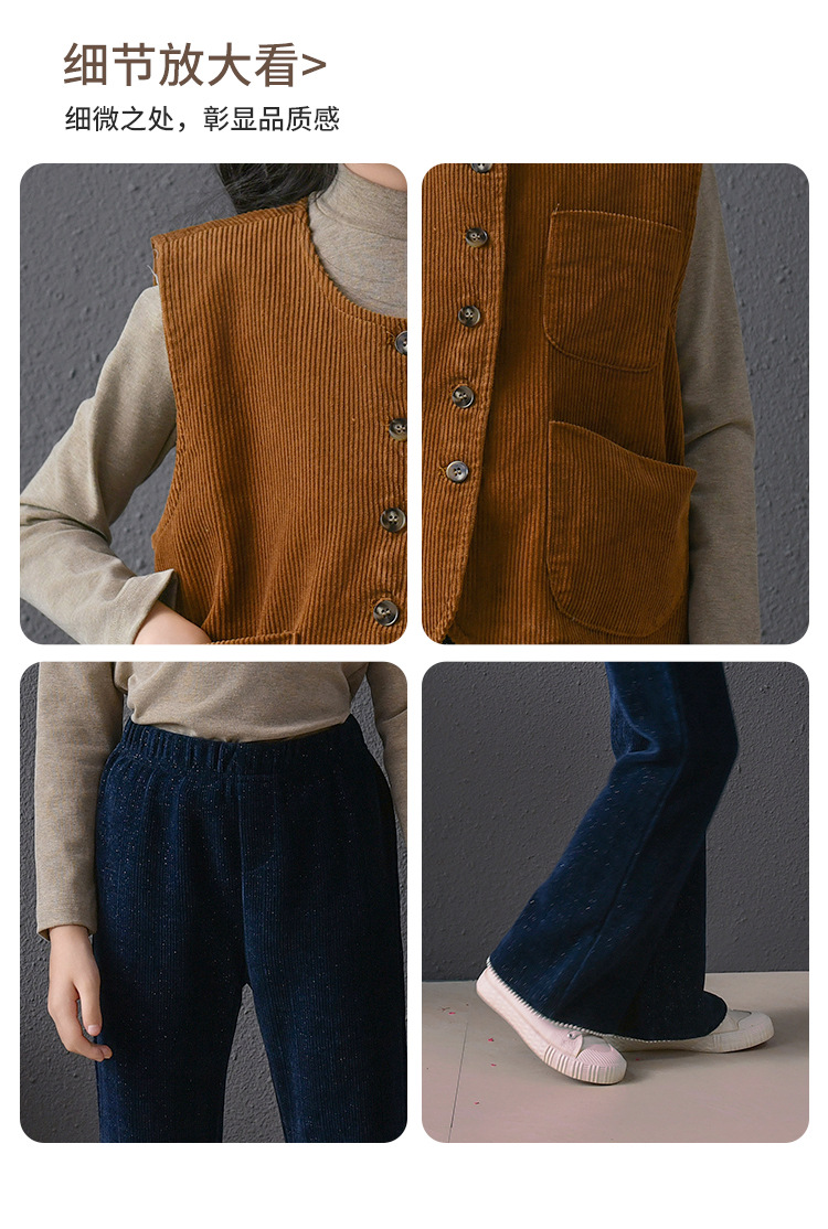 此款灯芯绒马甲限价79元,银丝珍珠喇叭裤限价85元,打底衫限价59元