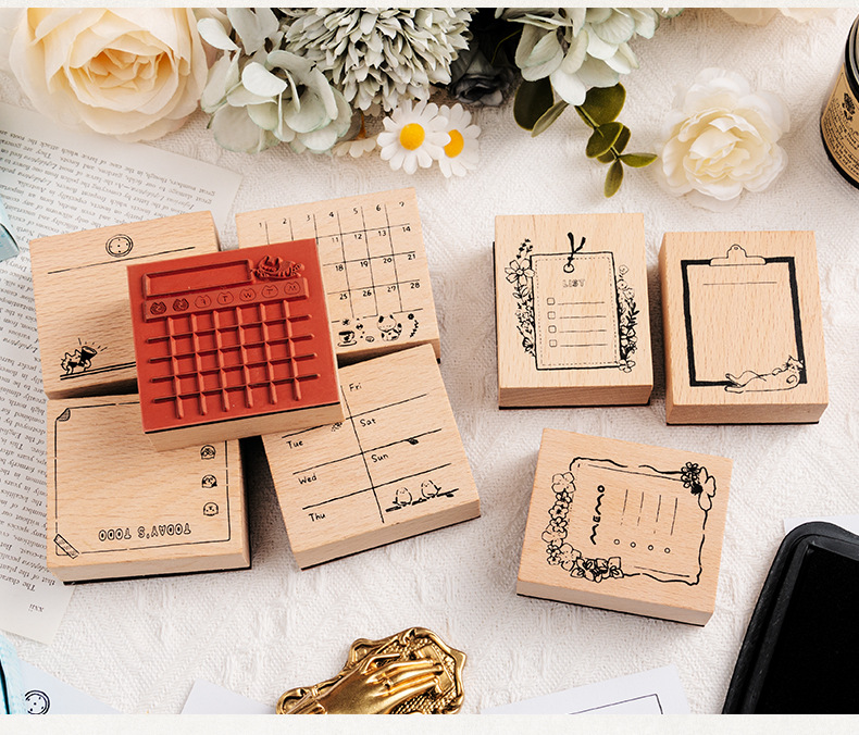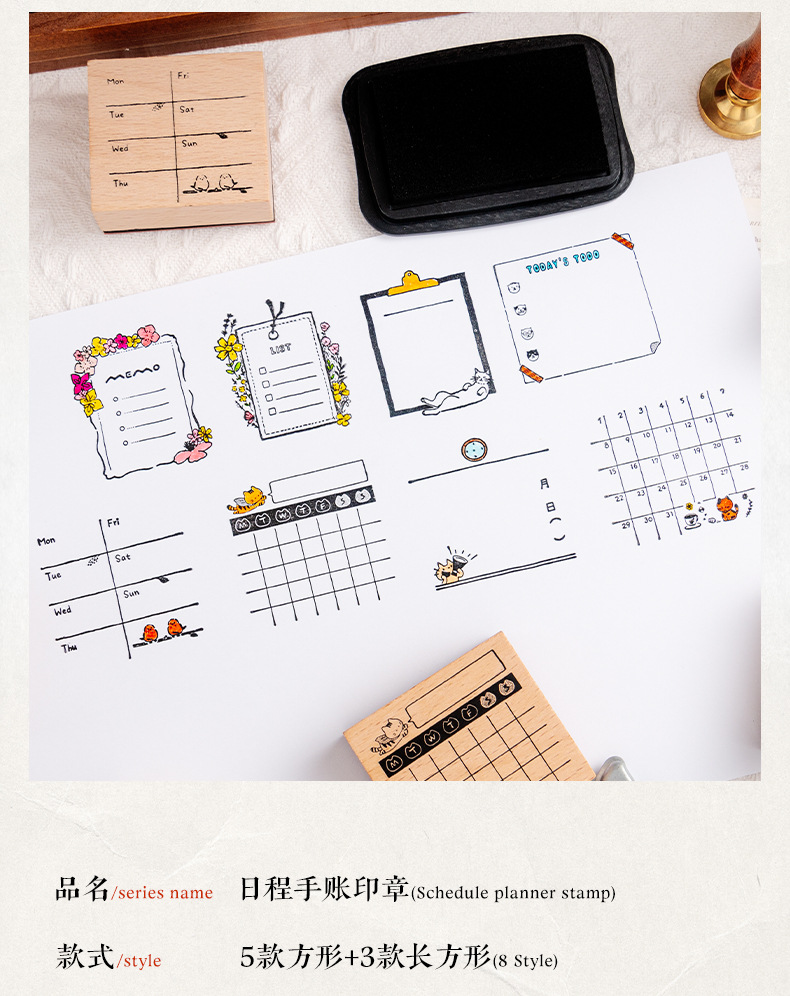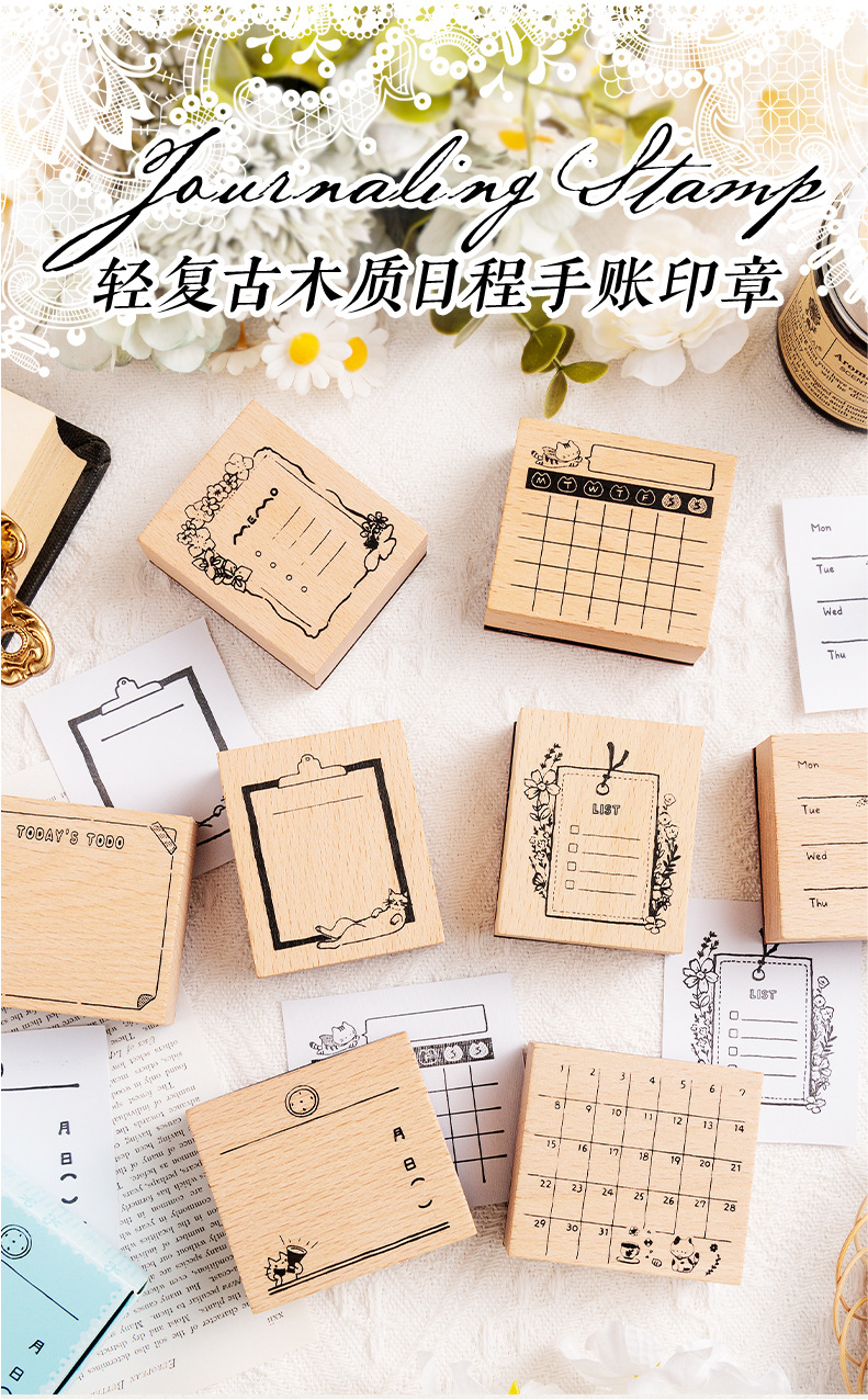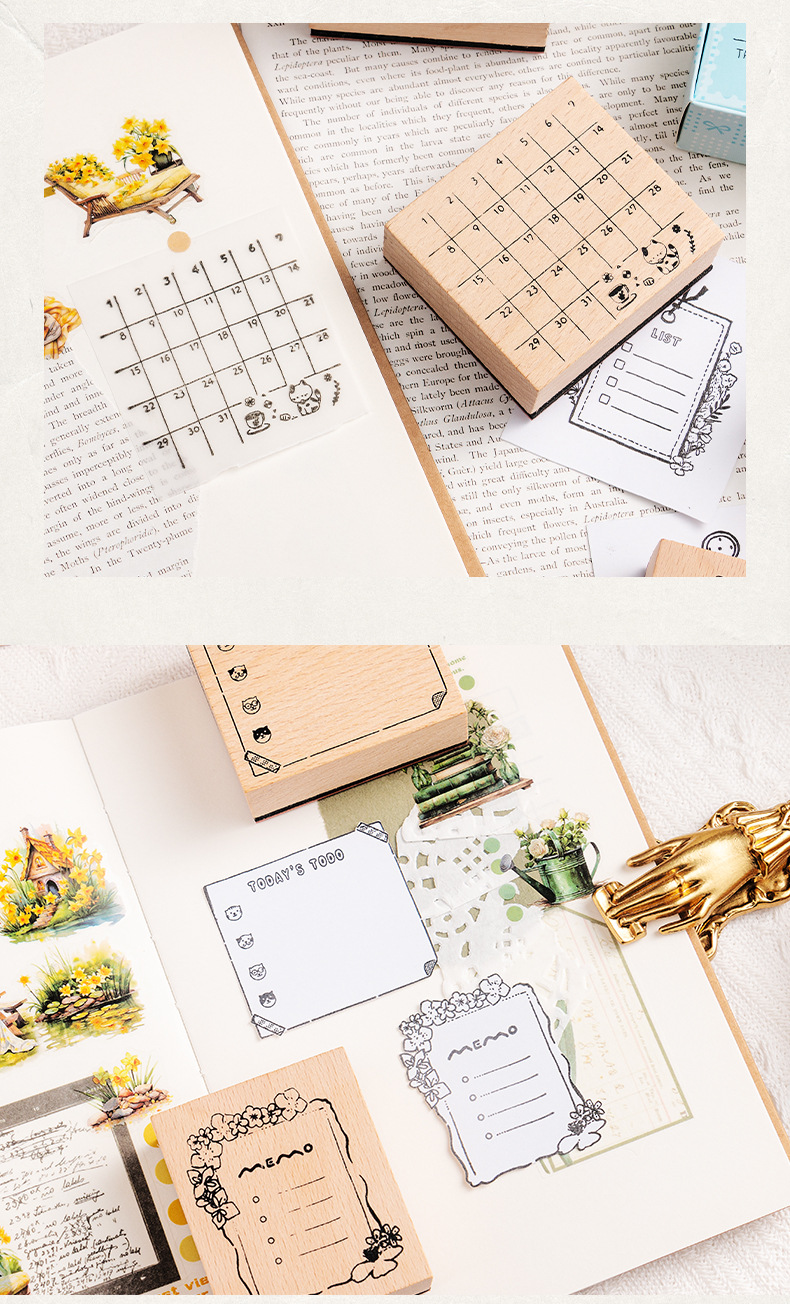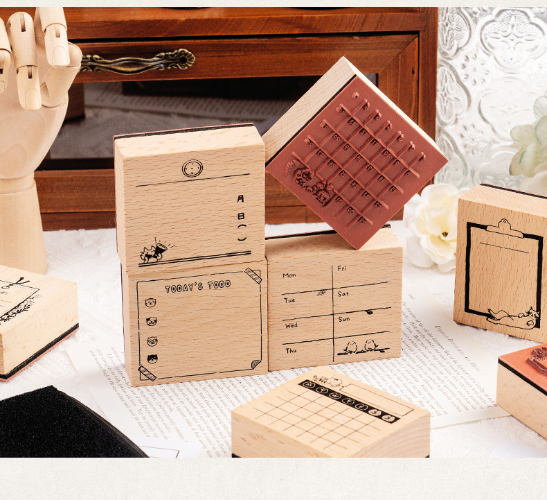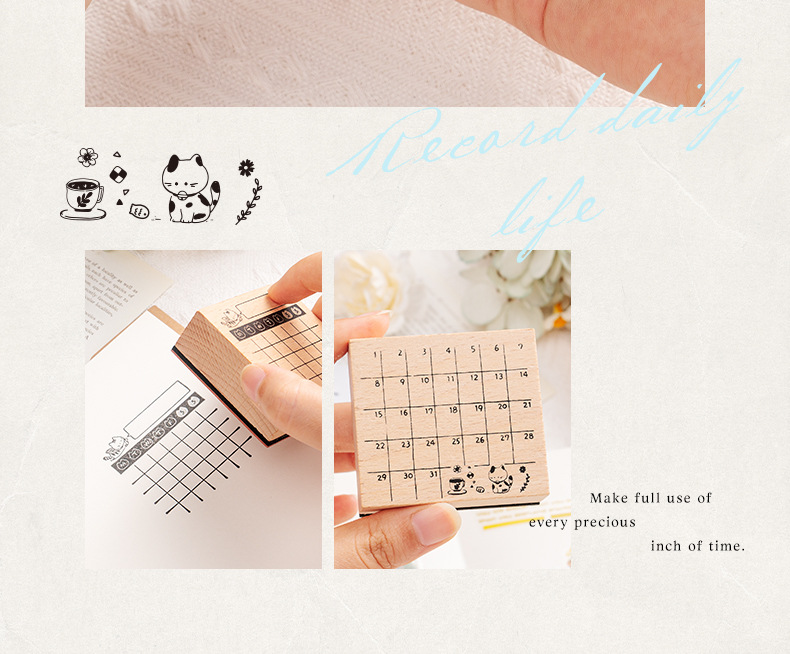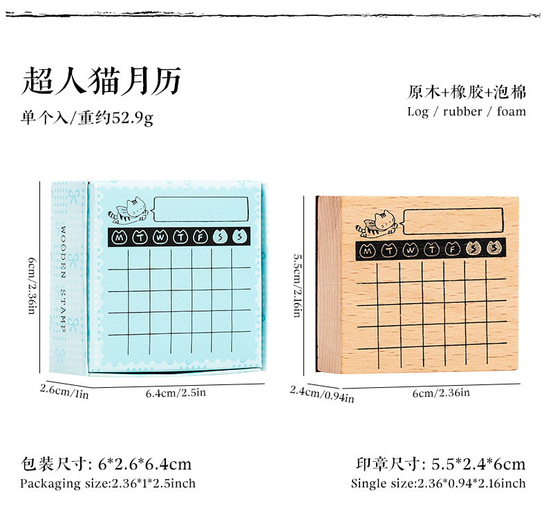 가벼운 복고풍 나무 일정 손 계정 스탬프 슈퍼맨 고양이 월간 달력 주간 달력 DIY 장식 재료 스탬프스토어 가기