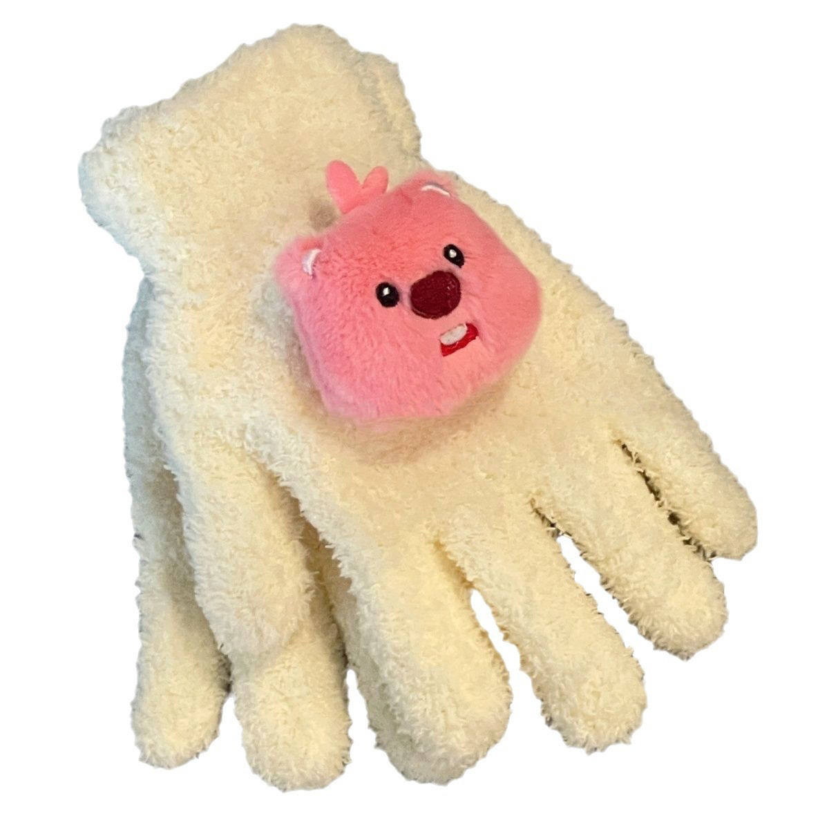 산호 양털 장갑과 함께 작은 빨간 책 귀여운 작은 비버 루피 봉제 장갑 차가운 장갑을 타는 학생
