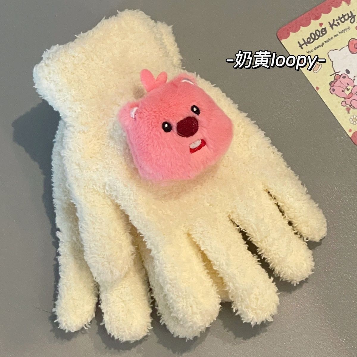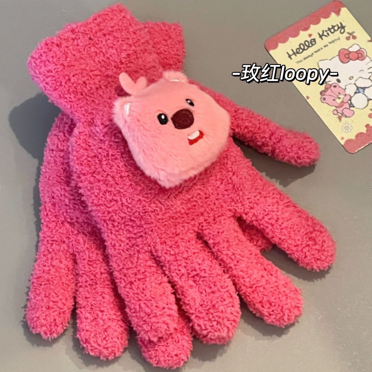 산호 양털 장갑과 함께 작은 빨간 책 귀여운 작은 비버 루피 봉제 장갑 차가운 장갑을 타는 학생스토어 가기