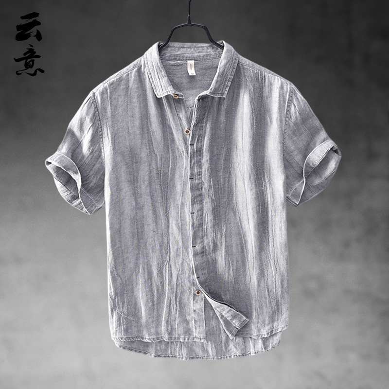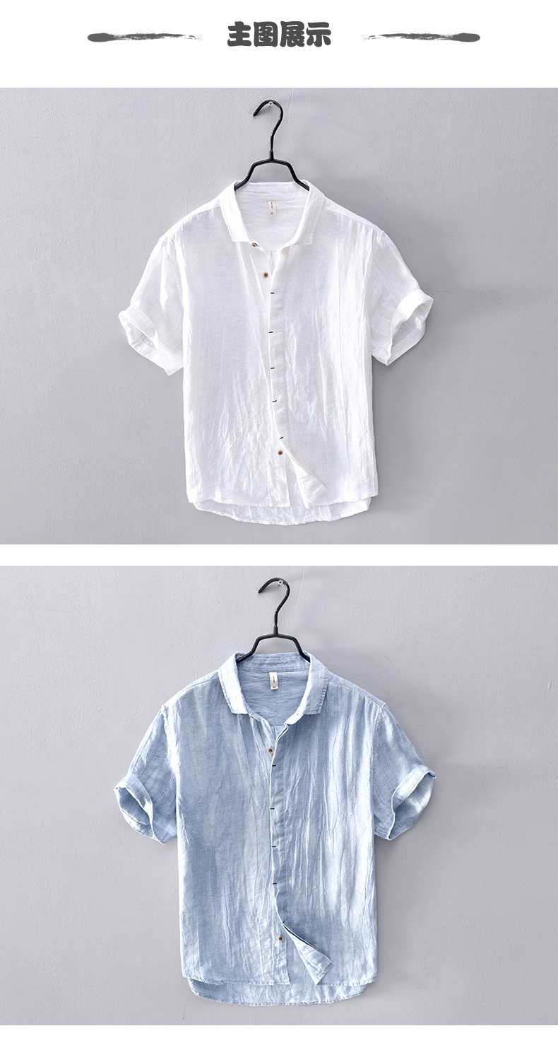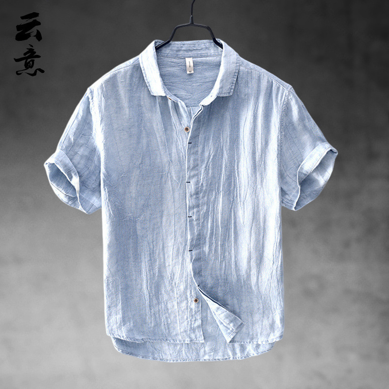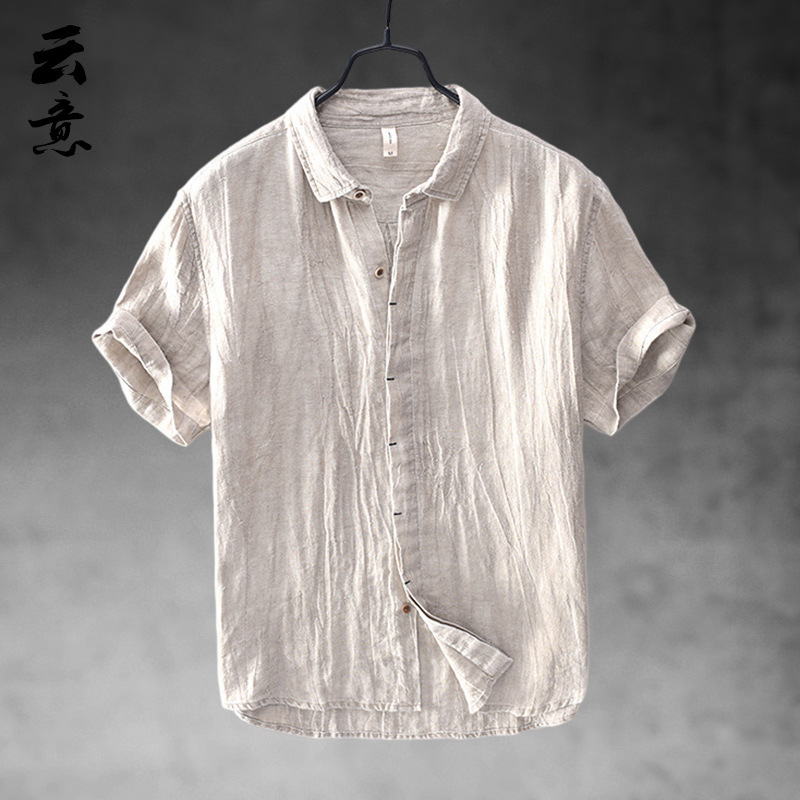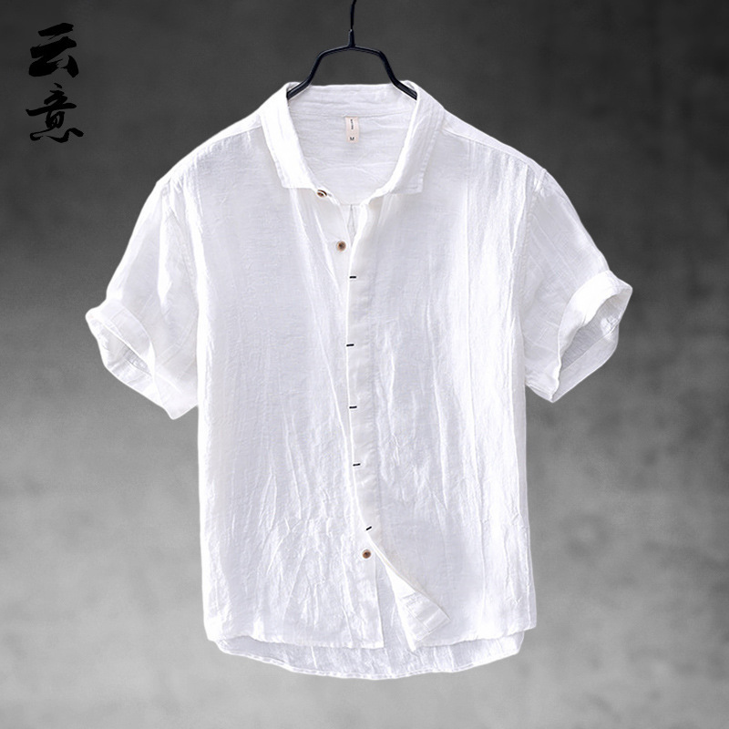 코튼 리넨 반팔 셔츠 남성 중국 스타일 캐주얼 통기성 셔츠 리넨 얇은 반소매 옷깃 탑스토어 가기