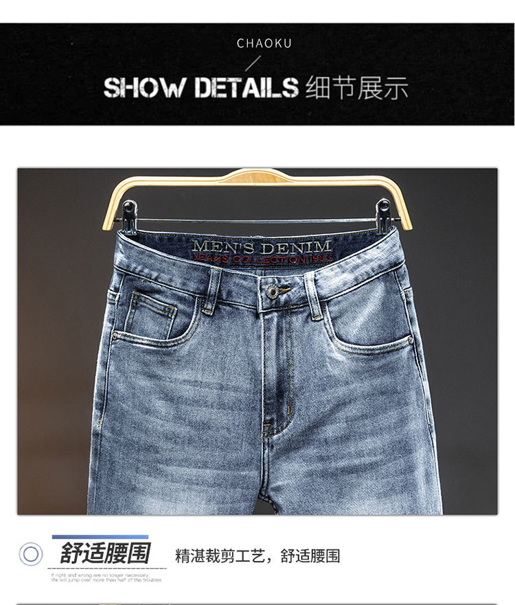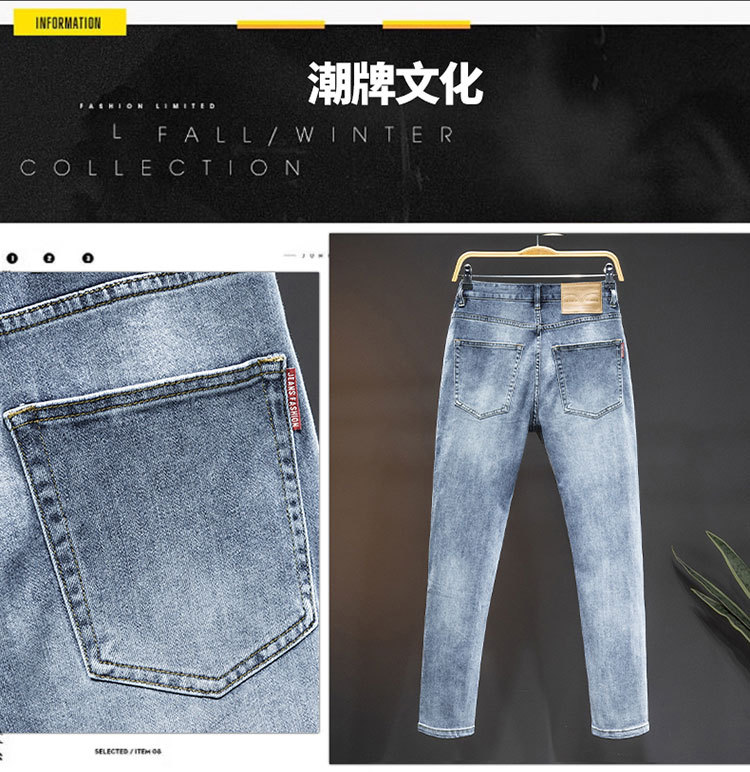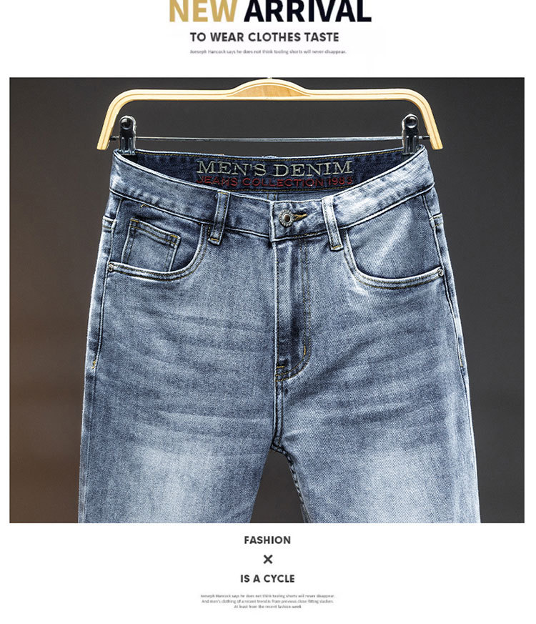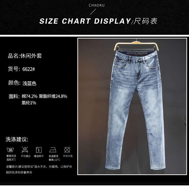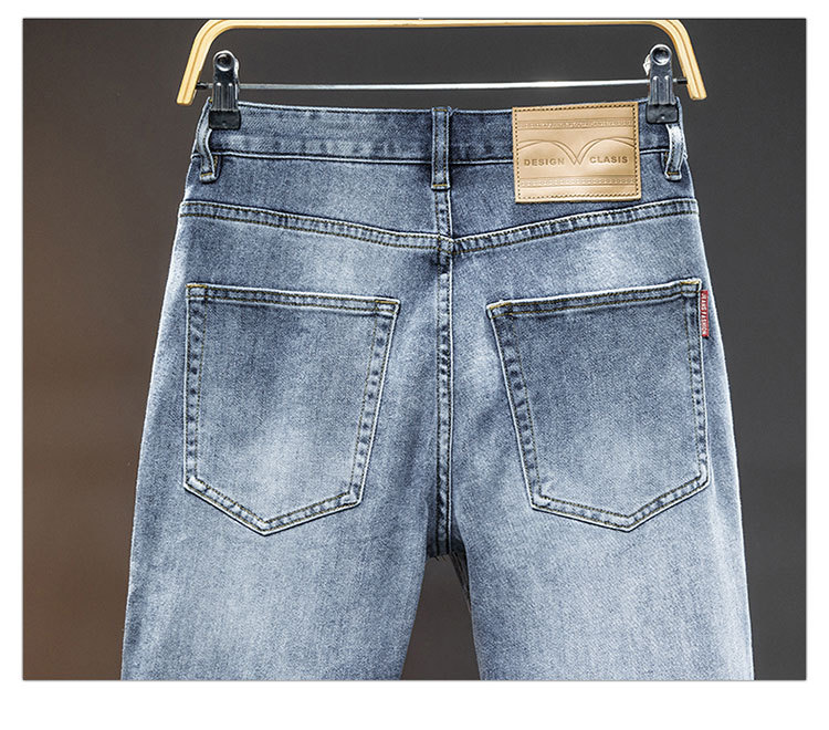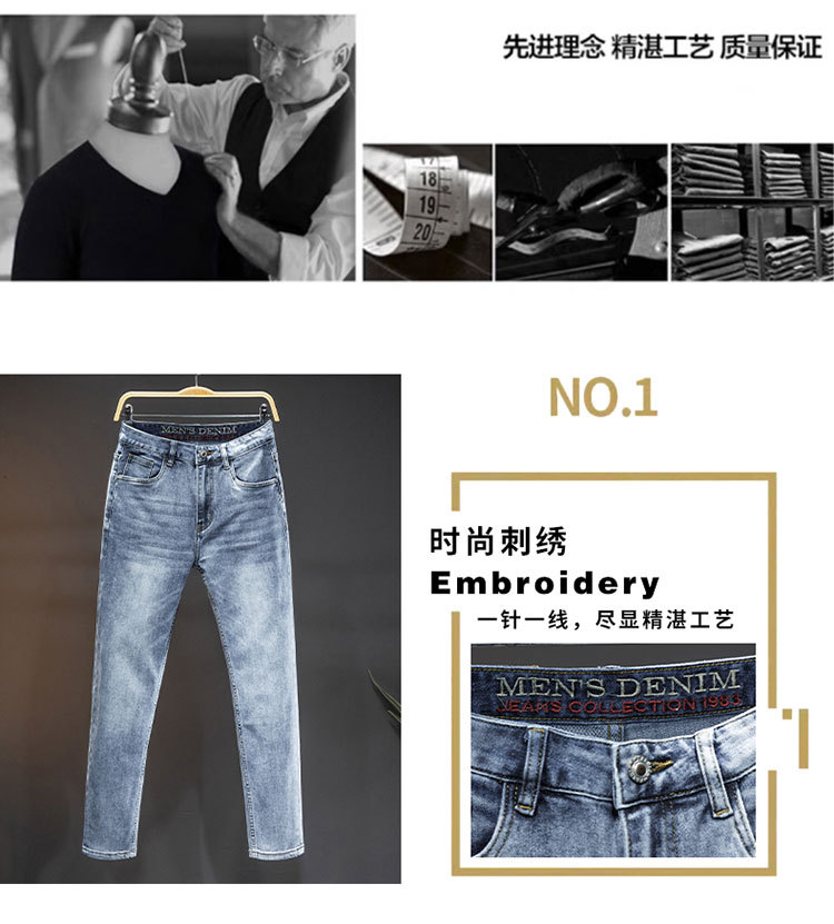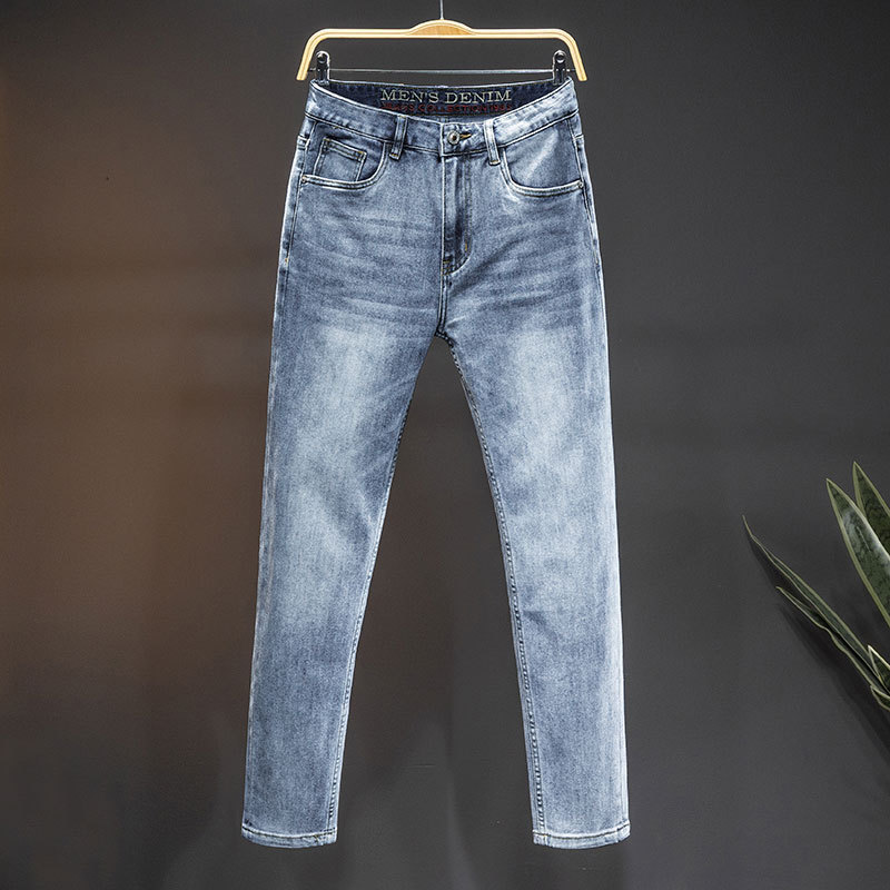 2024 재고 하이 엔드 간단한 유럽 세탁 공예 슬림 핏 남성 스몰 스트레이트 청바지 스트리트 트렌디 캐주얼 올 매치 바지스토어 가기