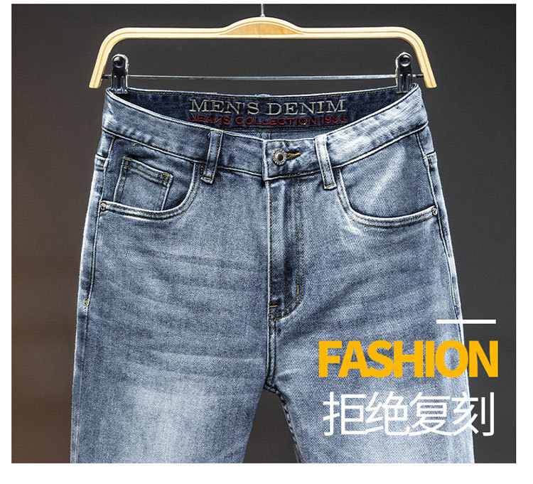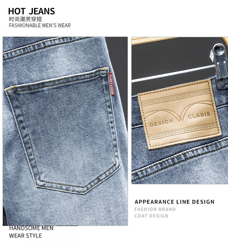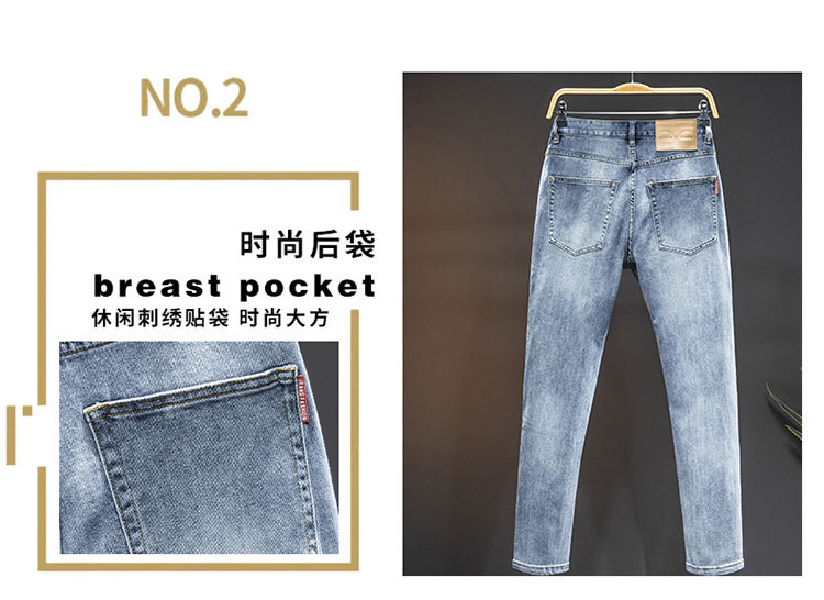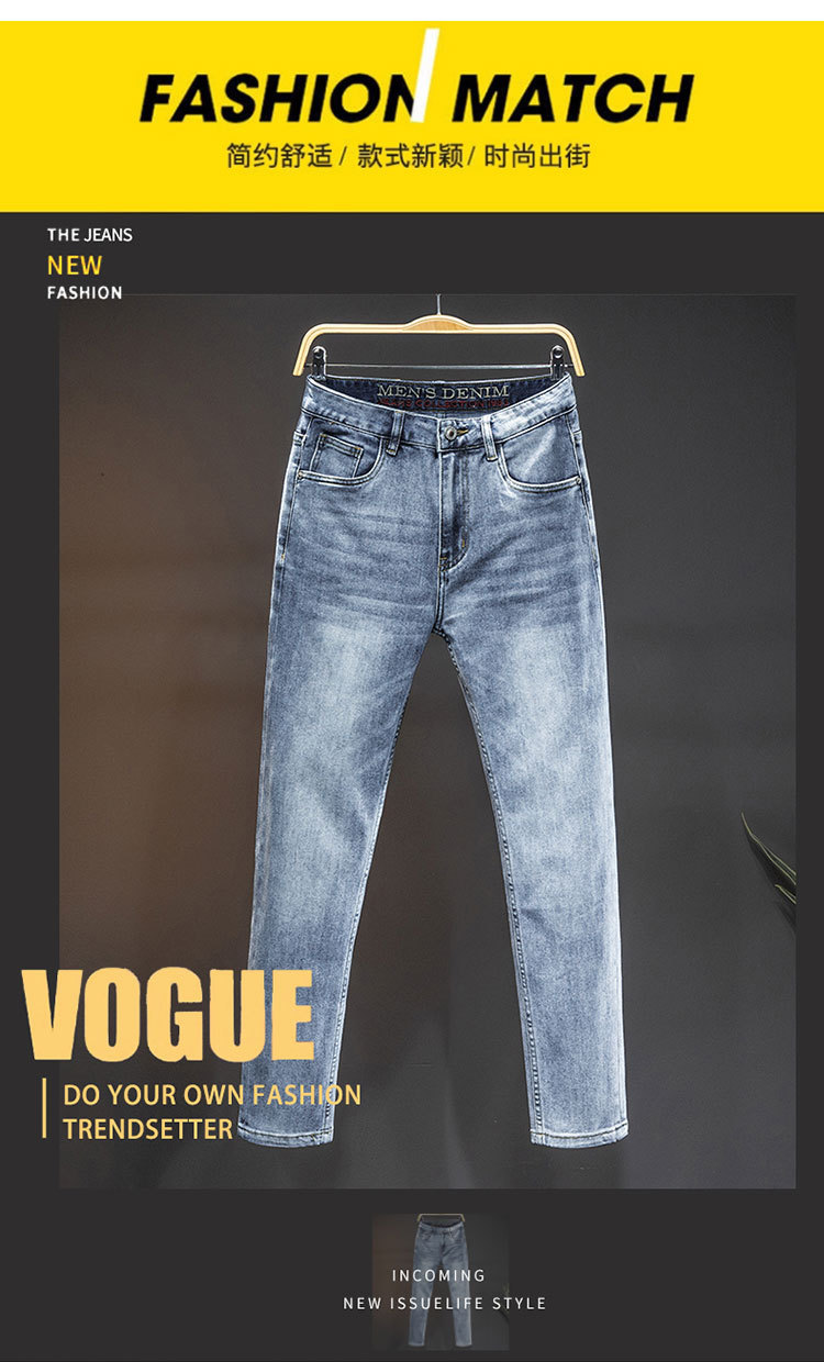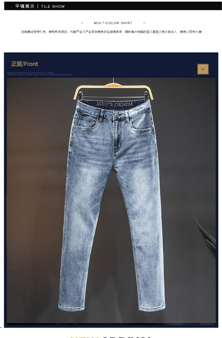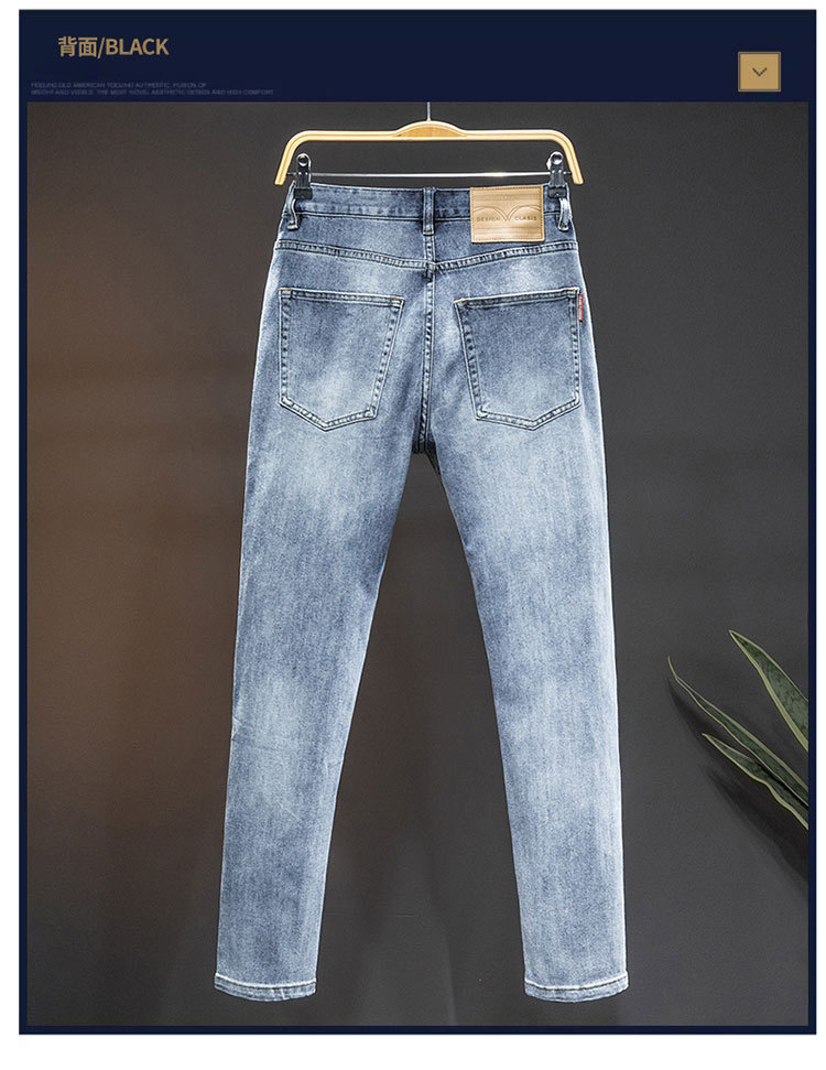 2024 재고 하이 엔드 간단한 유럽 세탁 공예 슬림 핏 남성 스몰 스트레이트 청바지 스트리트 트렌디 캐주얼 올 매치 바지