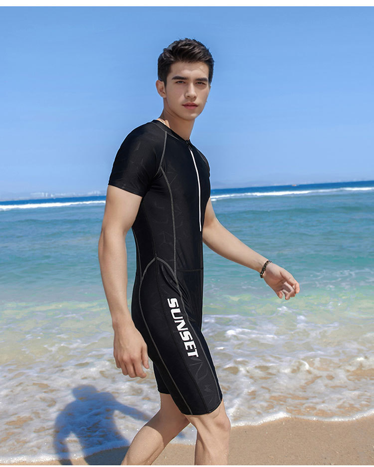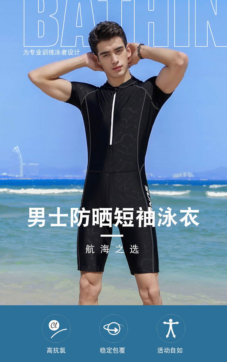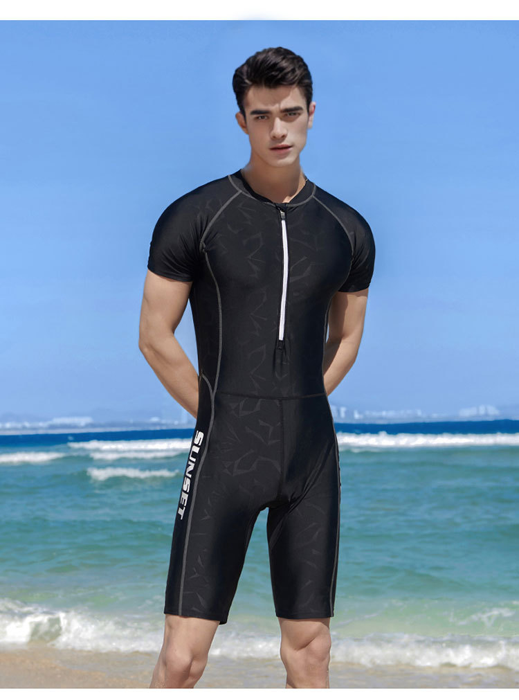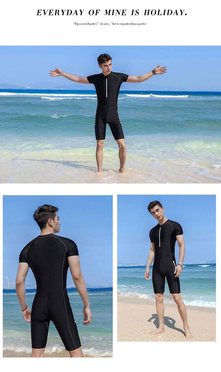 새로운 원피스 수영복 남성용 세트 블랙 클로즈핏 자외선 차단제 퀵 건조 반팔 서핑 5 피스 수영복 대외 무역 맞춤화스토어 가기