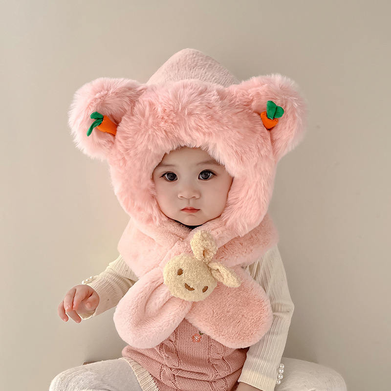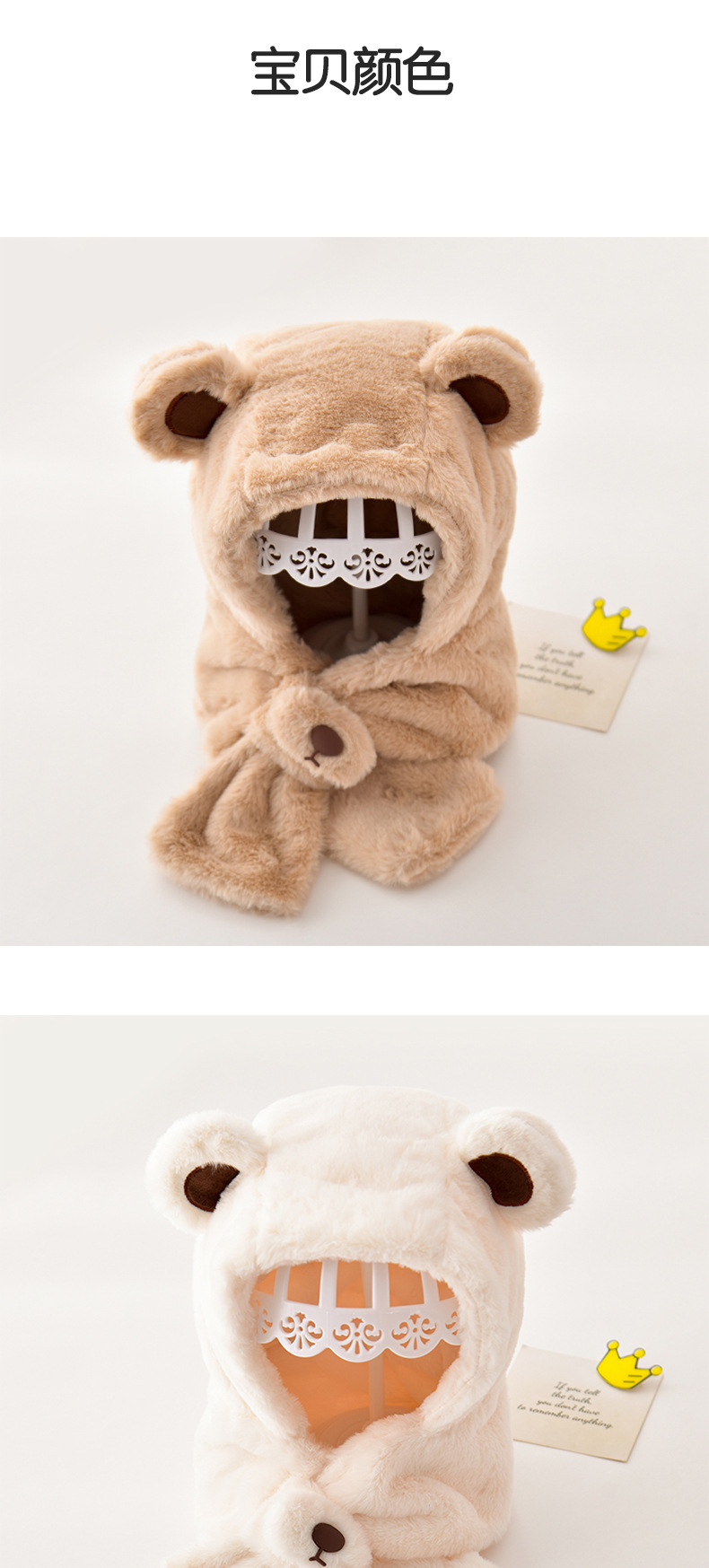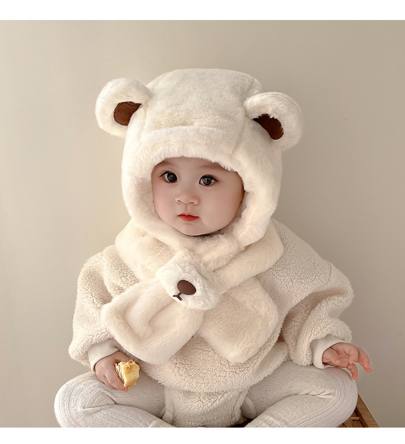 어린이 모자 아기 스카프 일체형 가을, 겨울 소년과 소녀를위한 귀엽고 슈퍼 귀여운 모자 두꺼운 따뜻한 아기 귀 보호 모자