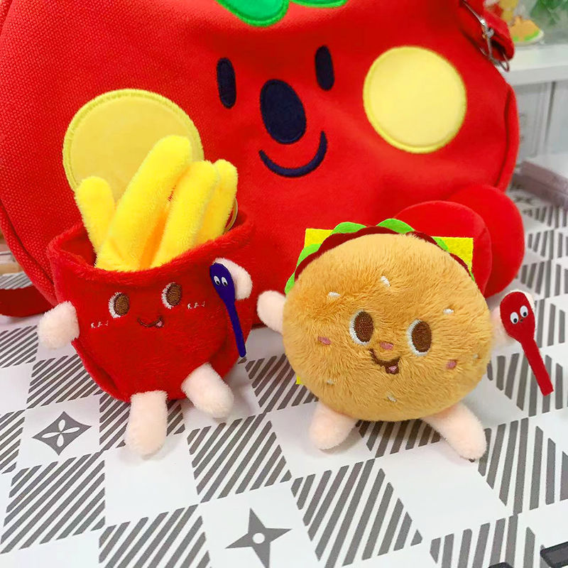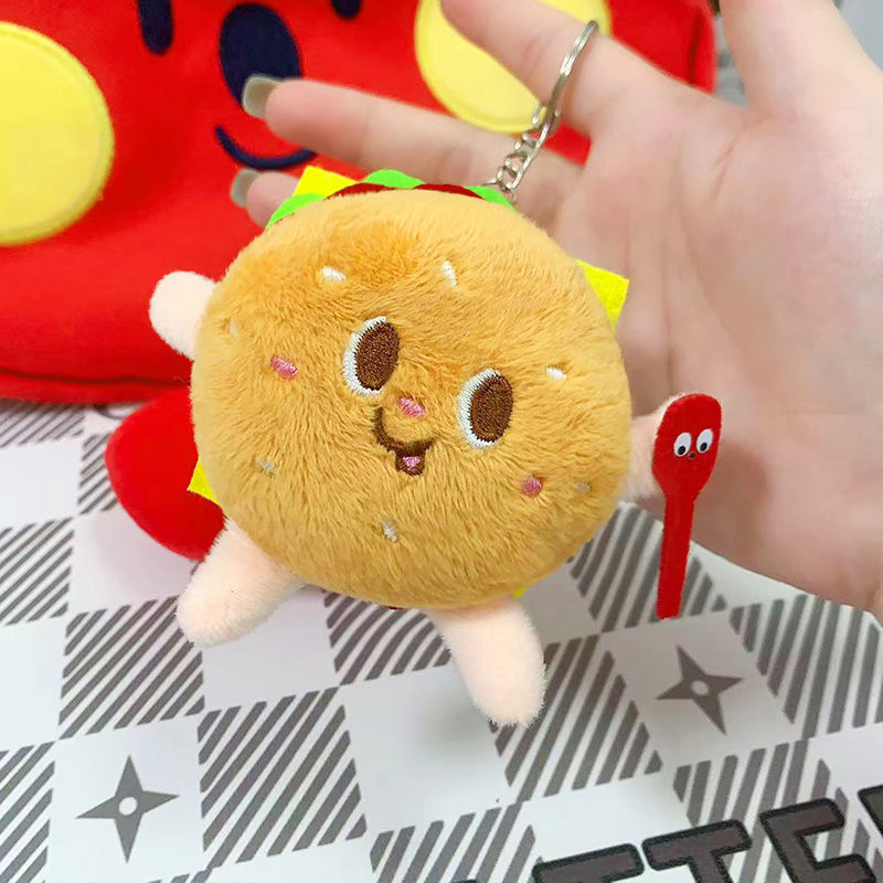 귀여운 봉제 튀김 버거 키 체인 만화 인형 가방 펜던트 유치원 작은 선물 절묘한 작은 선물