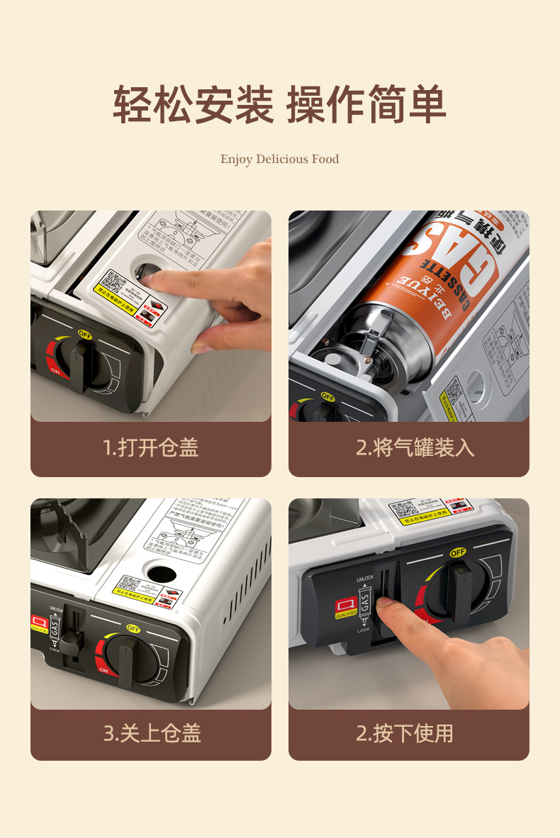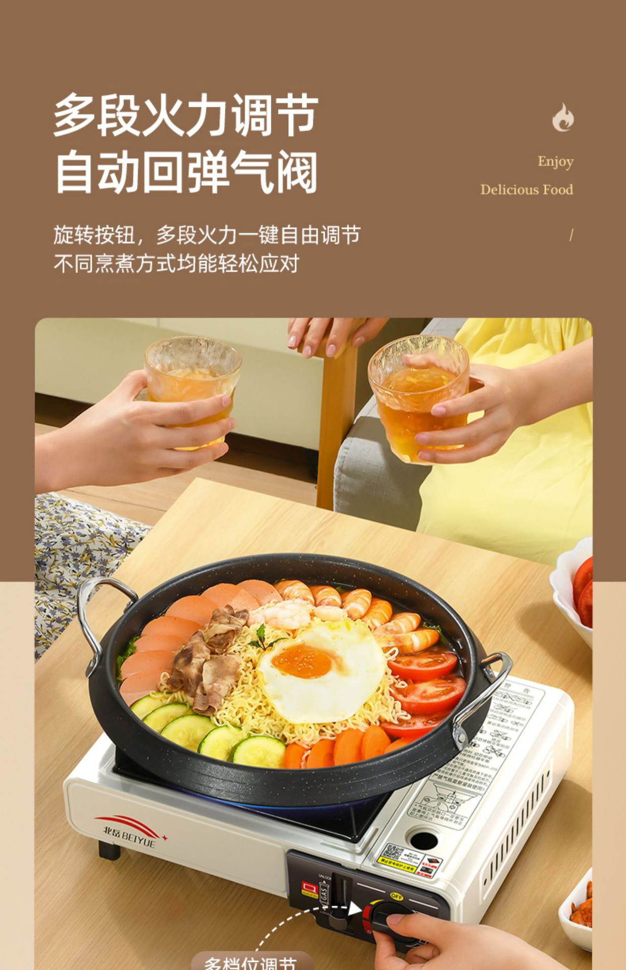 • 업그레이드된 카세트 스토브 + 가스 2병 + 전체 보관함 + 베이킹 팬 + 1.6L 주전자 + 액세서리