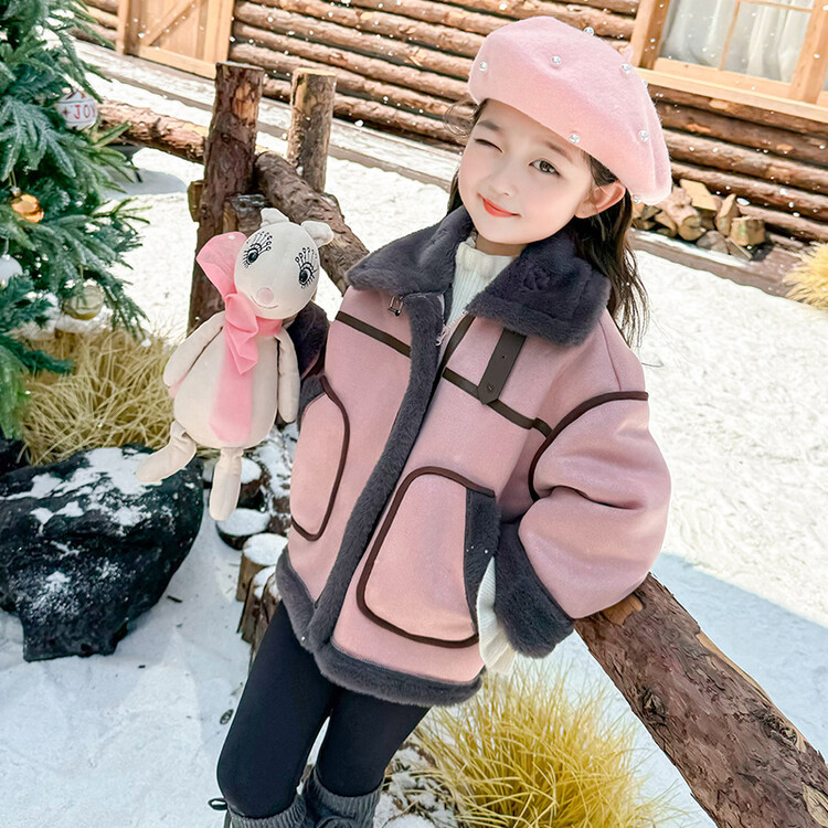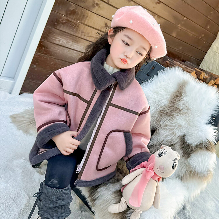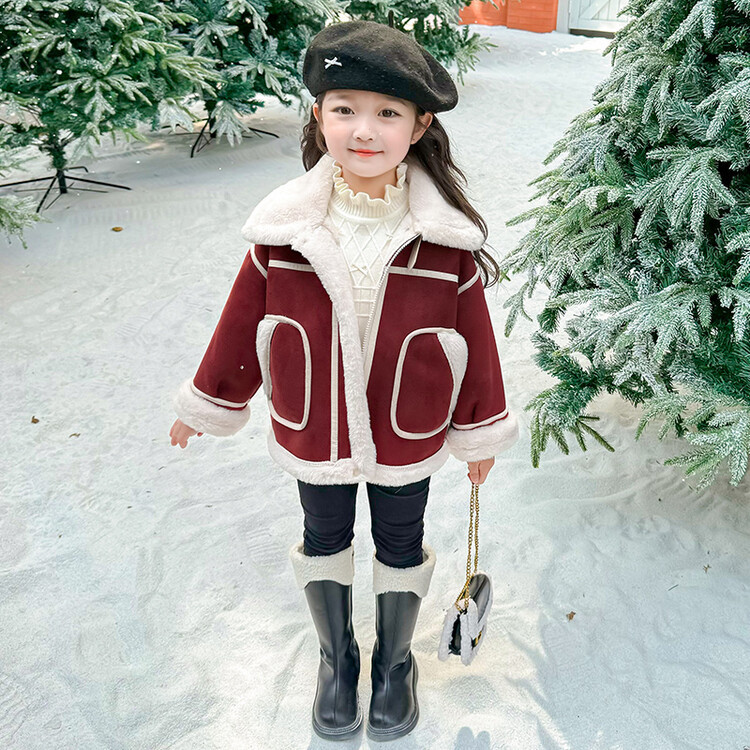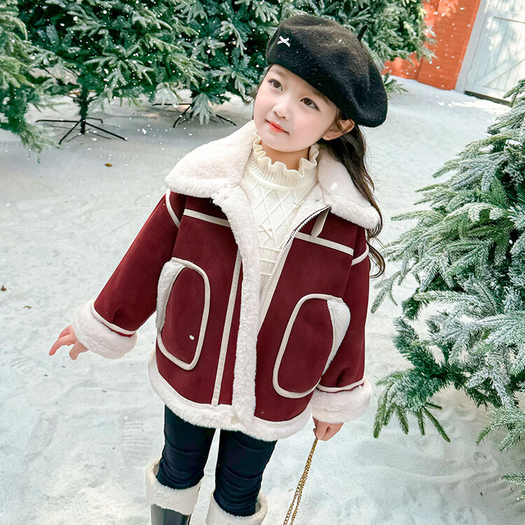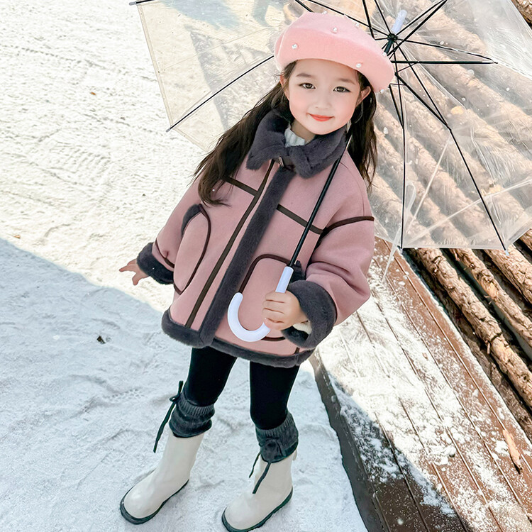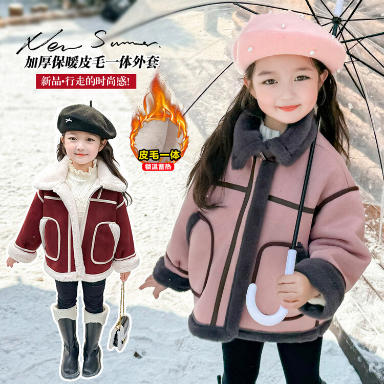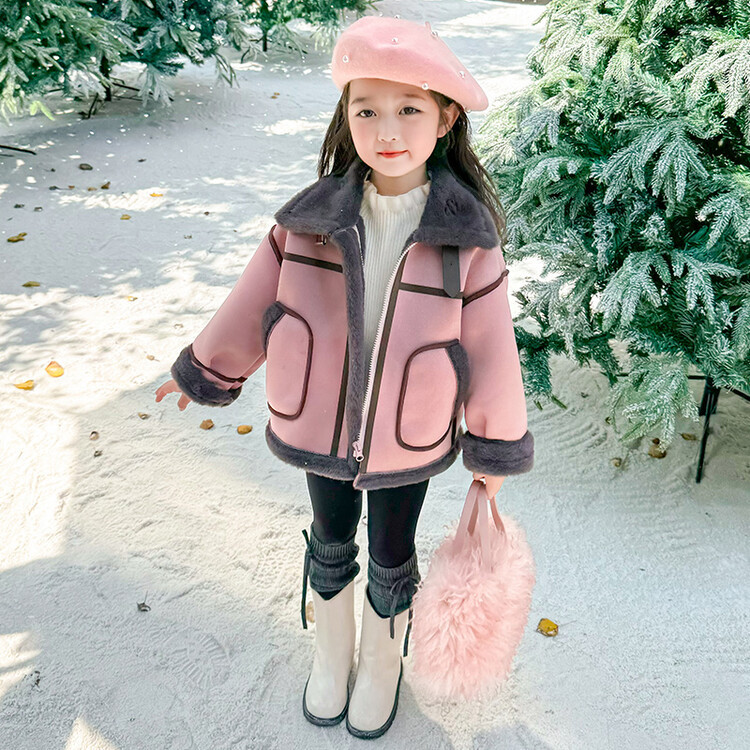 여아용 가죽과 털이 일체형 코트 2025 가을 겨울 신상품 패셔너블하고 스타일리쉬한 아동용 기모 두꺼운 겨울 재킷 상의스토어 가기