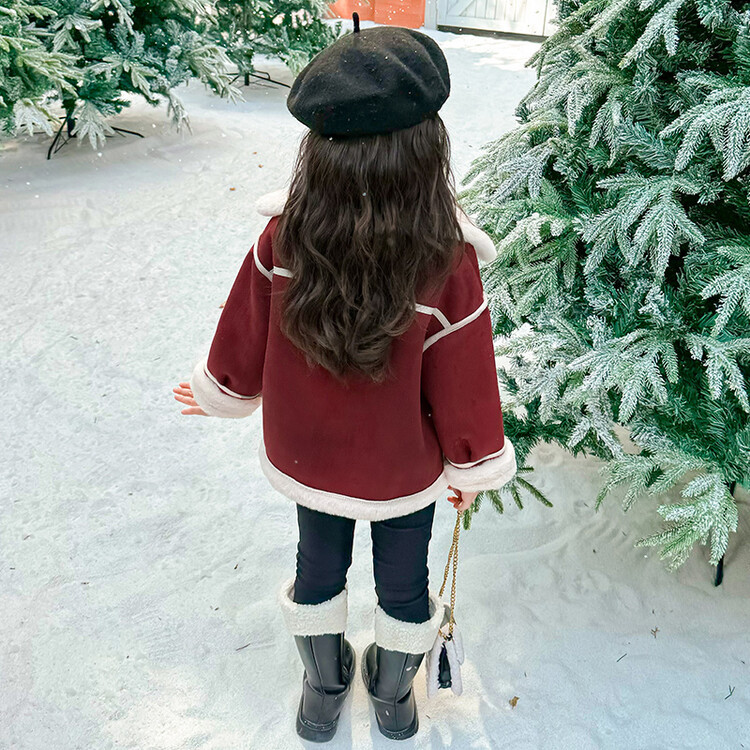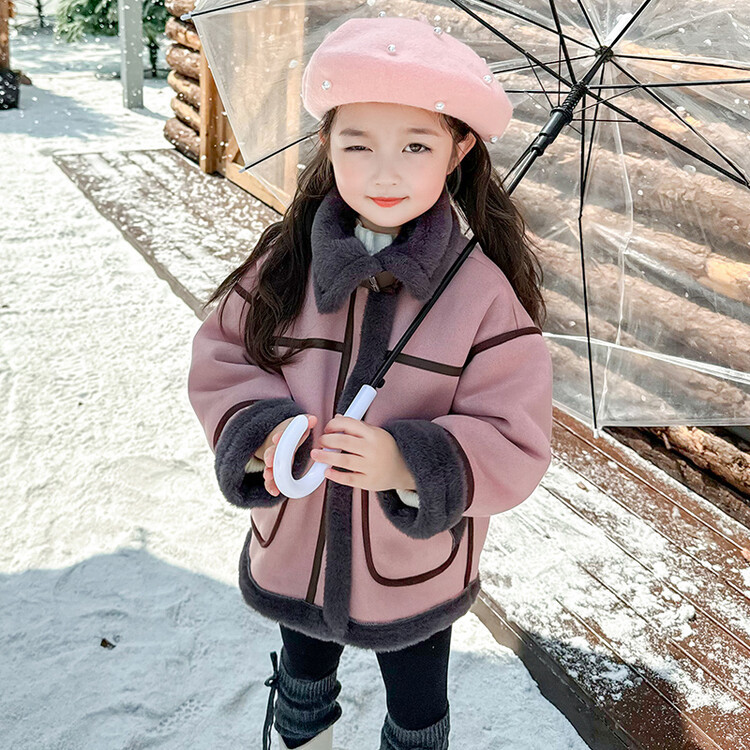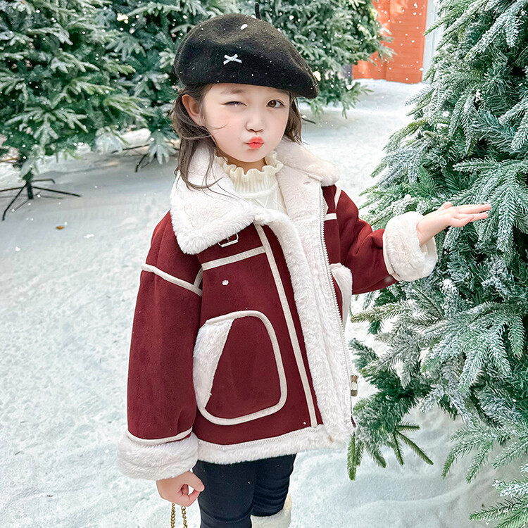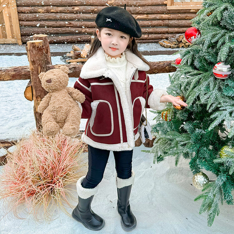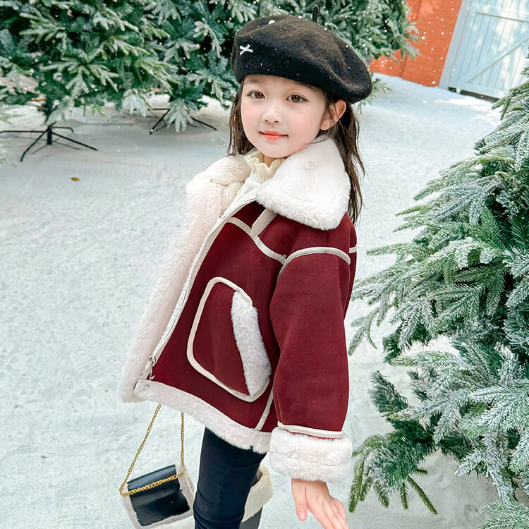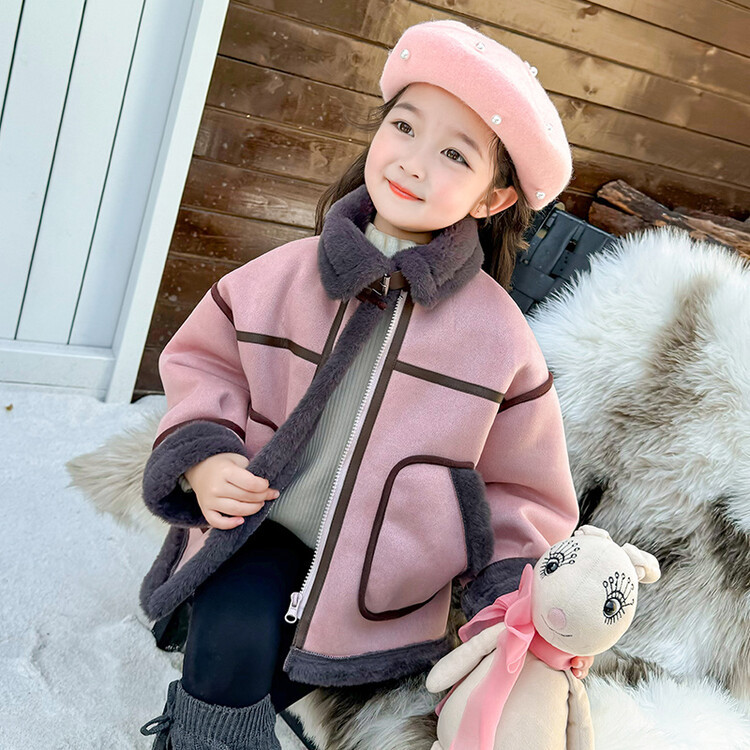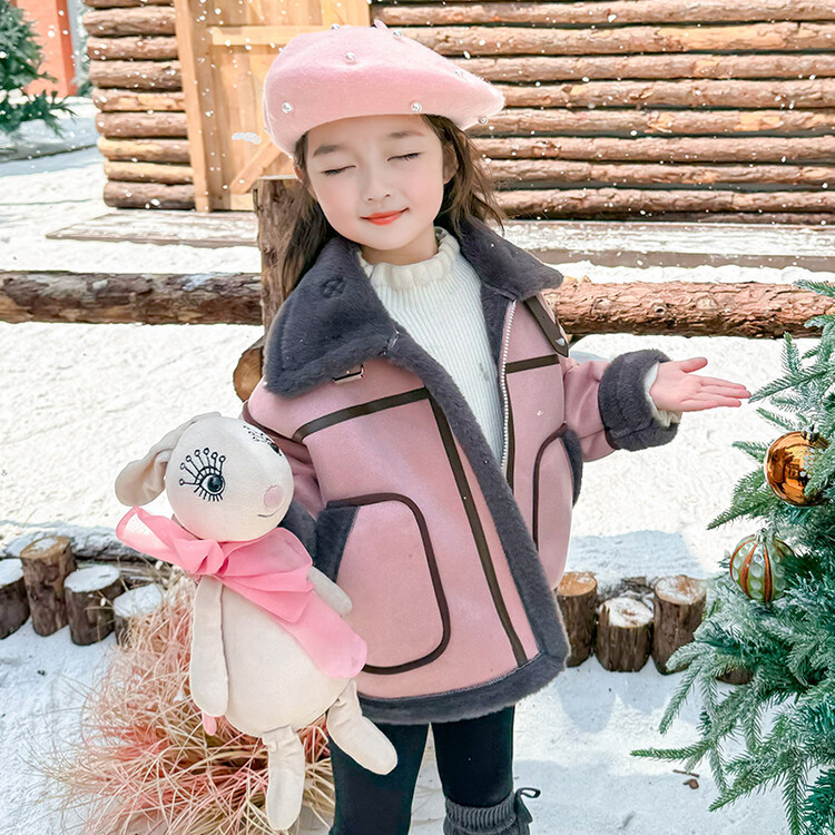 여아용 가죽과 털이 일체형 코트 2025 가을 겨울 신상품 패셔너블하고 스타일리쉬한 아동용 기모 두꺼운 겨울 재킷 상의스토어 가기