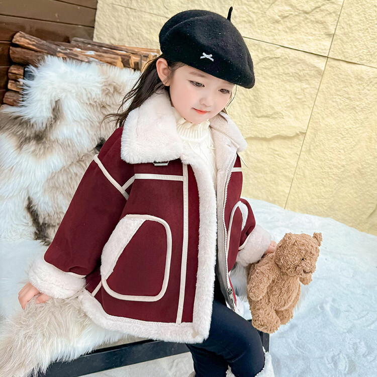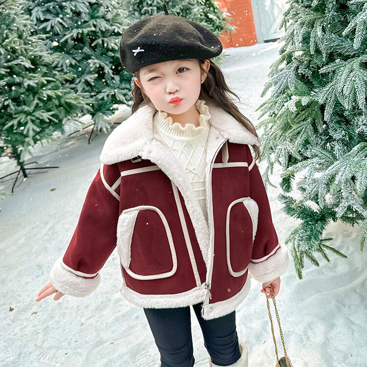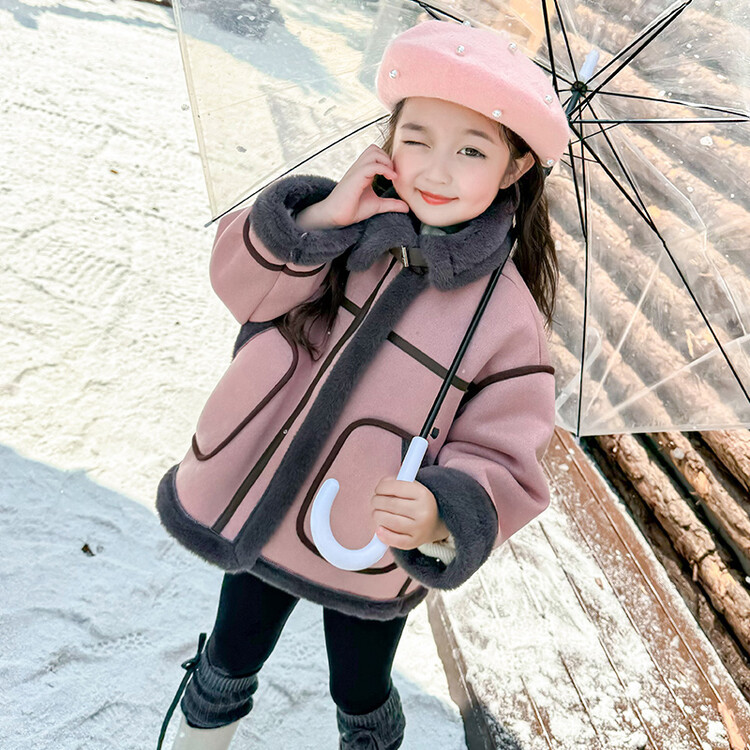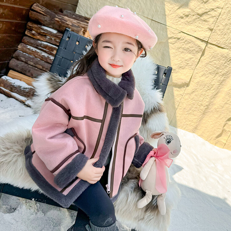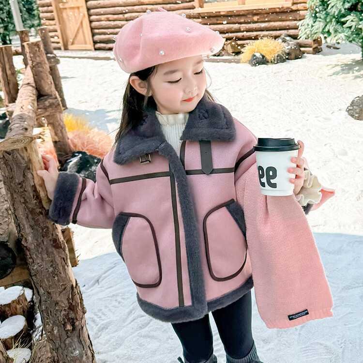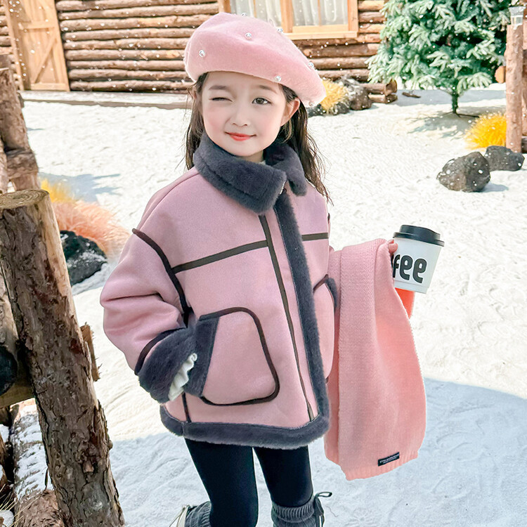 여아용 가죽과 털이 일체형 코트 2025 가을 겨울 신상품 패셔너블하고 스타일리쉬한 아동용 기모 두꺼운 겨울 재킷 상의