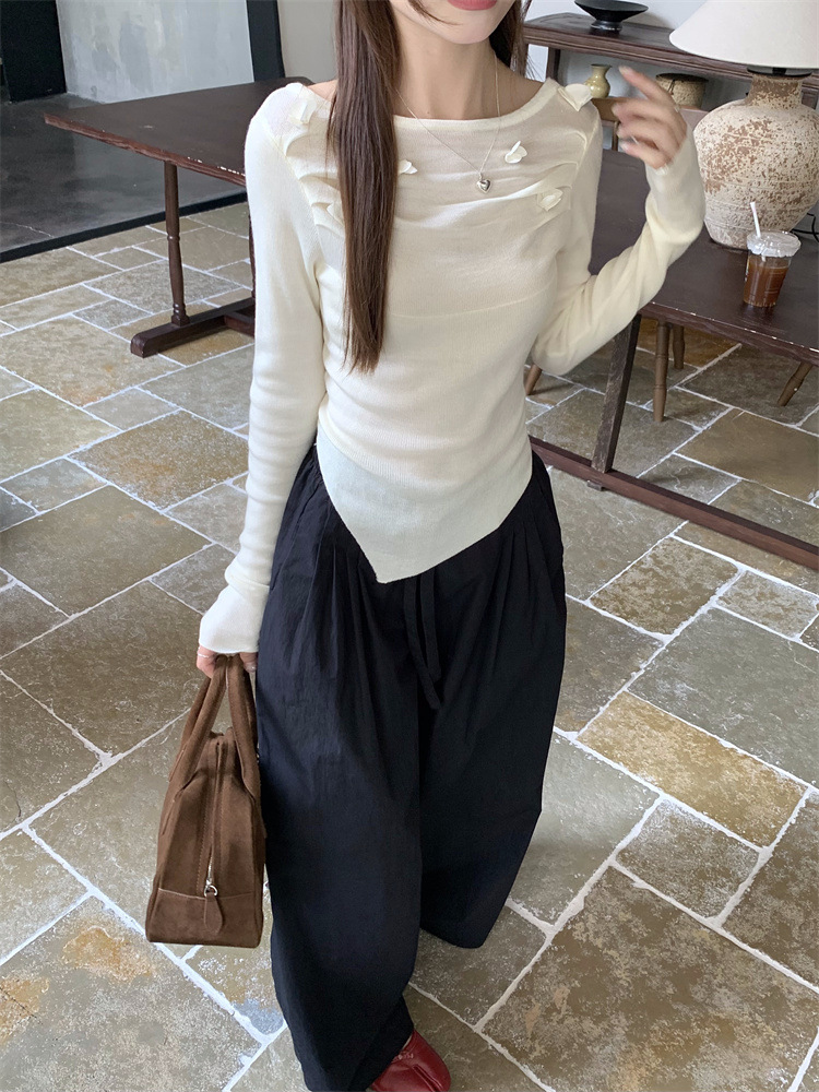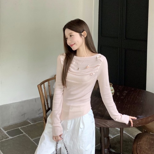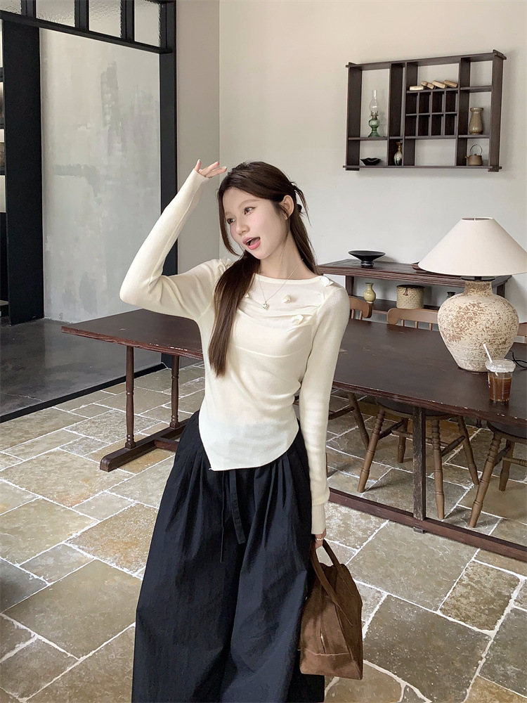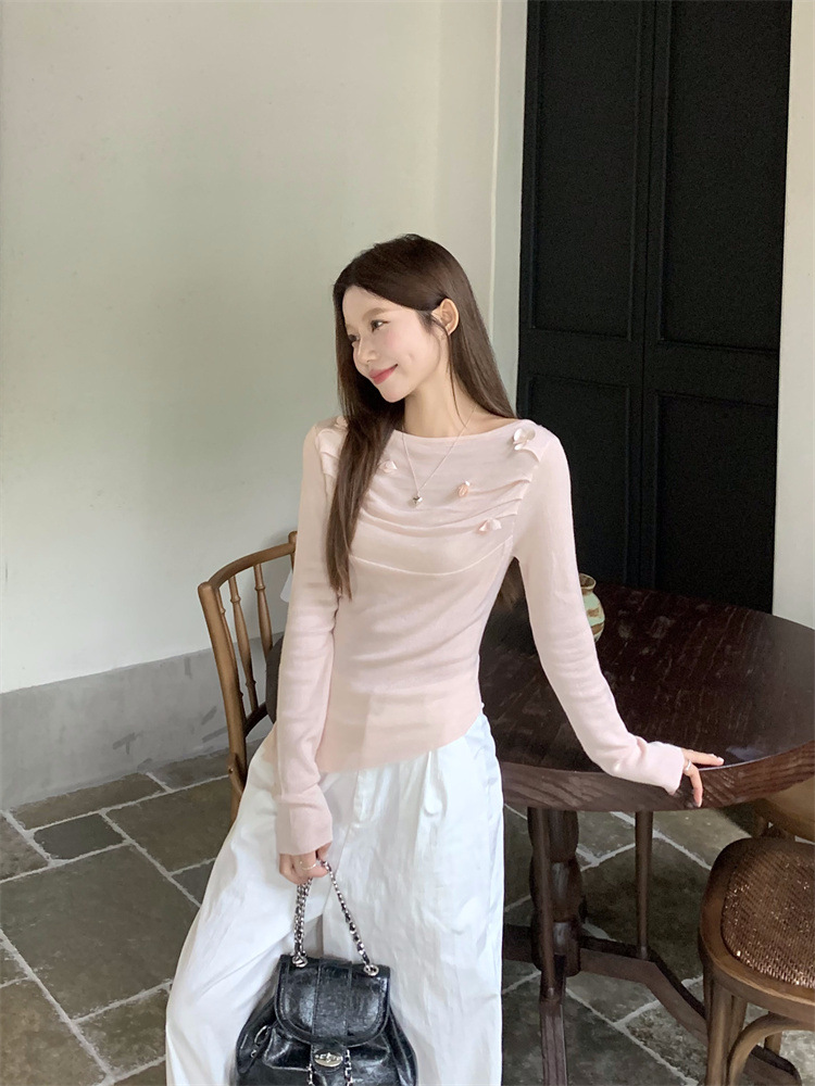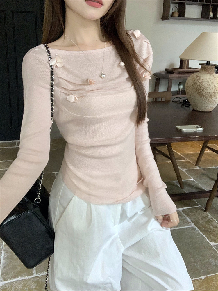 3 차원 장미 꽃 주름 최고 여성의 가을과 겨울 디자인 센스 프랑스 틈새 서양식 세련된 아름다운 스웨터