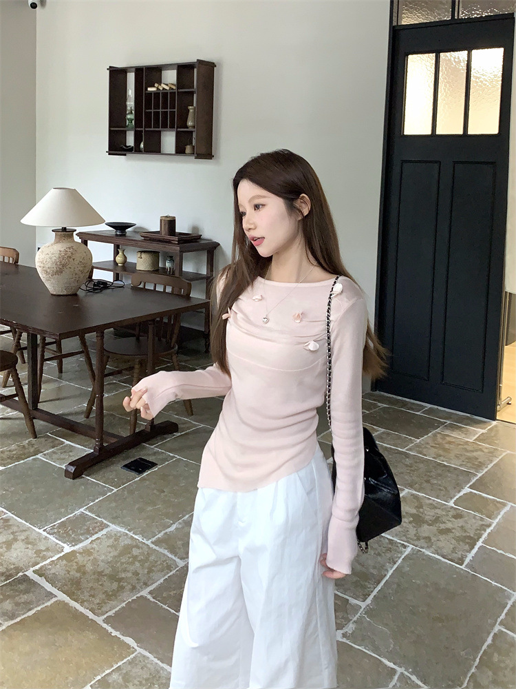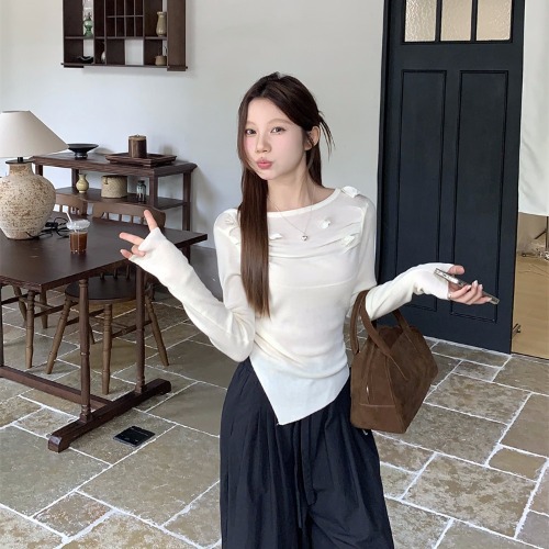 3 차원 장미 꽃 주름 최고 여성의 가을과 겨울 디자인 센스 프랑스 틈새 서양식 세련된 아름다운 스웨터스토어 가기
