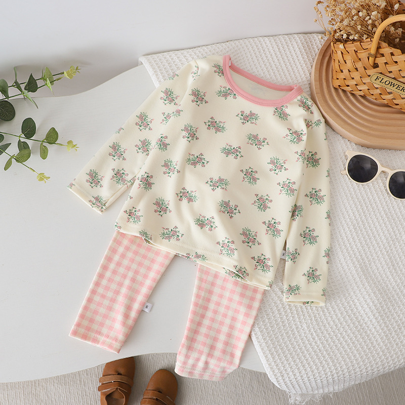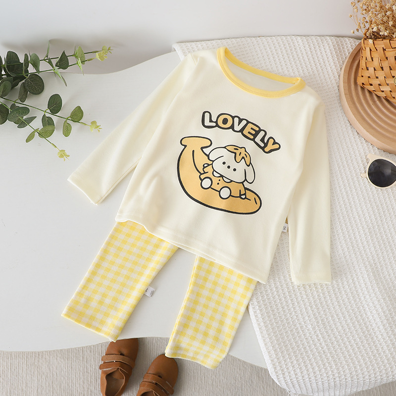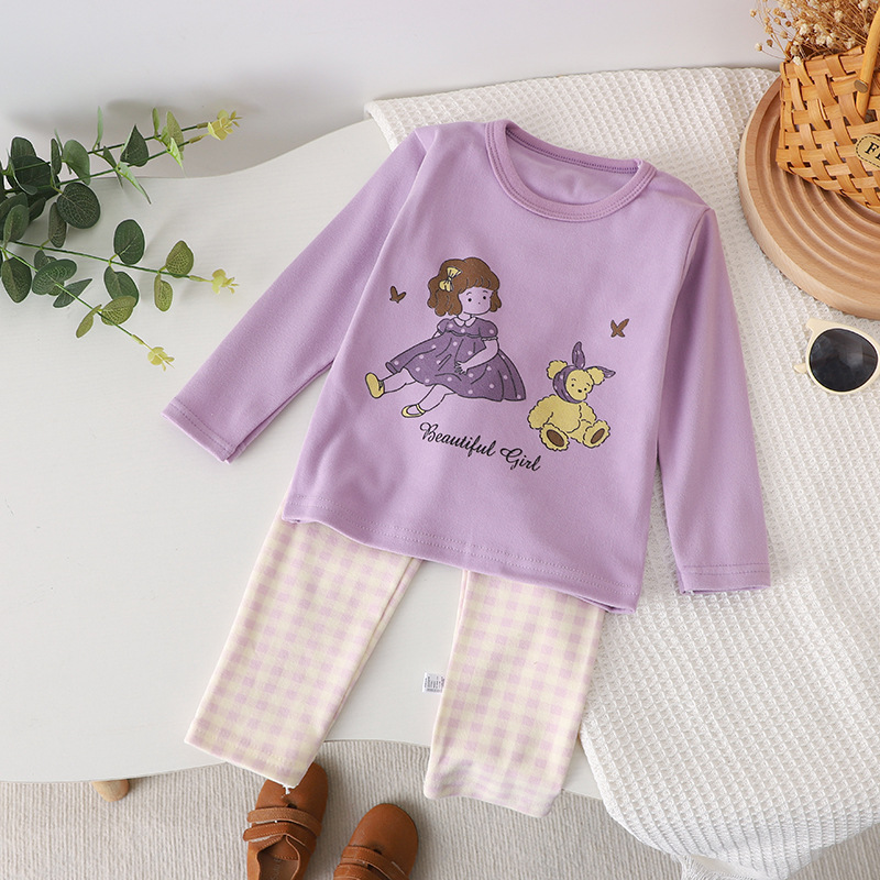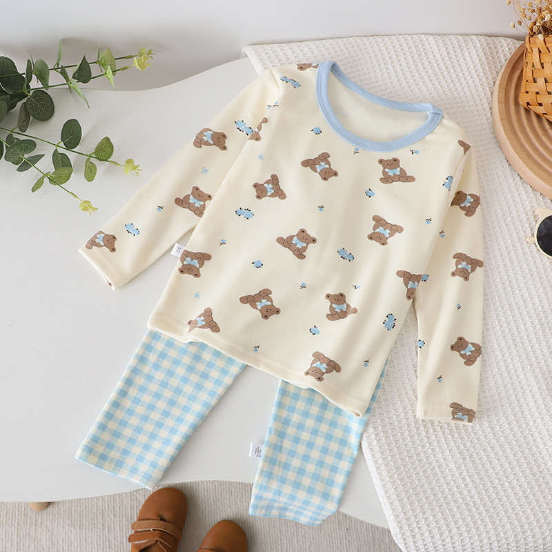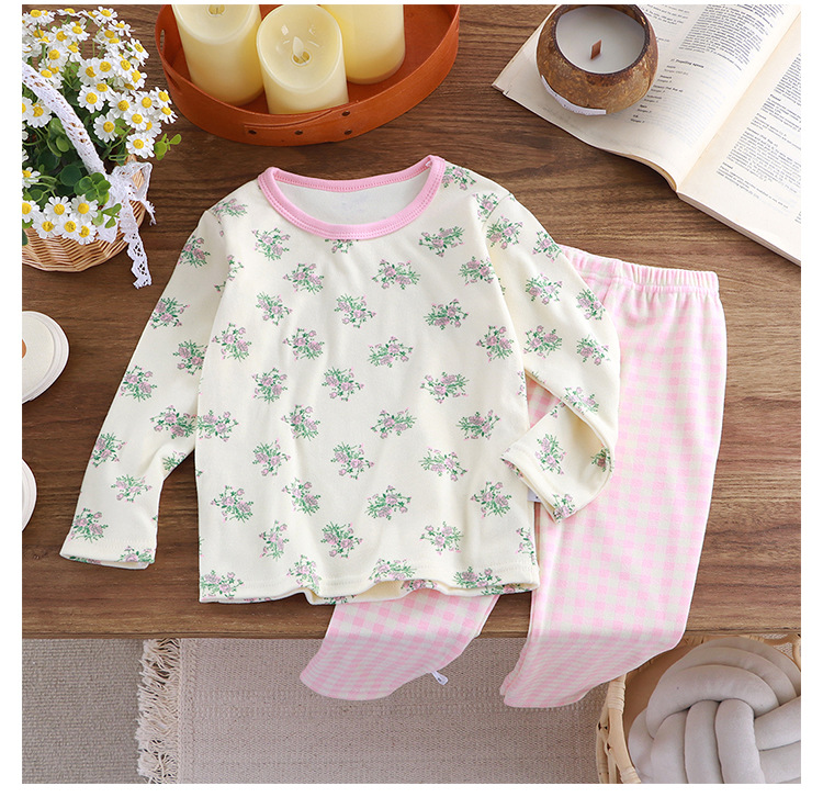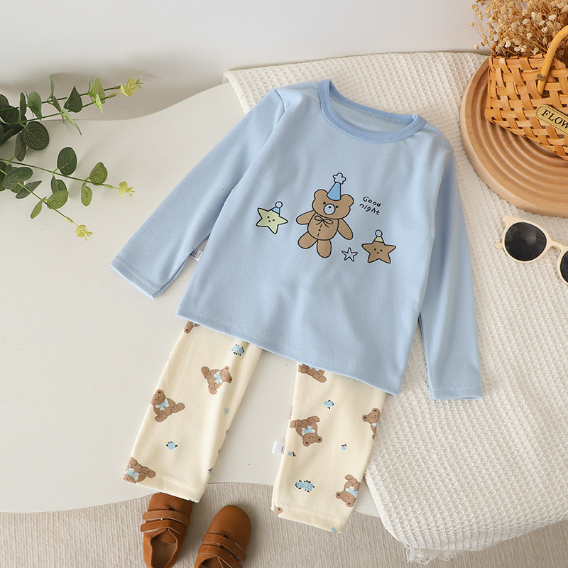 새로운 아동복 봄과 가을 어린이 속옷 세트 소년 가을 옷 가을 바지 중소 소녀 잠옷 홈 의류 도매스토어 가기