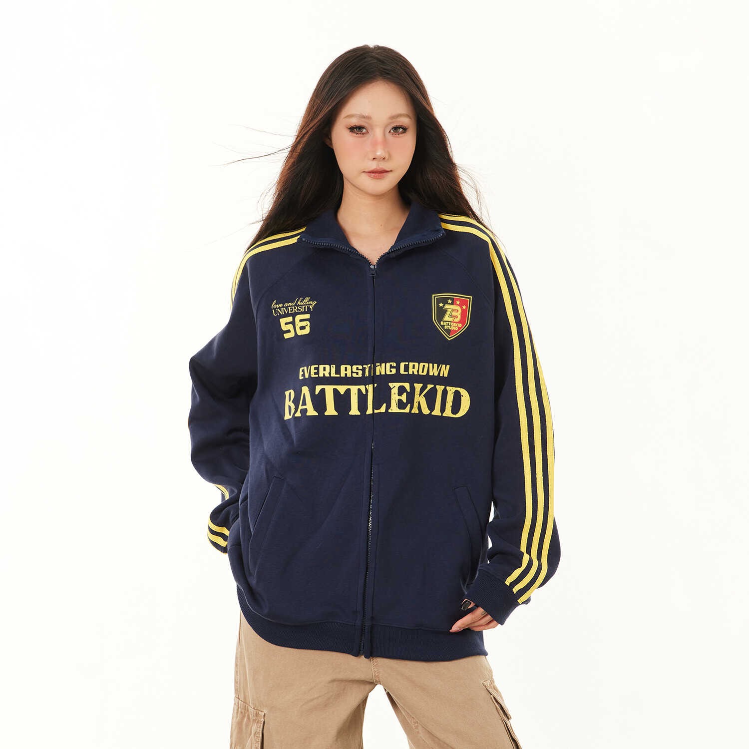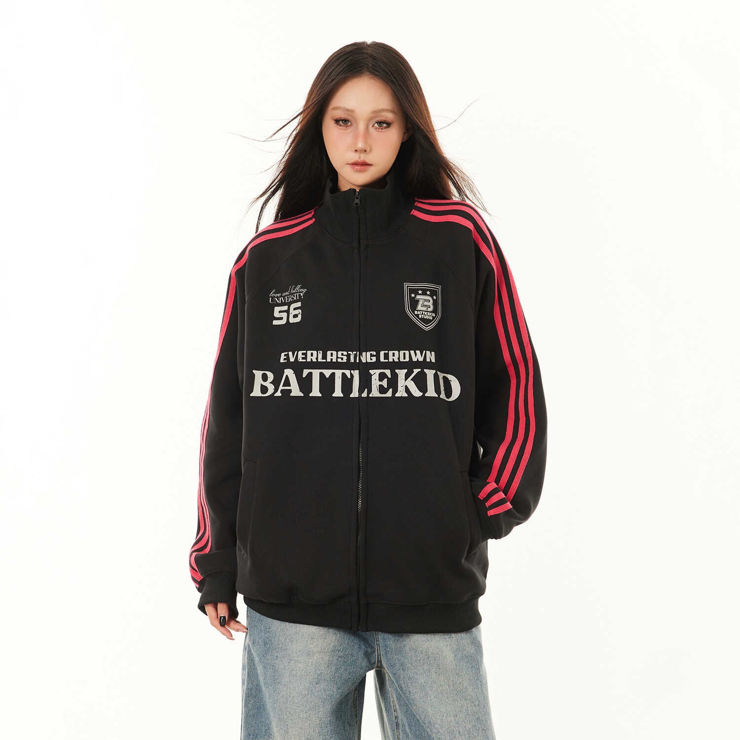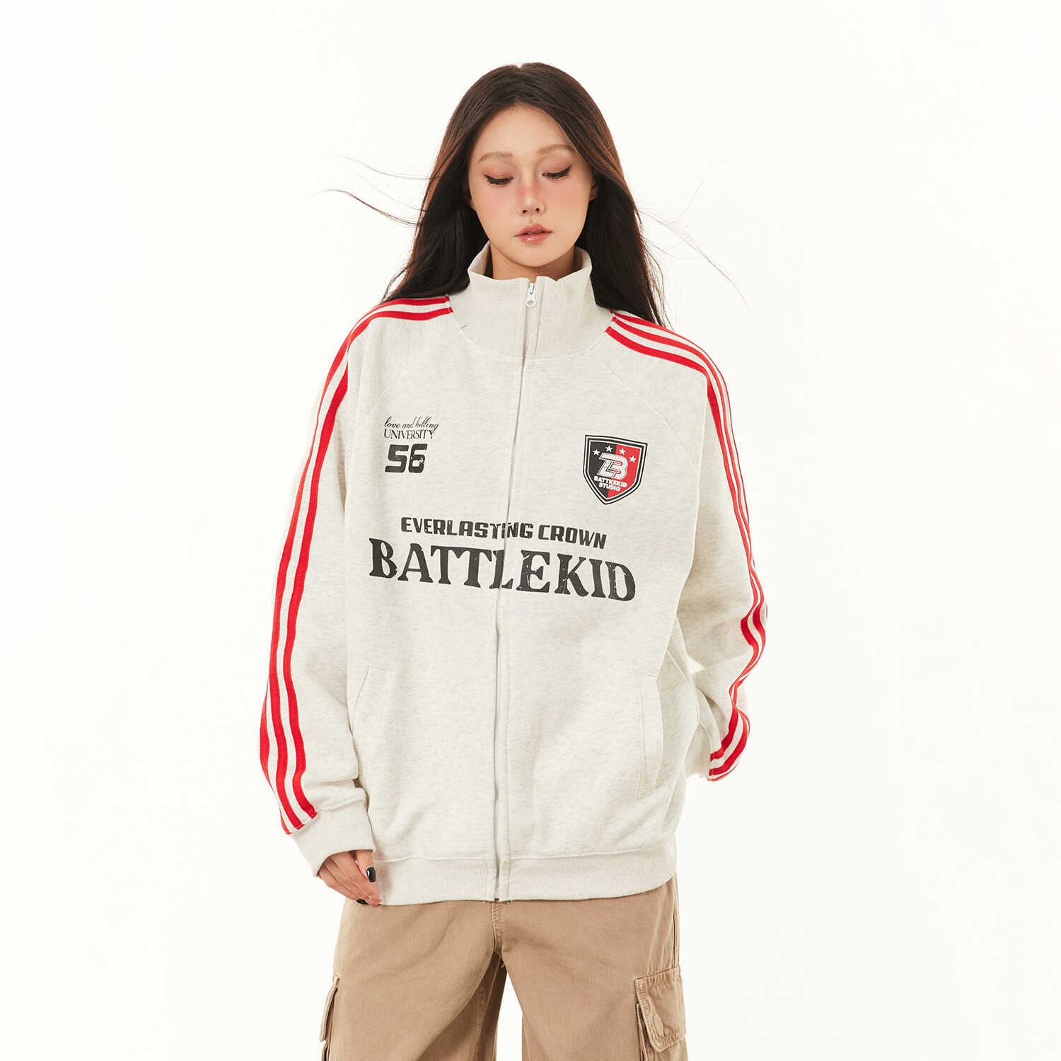 유럽과 미국의 편지 3 바 스티칭 카디건 지퍼 스웨트 셔츠 남성 패션 브랜드 가을과 겨울 느슨한 캐주얼 커플 재킷 코트