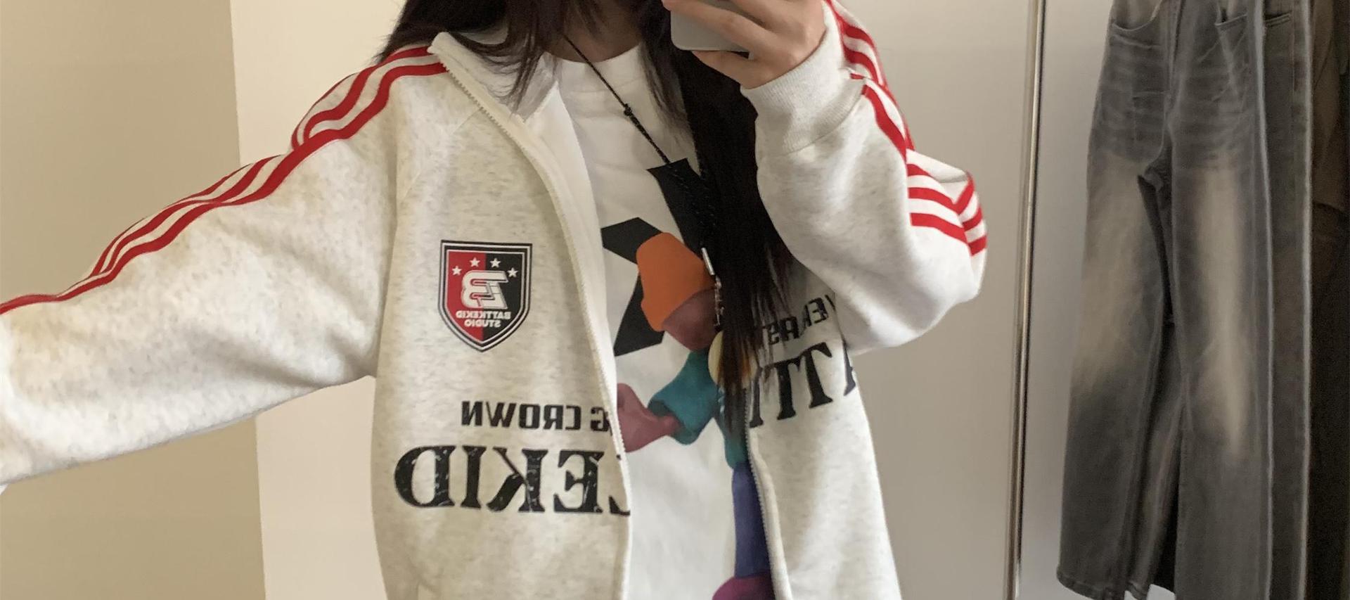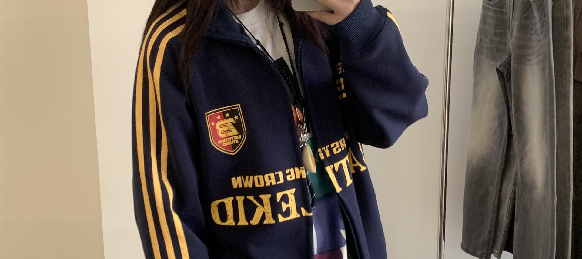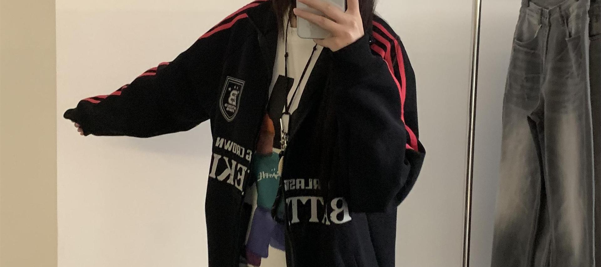 유럽과 미국의 편지 3 바 스티칭 카디건 지퍼 스웨트 셔츠 남성 패션 브랜드 가을과 겨울 느슨한 캐주얼 커플 재킷 코트스토어 가기