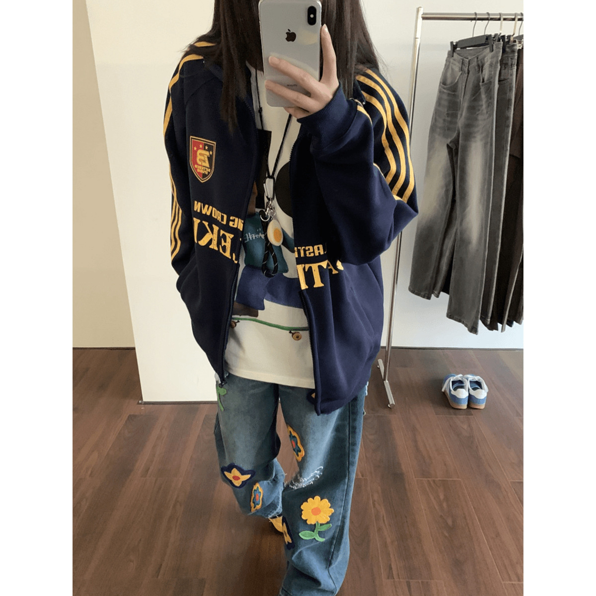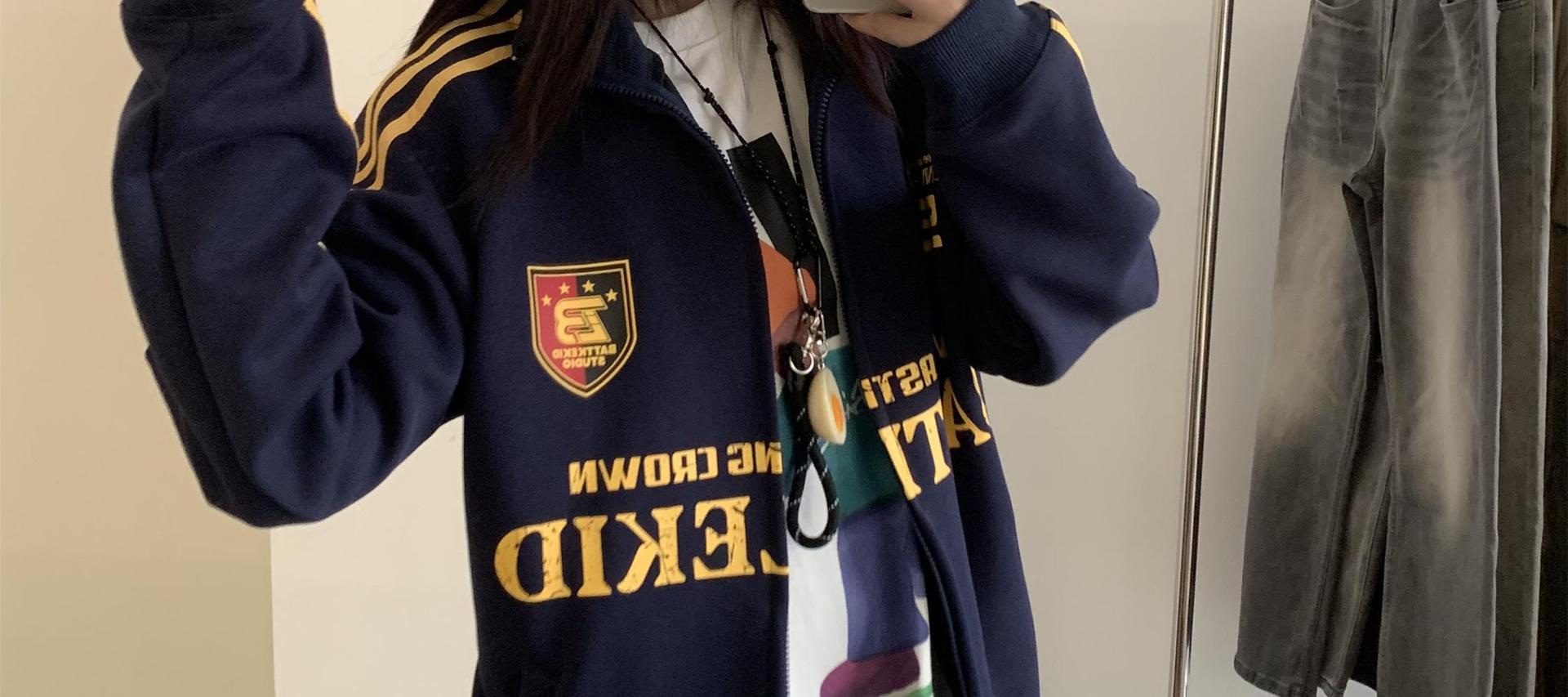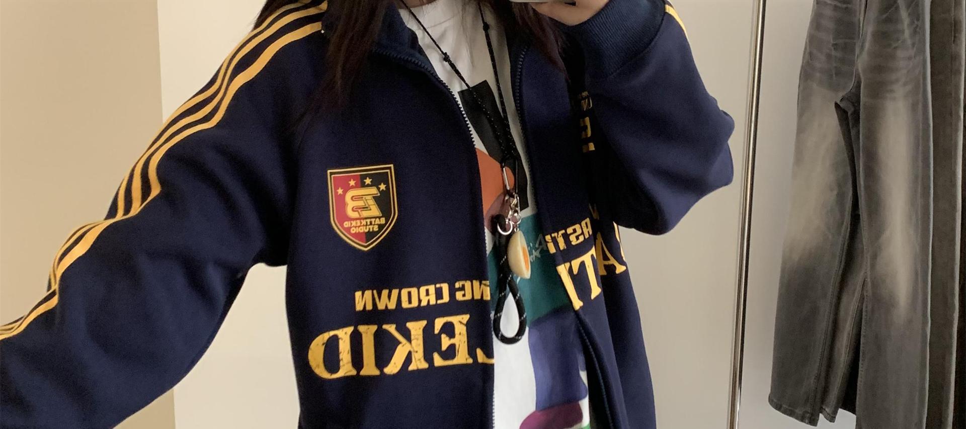 유럽과 미국의 편지 3 바 스티칭 카디건 지퍼 스웨트 셔츠 남성 패션 브랜드 가을과 겨울 느슨한 캐주얼 커플 재킷 코트스토어 가기